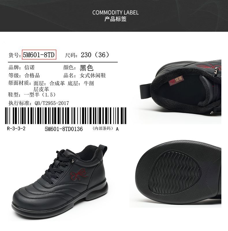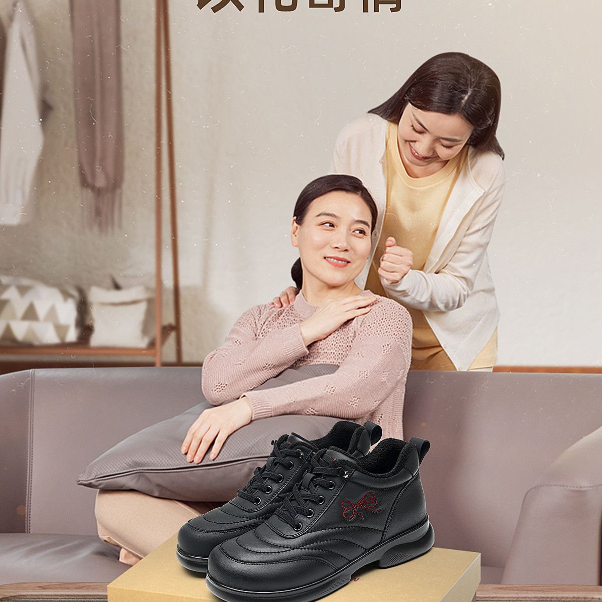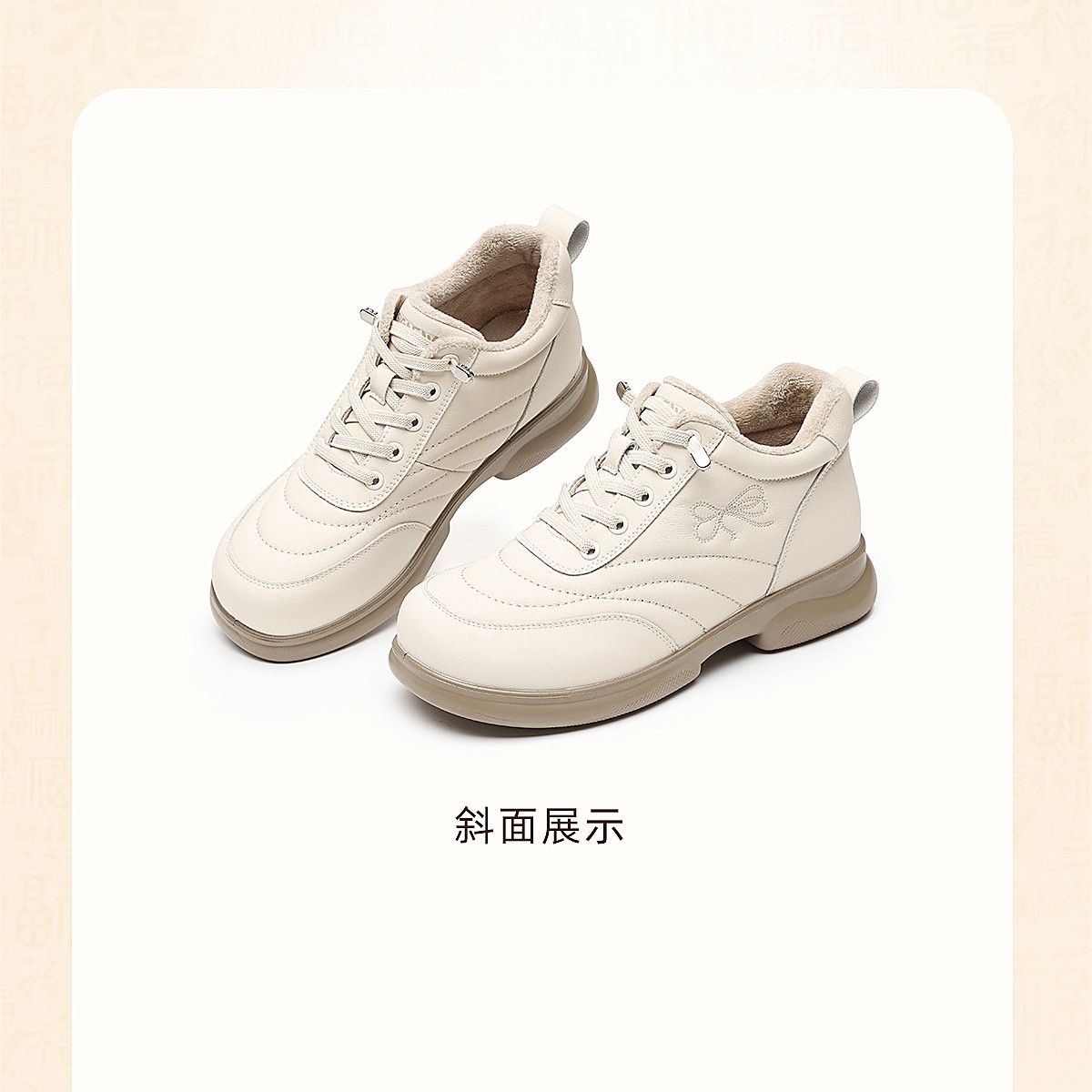信诺妈妈鞋软底高帮女鞋加绒保暖棉鞋2025冬季新款皮鞋时尚小白鞋5M601-8TD