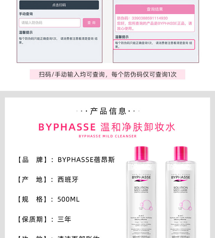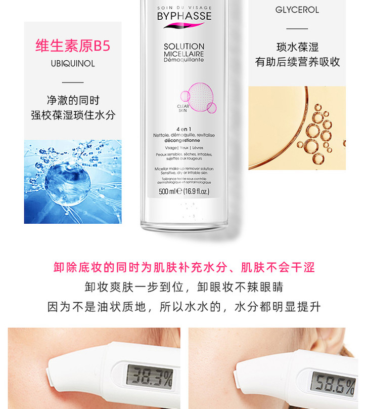 西班牙BYPHASSE 蓓昂斯免洗卸妆水 500ml