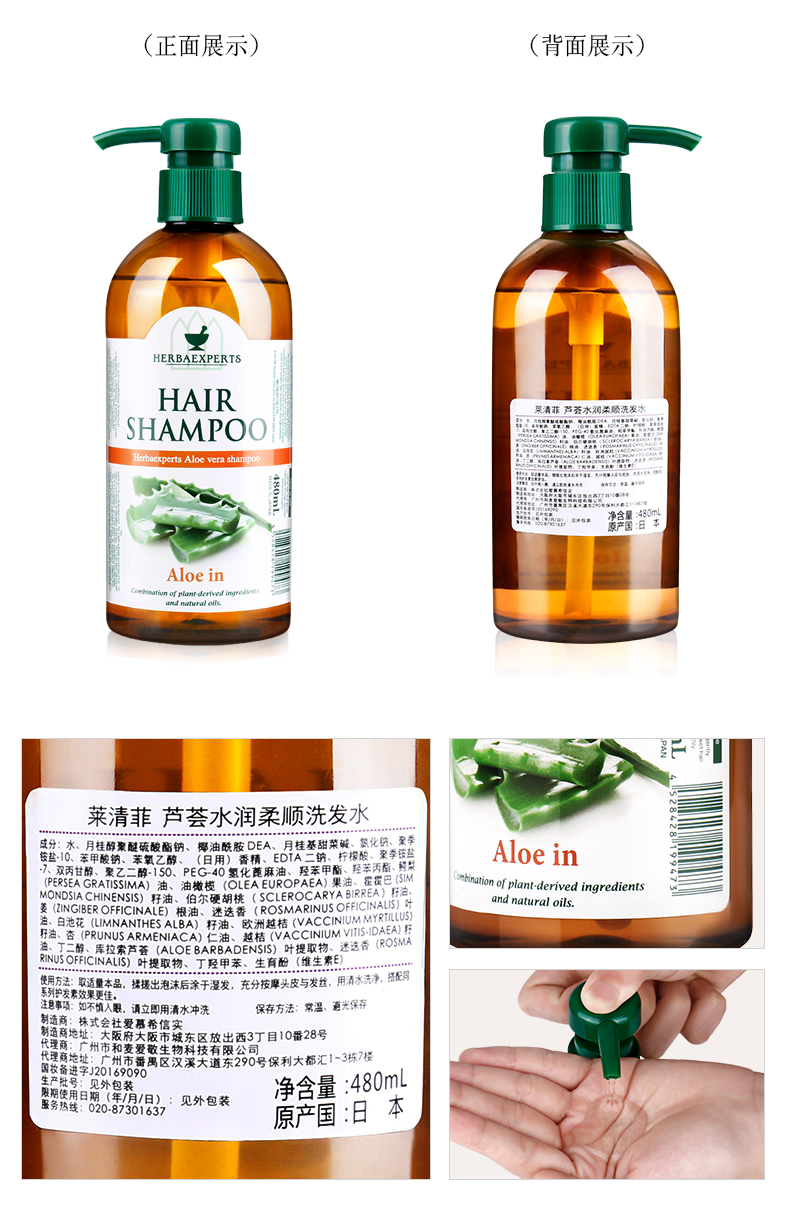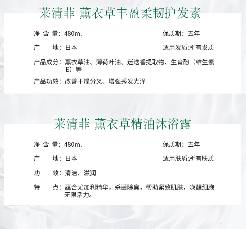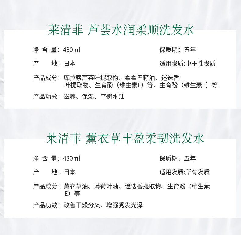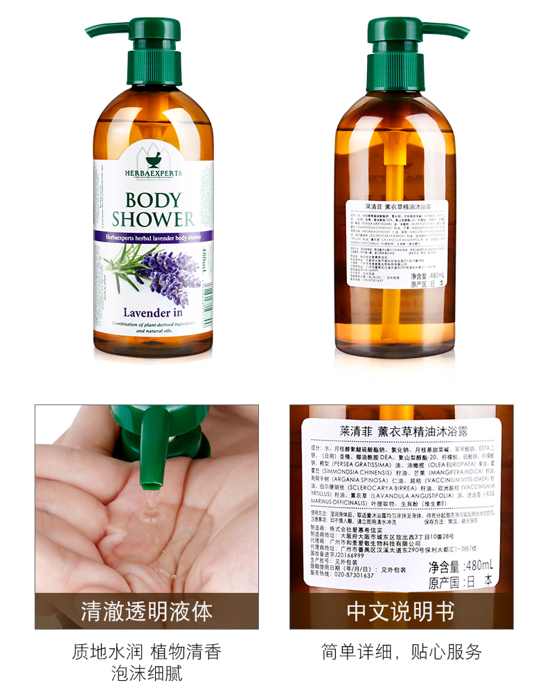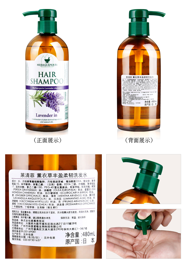 【中欧班列精选】日本进口莱清菲草本精油洗发沐浴露清洁深层控油480ml/瓶
