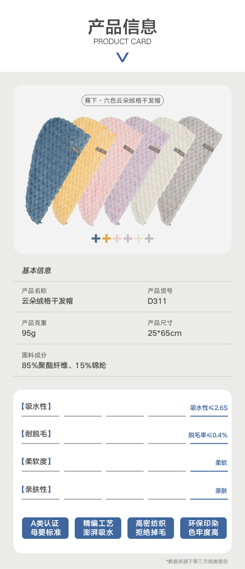 蕉下年度王炸产品【云朵干发帽】!超强吸水的干发帽,A类婴幼儿安全标准,云朵般亲肤柔软