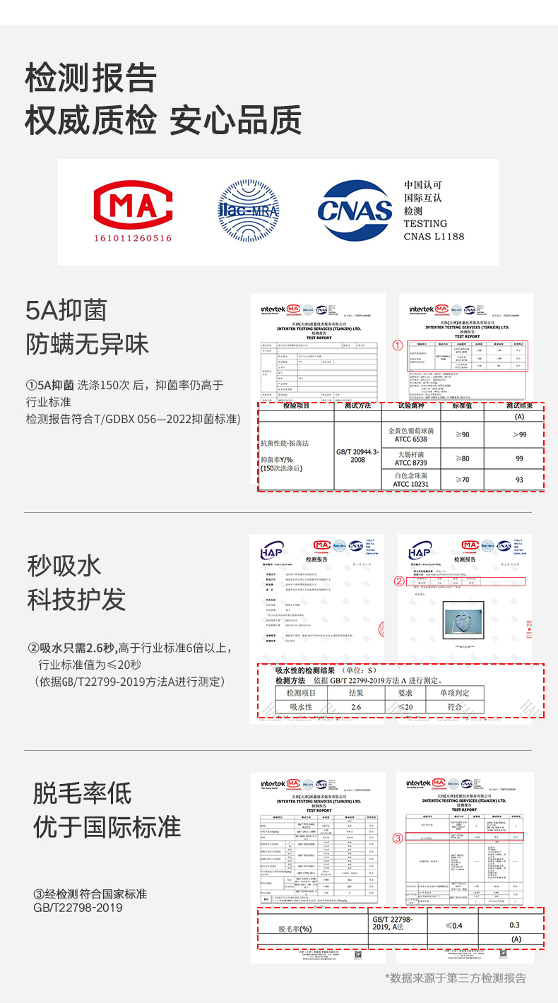 不仅吸水强,透气性也好,还能有效抗菌、无异味防霉变!专业检测认证!