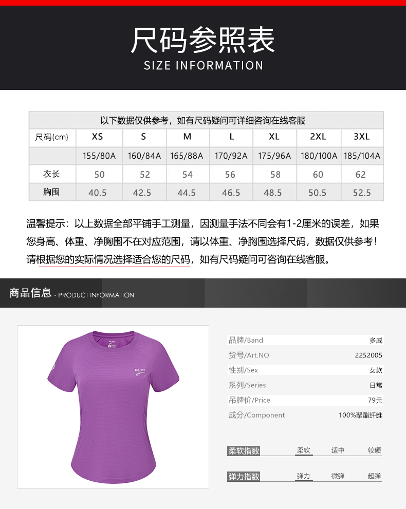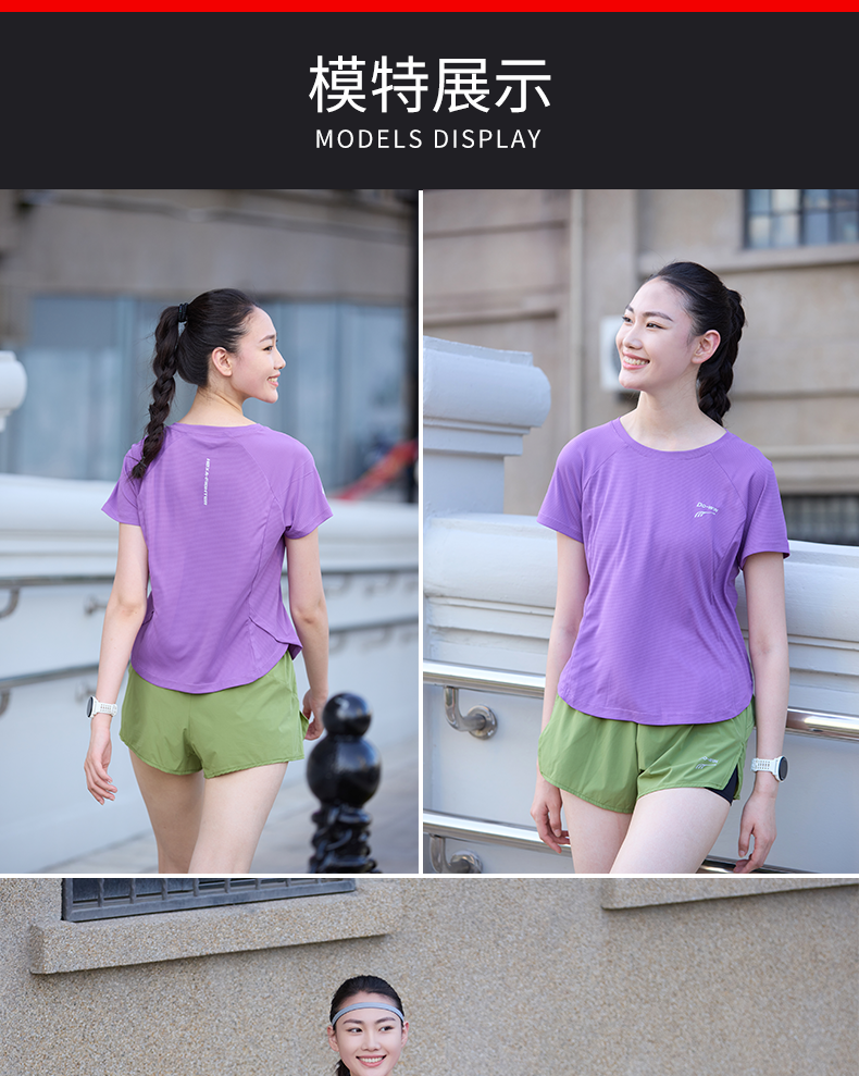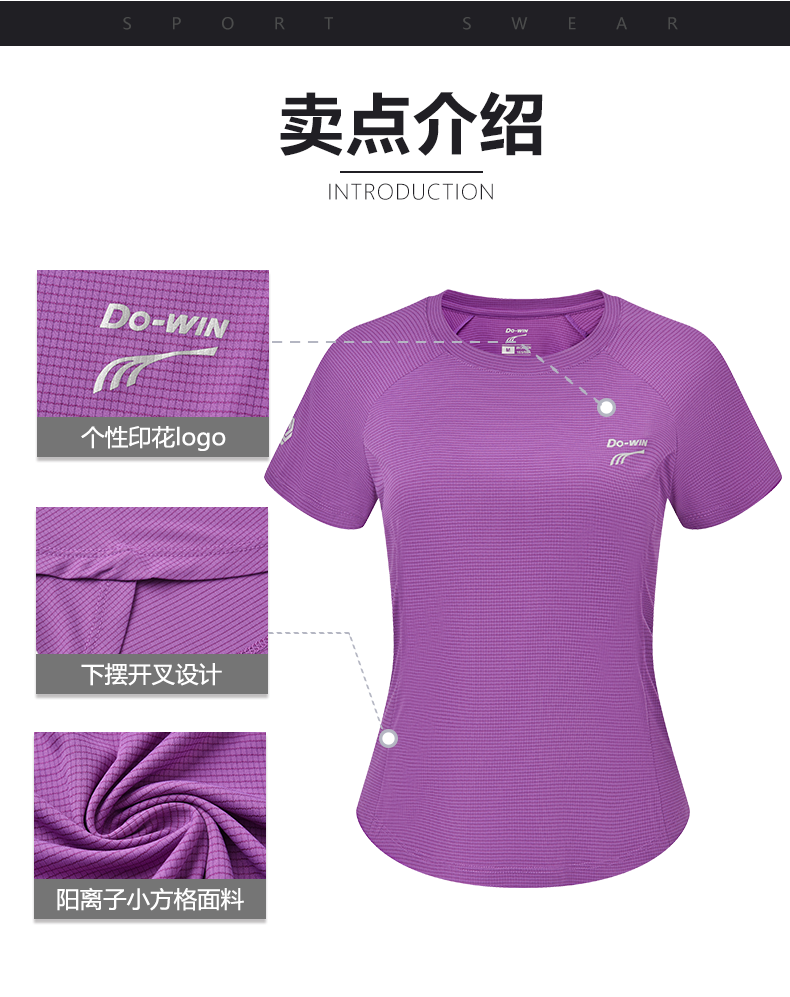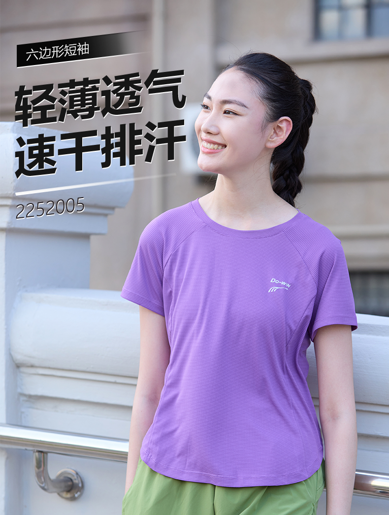多威六边形短袖女夏季新款速干透气运动服柔软弹力T恤2252005