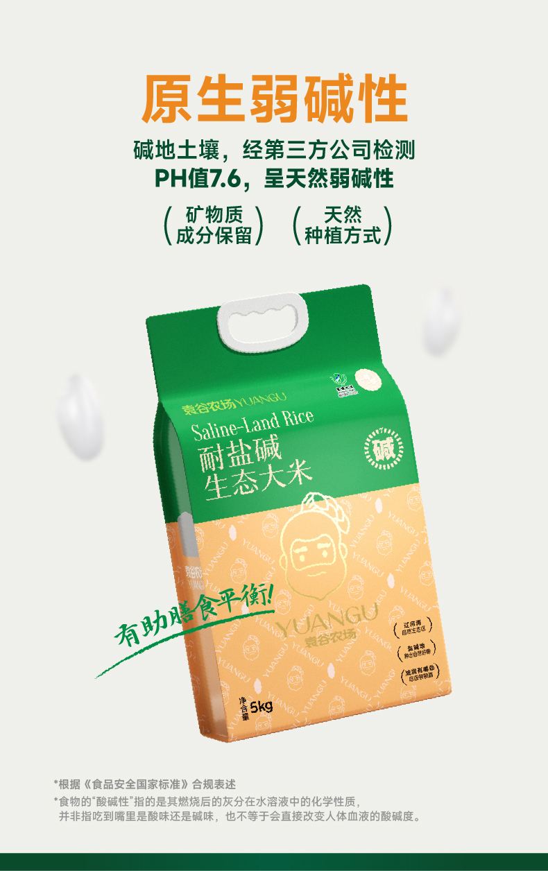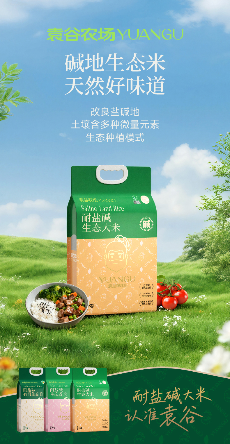 袁谷农场耐盐碱生态大米5kg东北盐碱地无污染蟹稻共生生态长粒米10斤双层真空包装