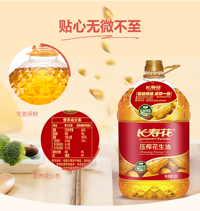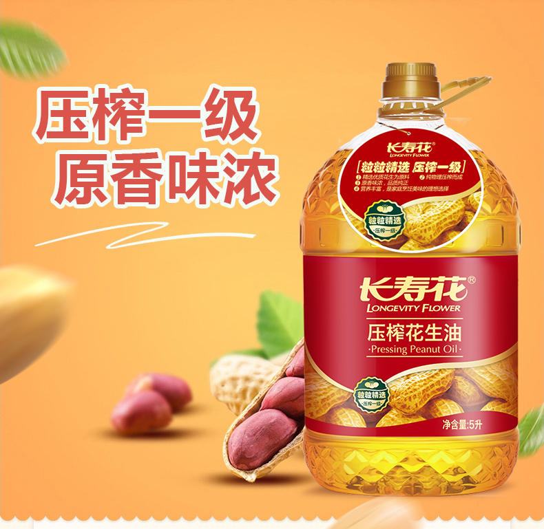 长寿花好事花生+浓香玉米油 压榨花生油5l + 浓香玉米油200ml 颗颗精选,一级压榨