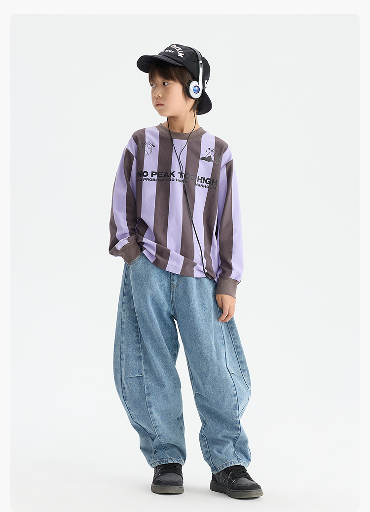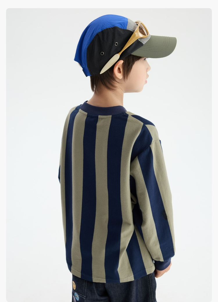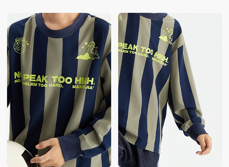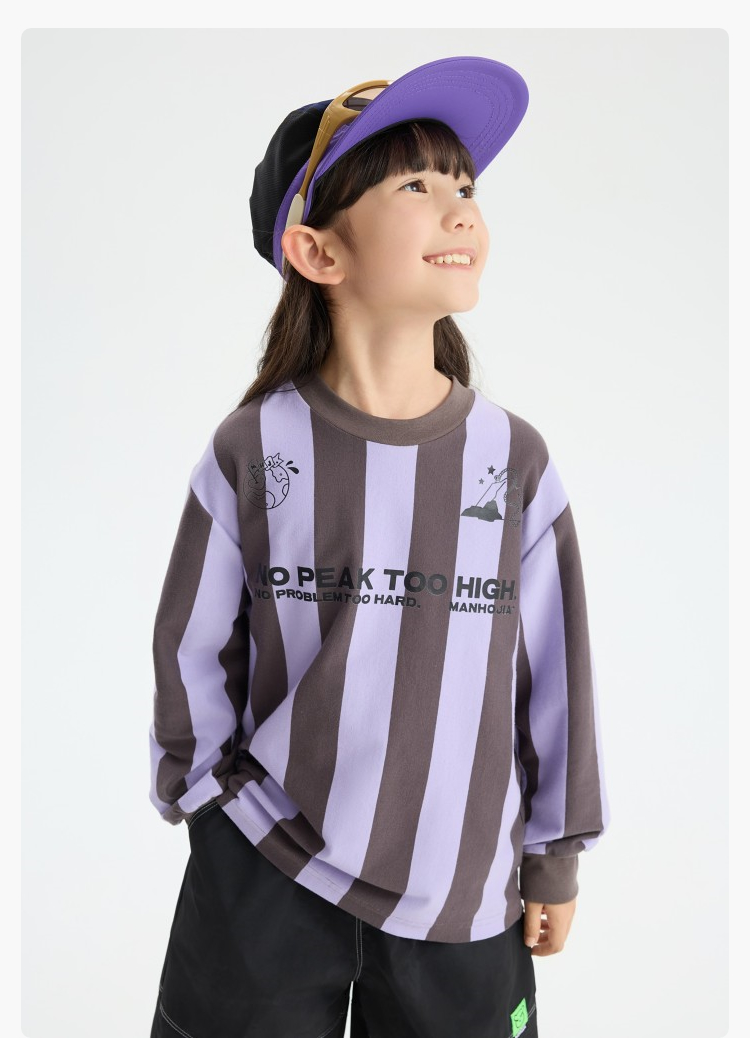 漫画家【条纹攀岩T】户外攀岩元气宽条棉感长袖训练上衣