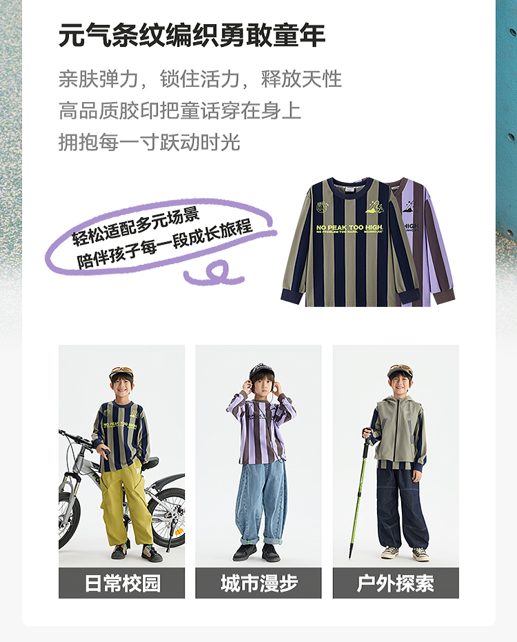 马拉丁旗下的城市户外潮童品牌,为3-12岁的孩子提供实用与细节设计的时尚度童装,打造现代简潮和城市户外感的着装,man游童年的冒险jia!