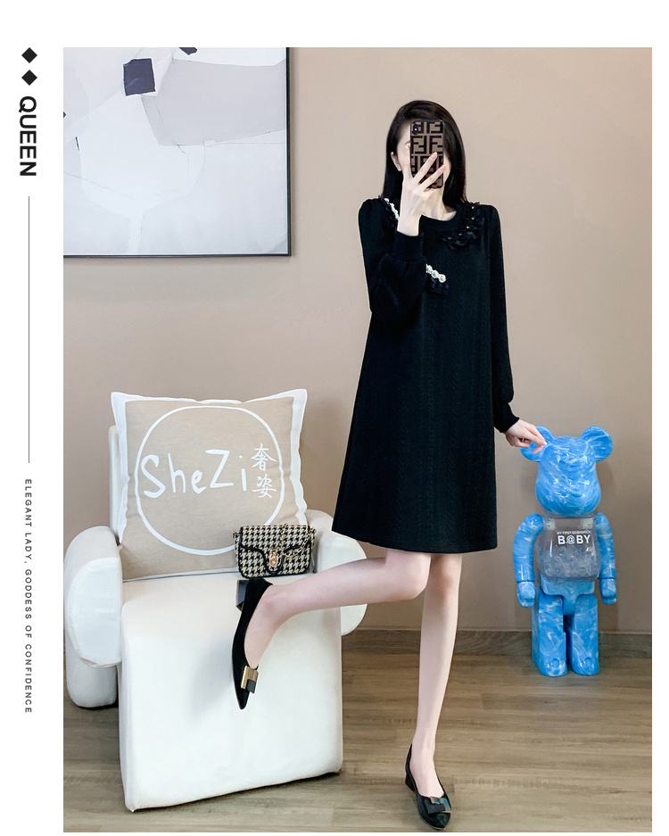 奢姿2025年秋装新款大码女装荷叶边减龄裙子胖妹妹时尚遮肚连衣裙9924866625