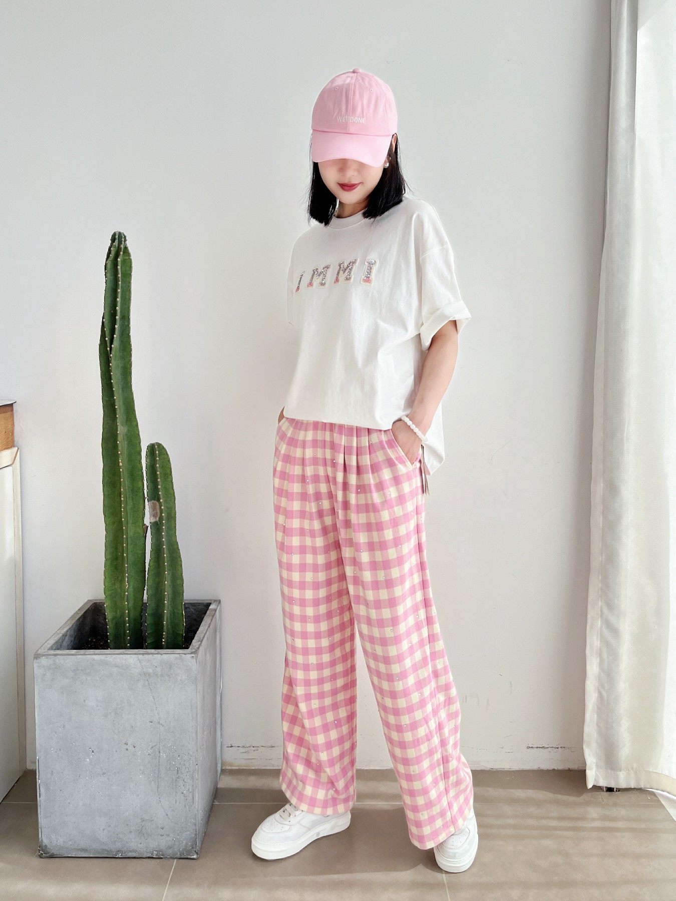 2024春夏新款 设计师款小众复古甜美钉珠亮片字母短袖T恤女