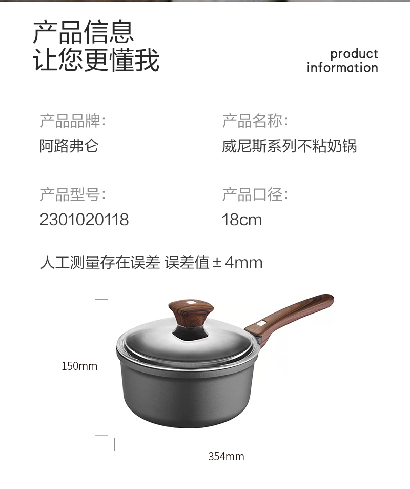 Alluflon阿路弗仑 威尼斯系列不粘奶锅