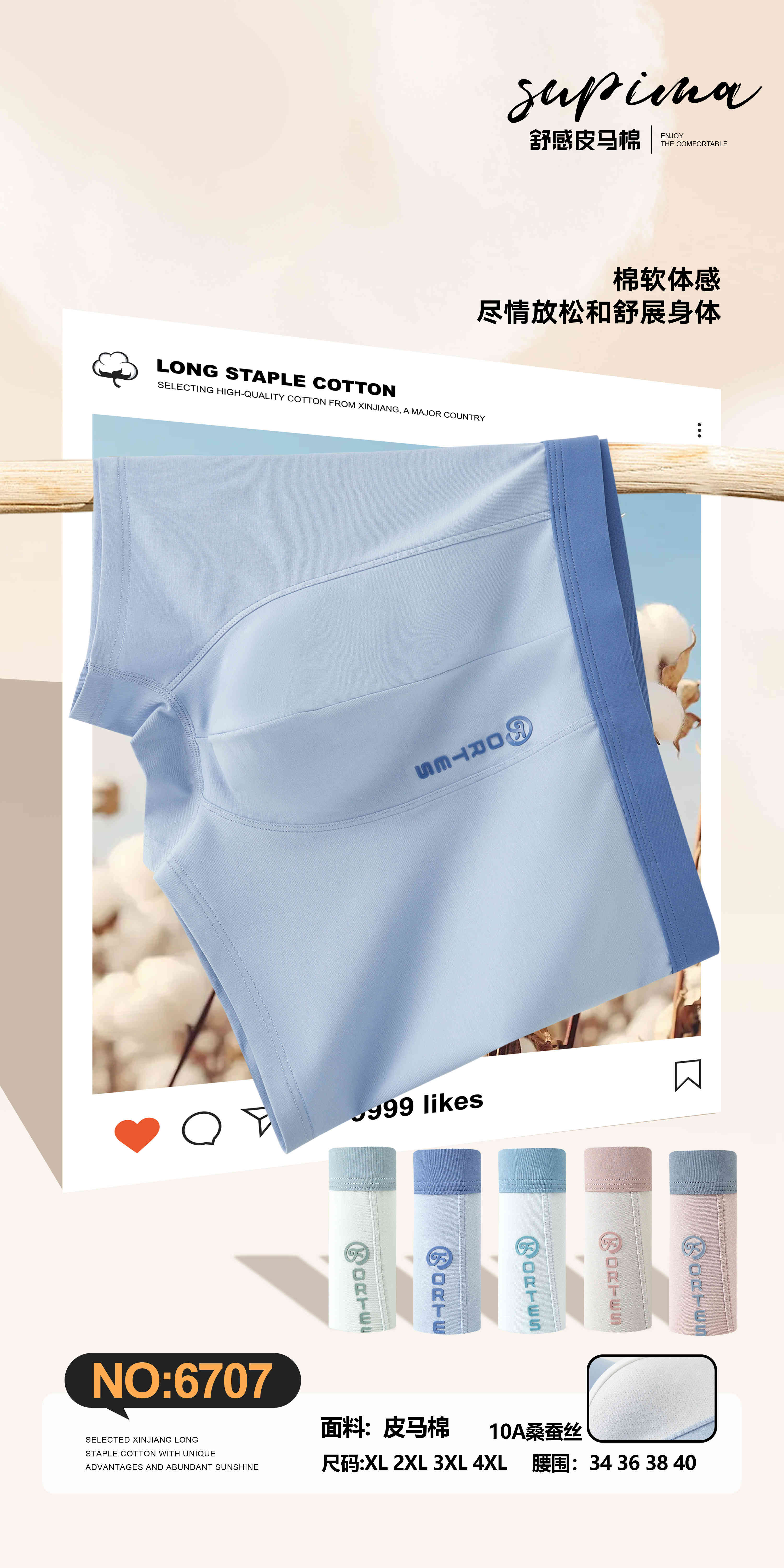 男士皮马棉包头印花车缝平角内裤舒适透气6707