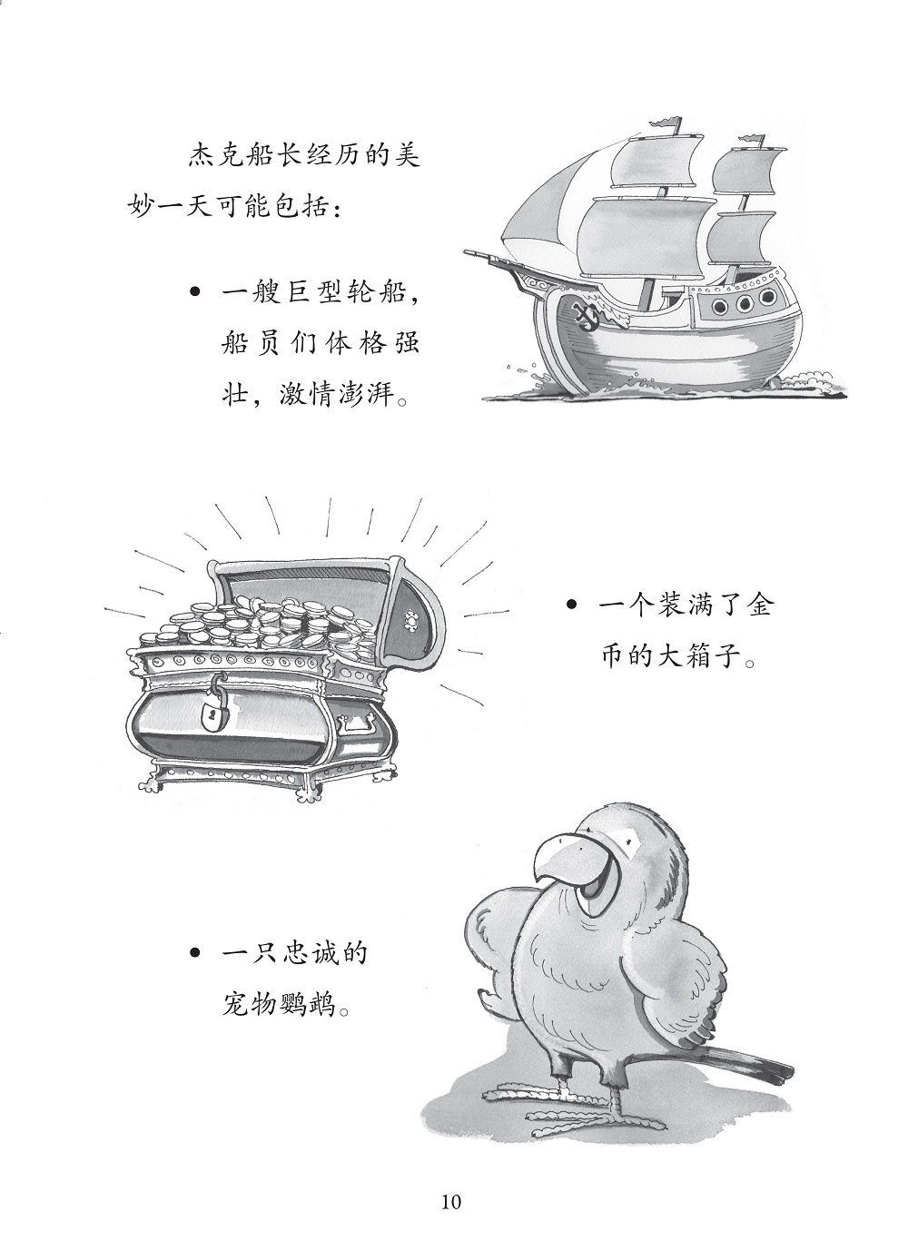 实际上,没有人能一直开心。有时在开心的日子里也会出现一些小麻烦,比如杰克船长在把金子搬到船上时,一不小心,金子掉到了海底。于是,美妙的一天就被搅乱了。