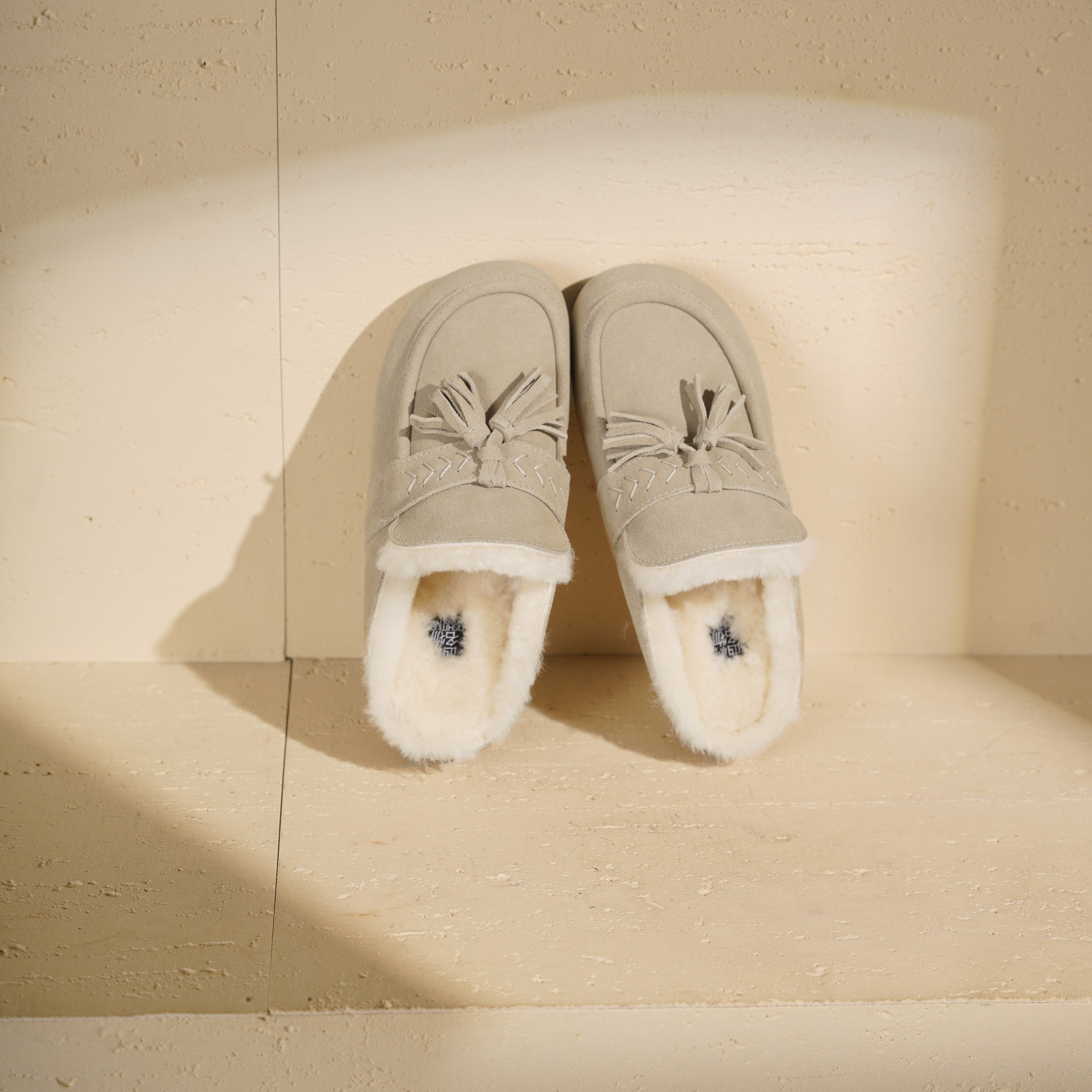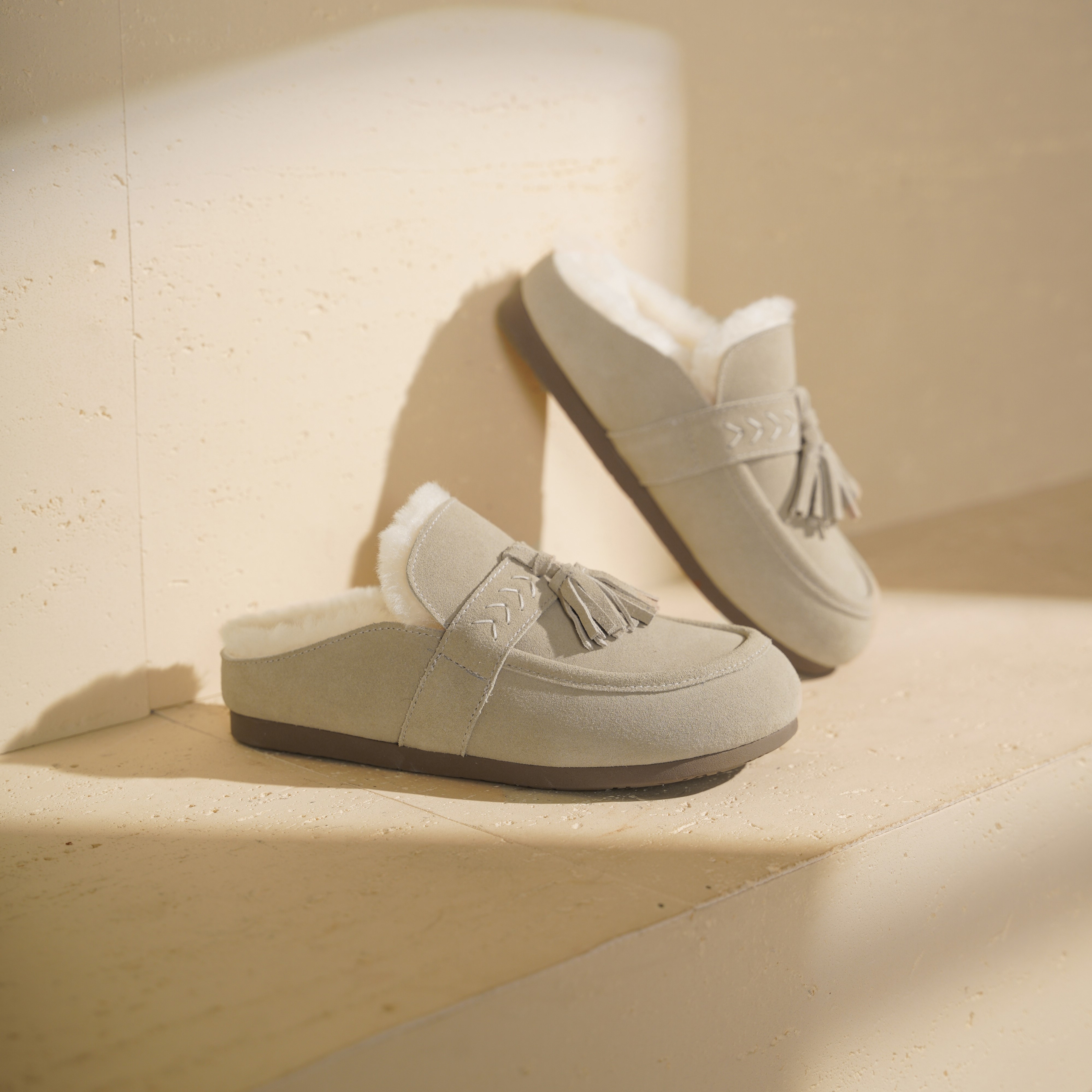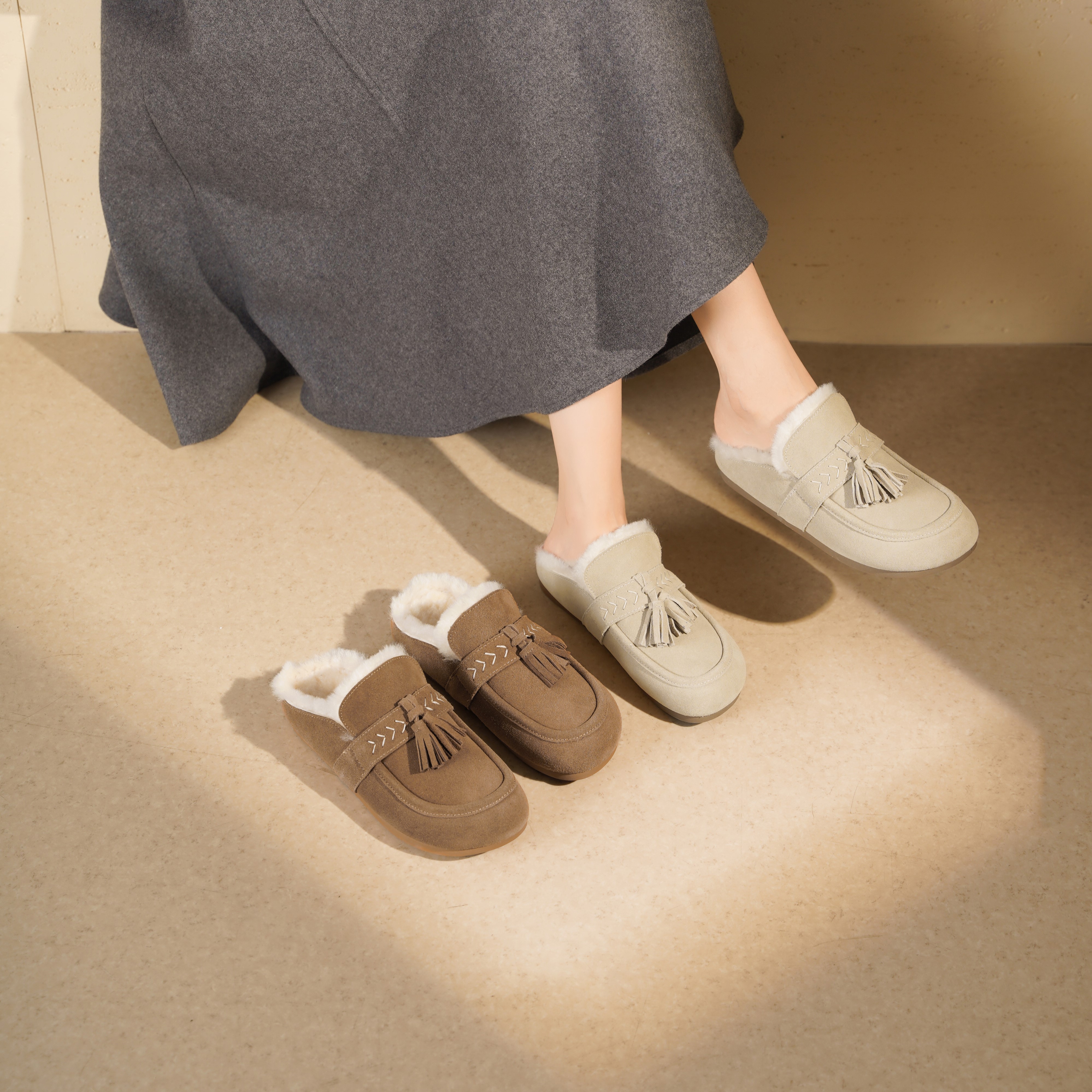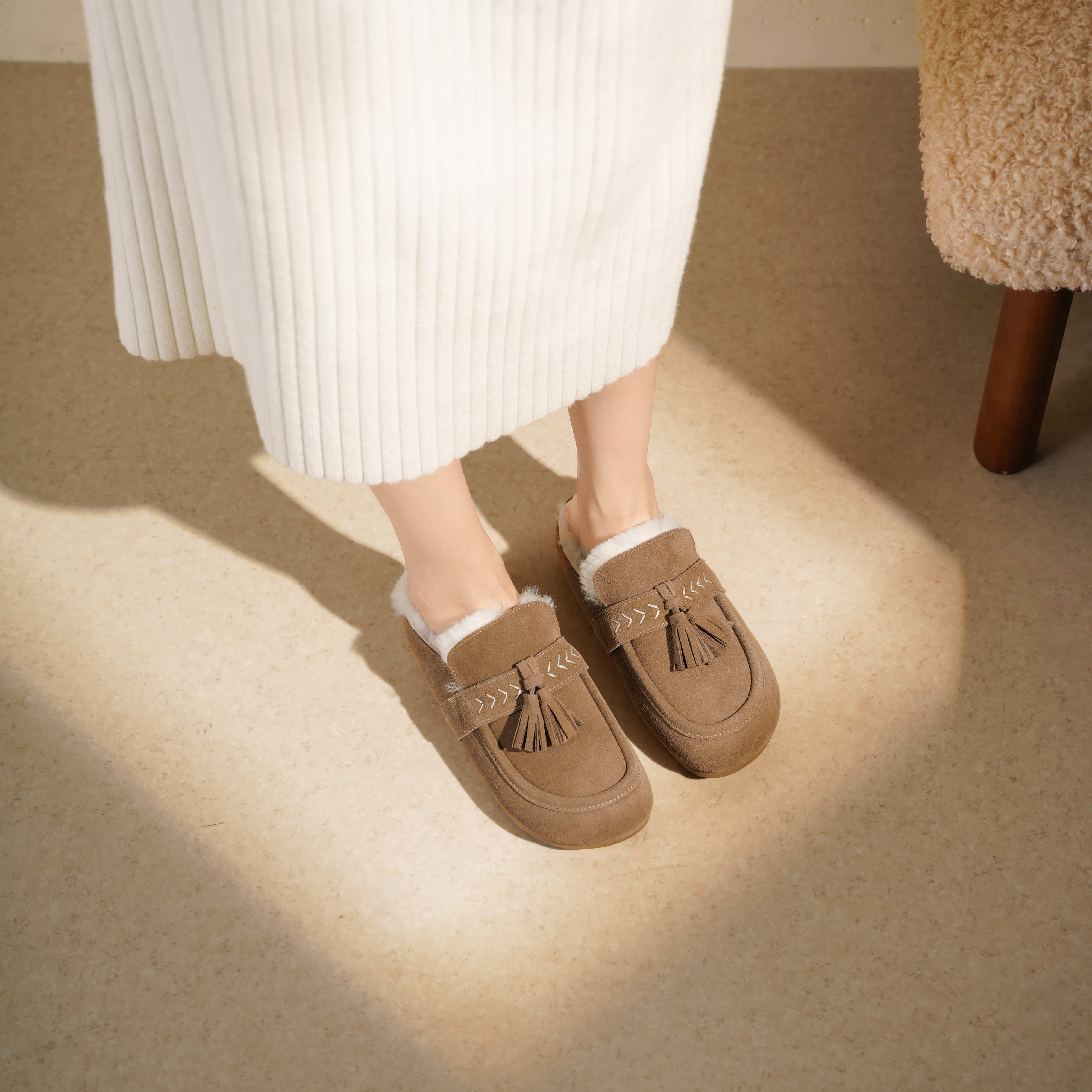 西村名物2025年冬季新款流苏毛毛底勃肯鞋时尚休闲加绒保暖女后空鞋T25DM49161