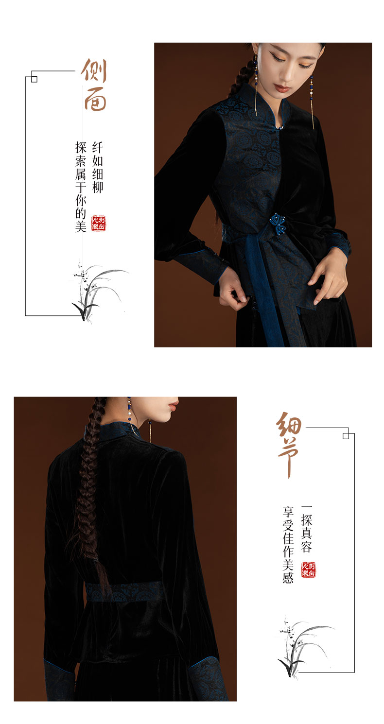 吉祥衣家新中式桑蚕丝气质复古高端显瘦女黑色透气琰芳华上衣外套
