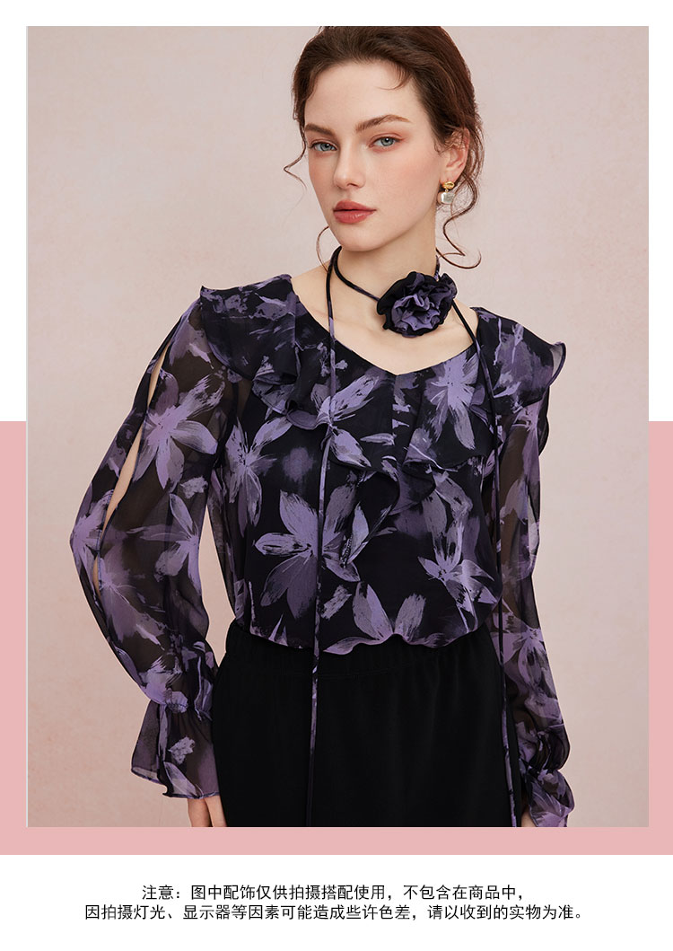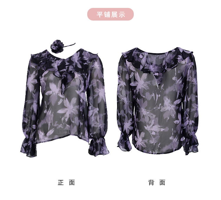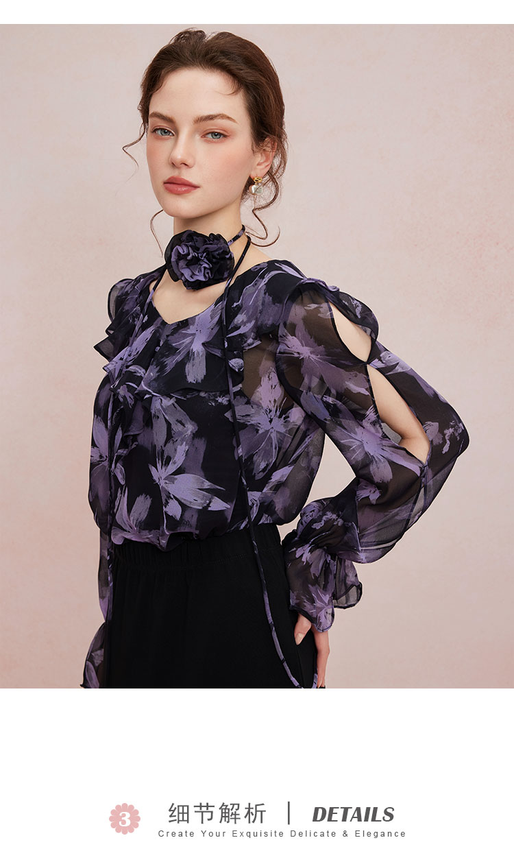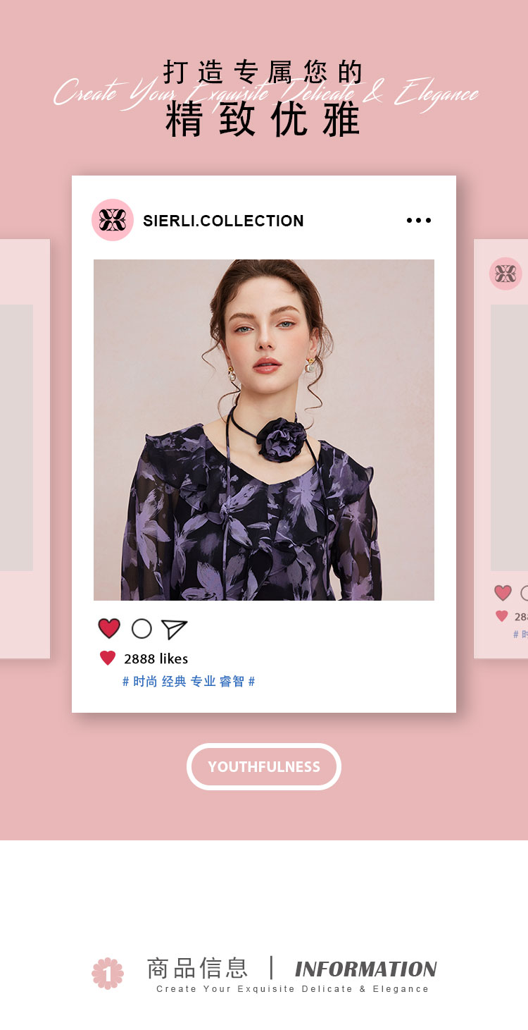 QF253斯尔丽2025夏季新款烂漫印花宽松时尚上衣手工盘花领花亦可腰带