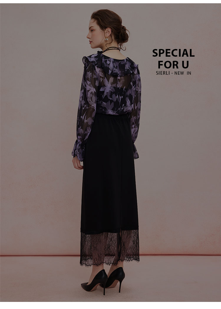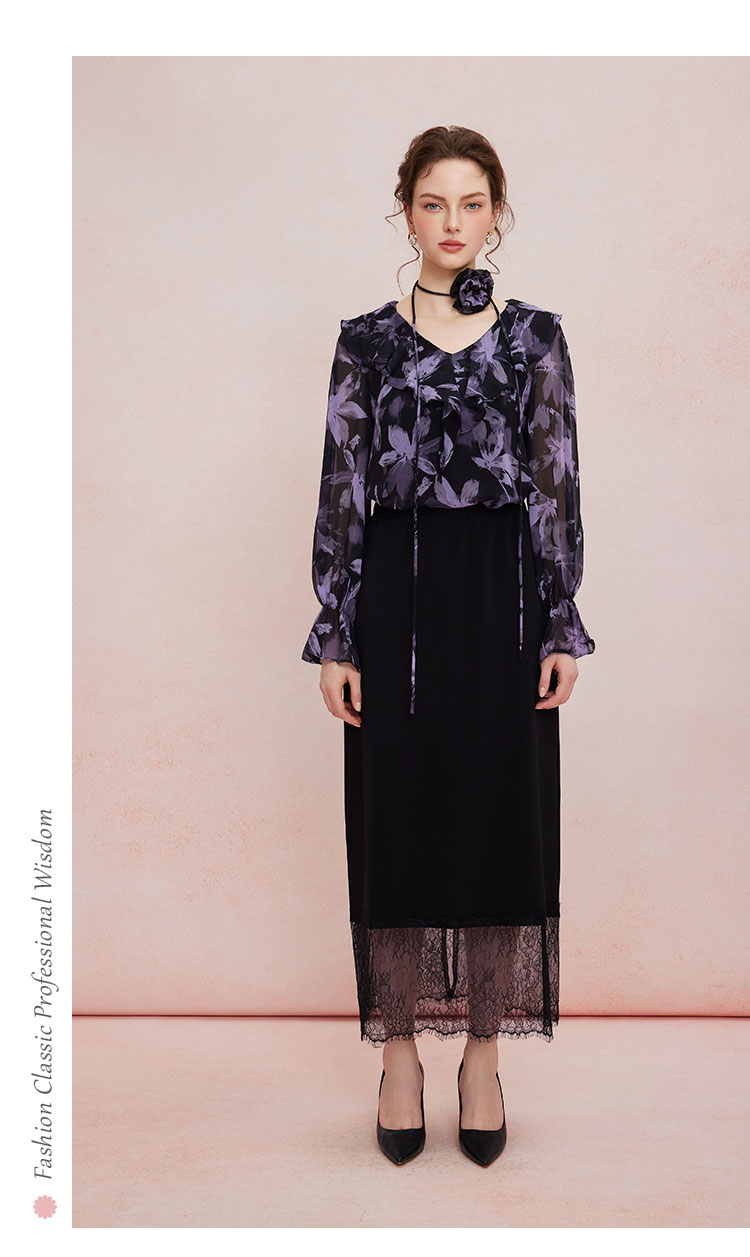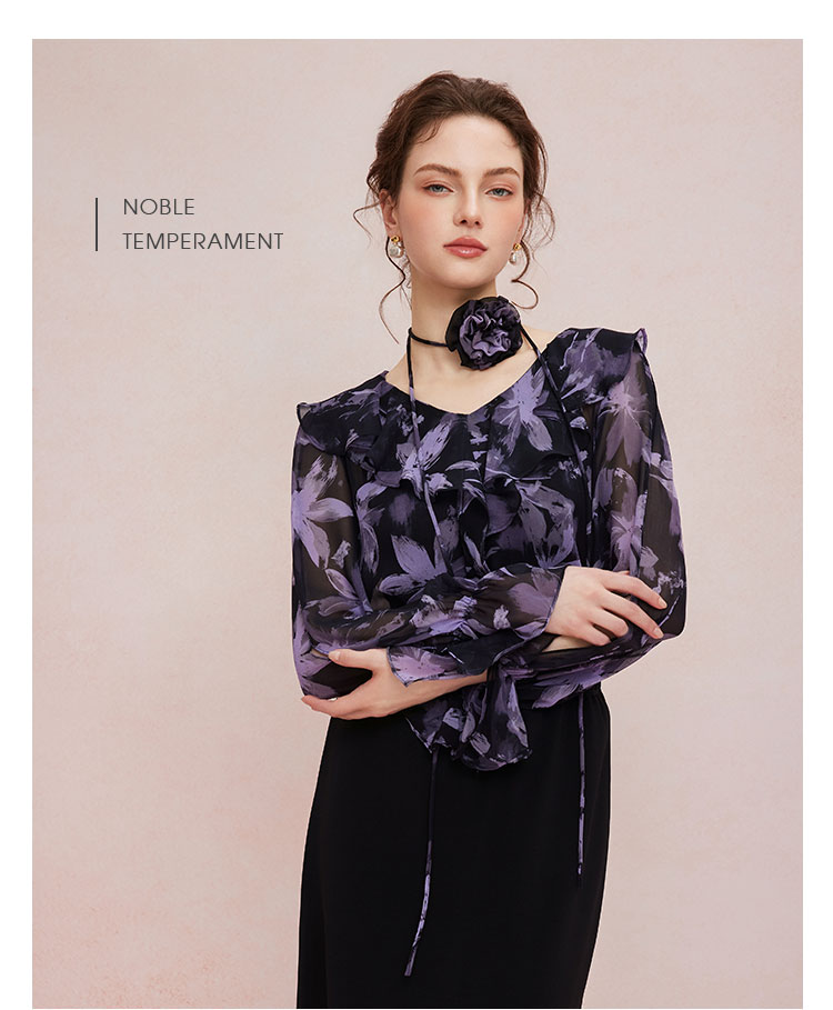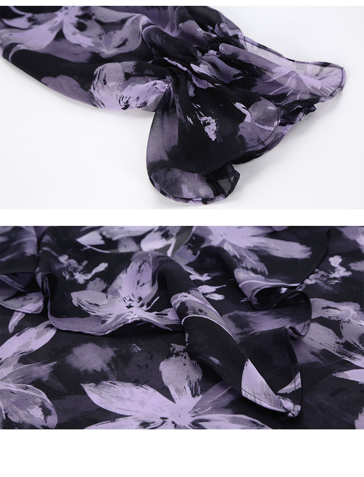QF253斯尔丽2025夏季新款烂漫印花宽松时尚上衣手工盘花领花亦可腰带