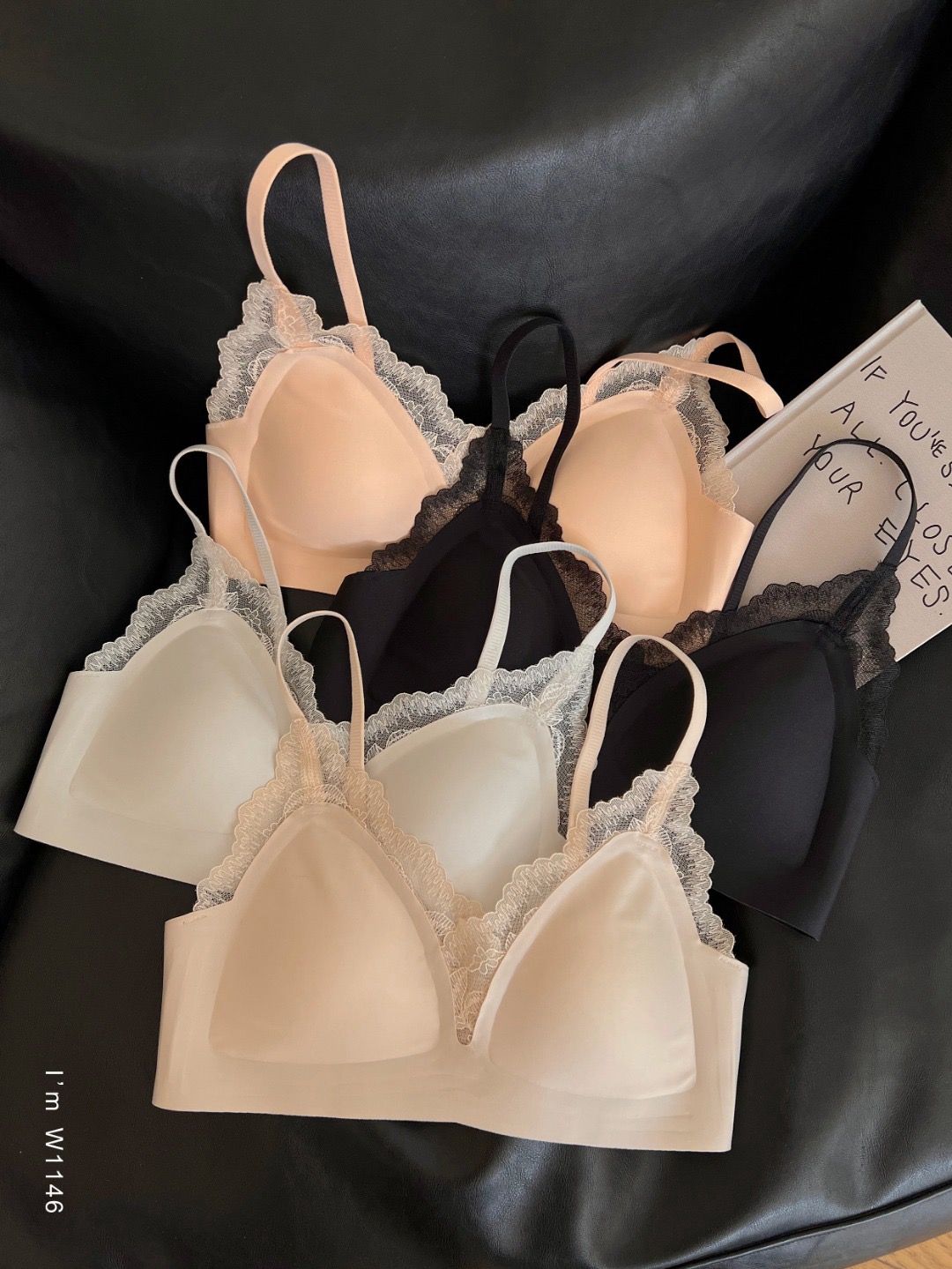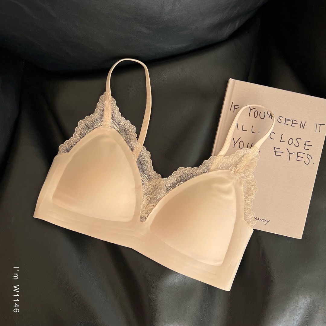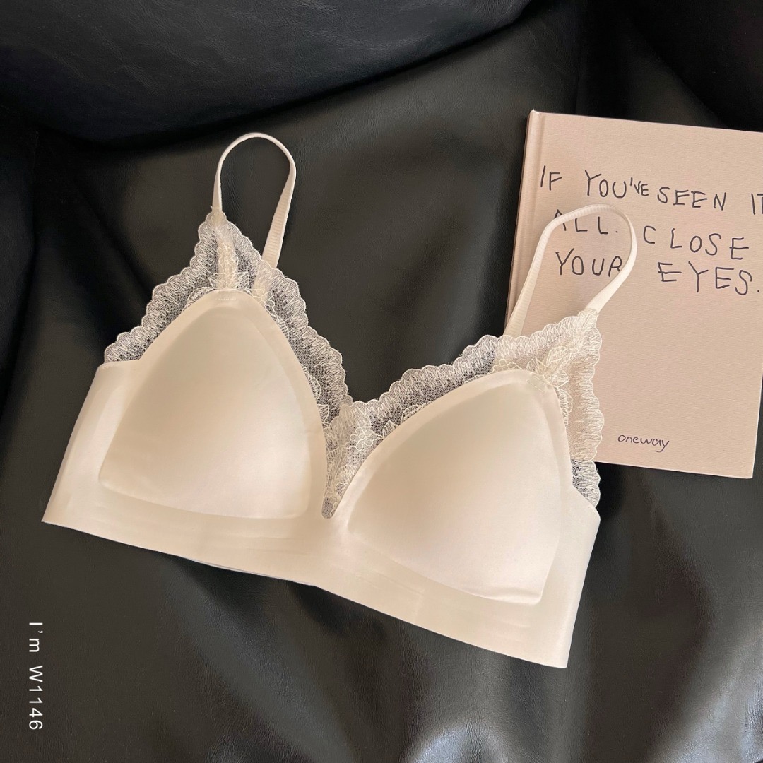 老米优品🎈3-5天!《智能软支撑防垂设计浪漫法式小三角杯文胸》柔软,无钢圈,蕾丝小性感设计~!NY241209A