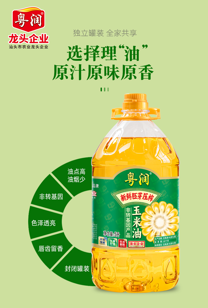 粤润新鲜胚芽压榨玉米油(5L/桶)另赠富裕祥生态软香米(2.5kg/袋)生产日期: 1月