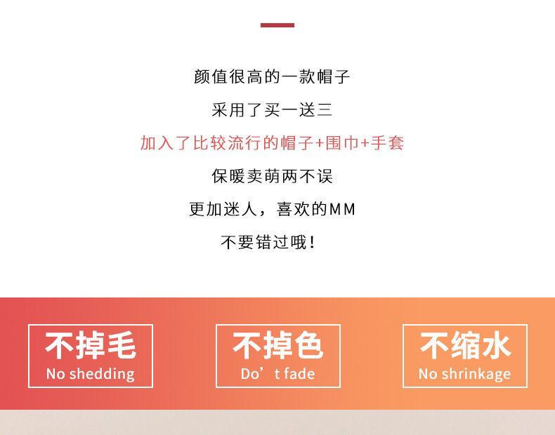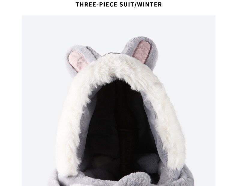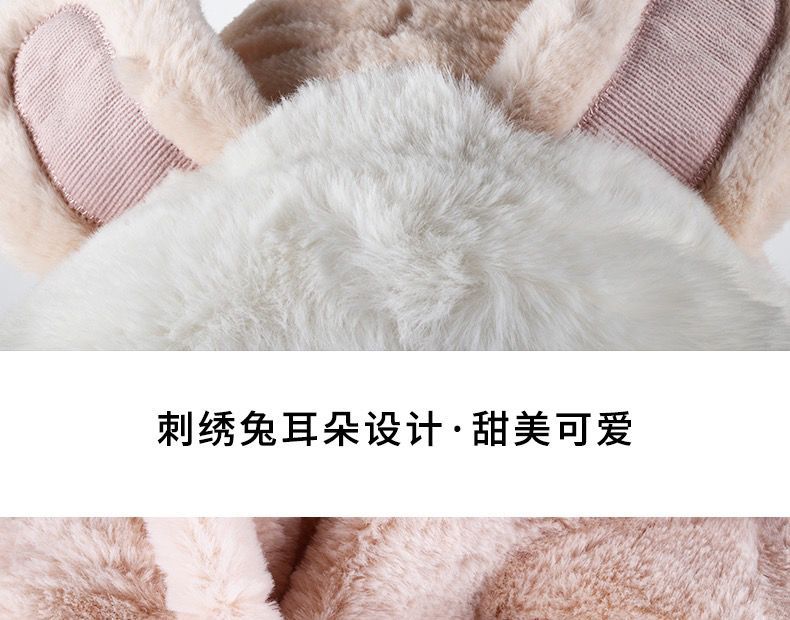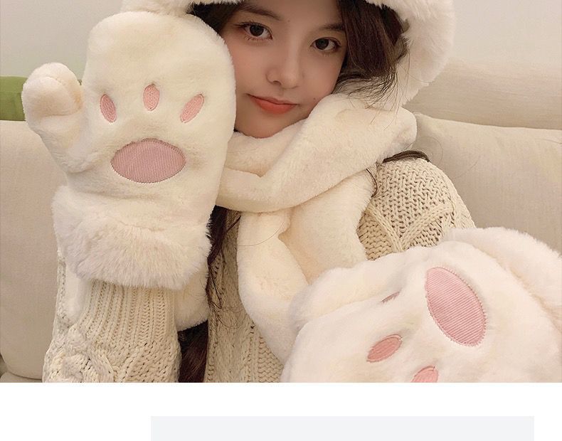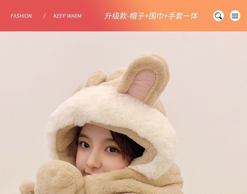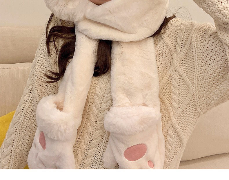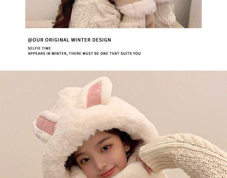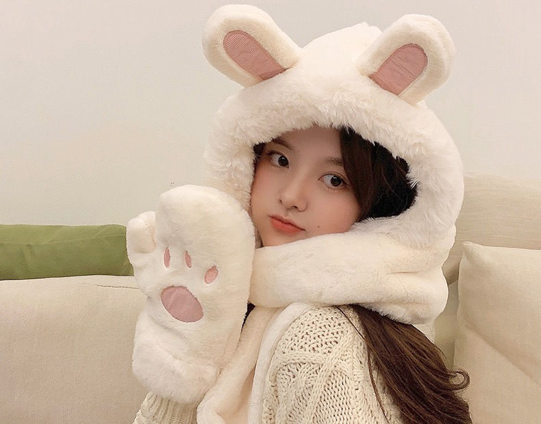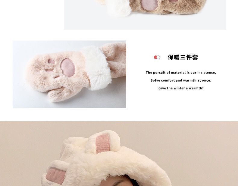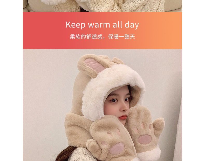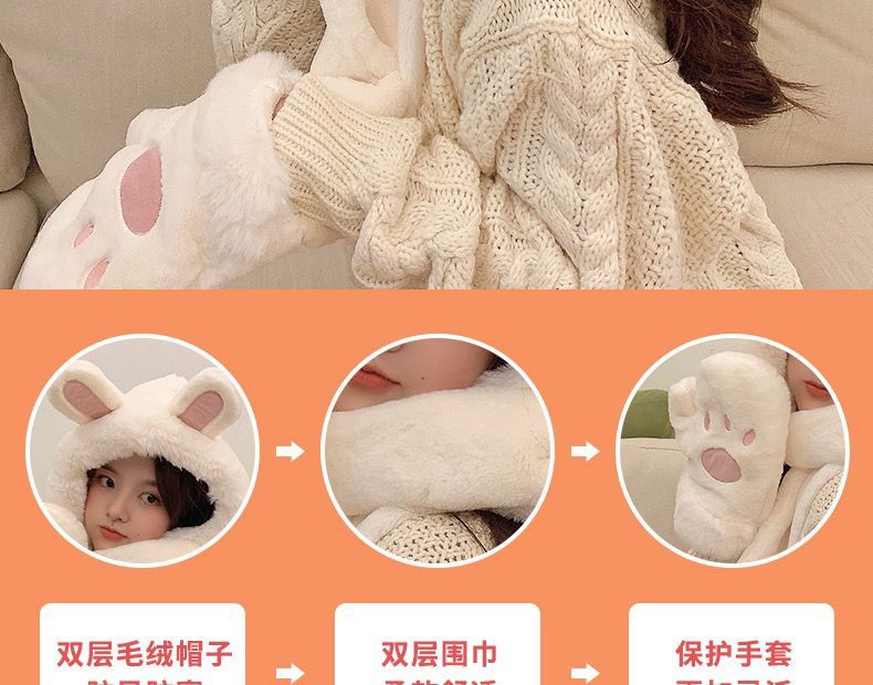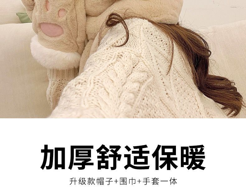 可爱兔子耳朵帽子围巾连体女冬季毛绒小熊围脖冬天保暖手套三合一nct16
