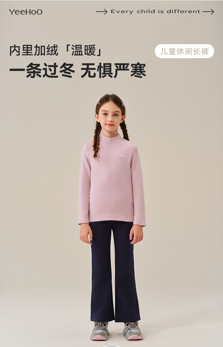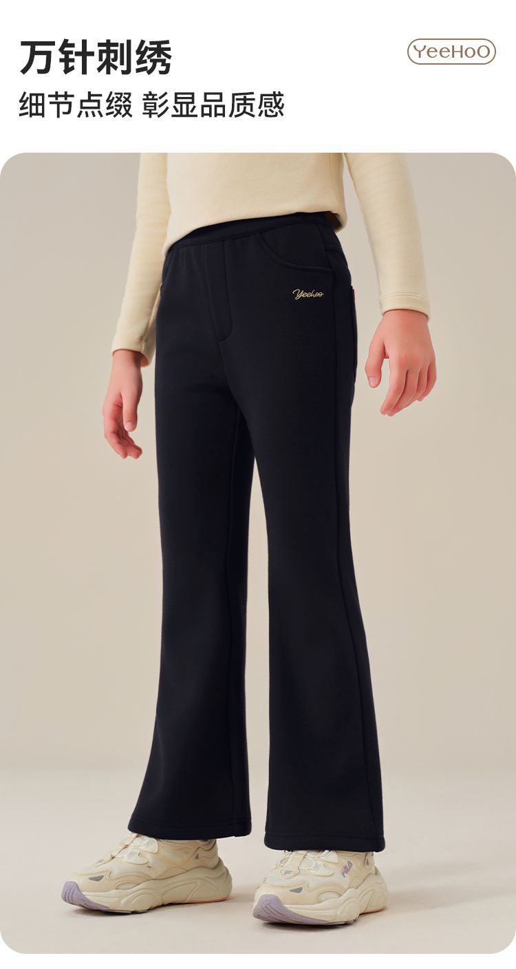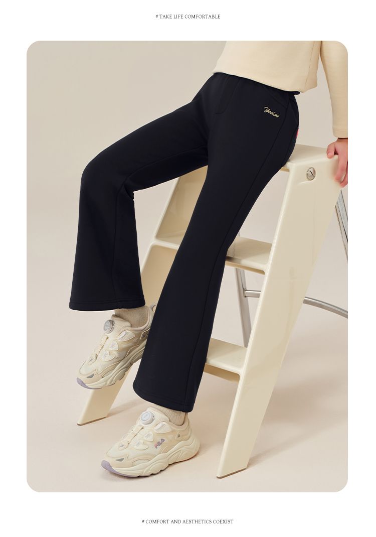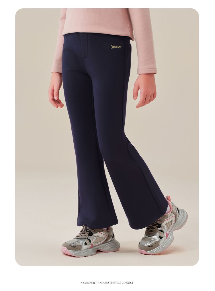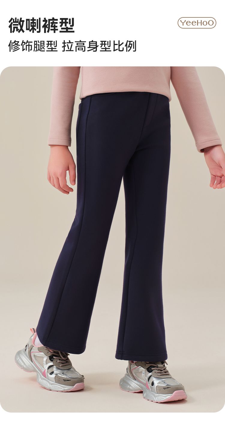 【英氏】【加绒】【120-170】女童加绒喇叭裤儿童加厚休闲裤