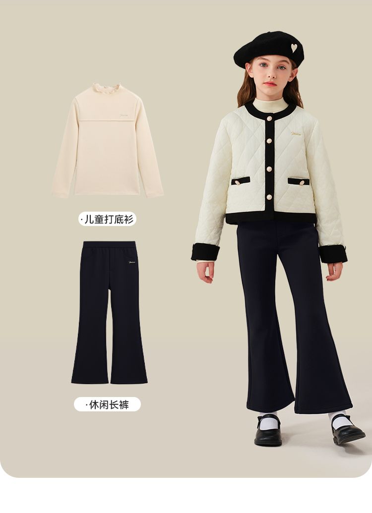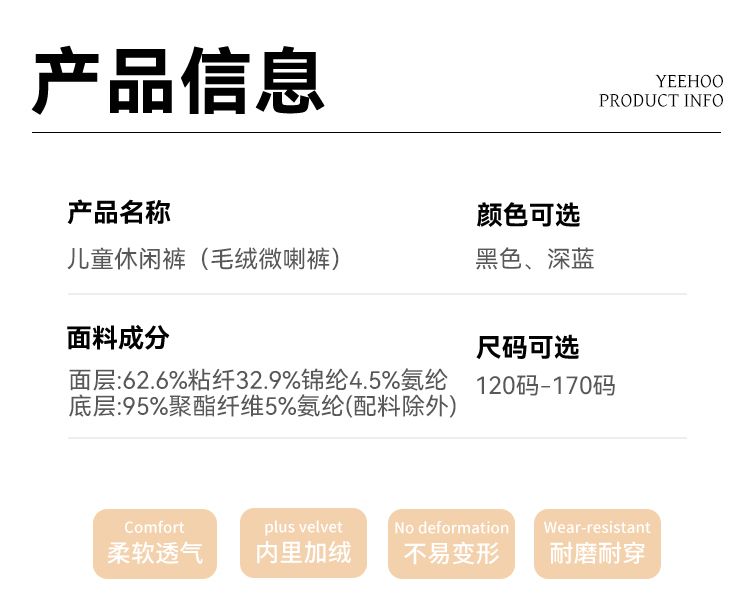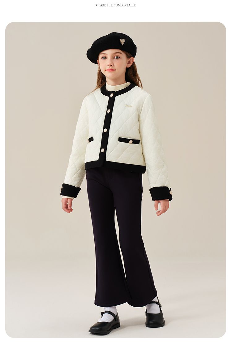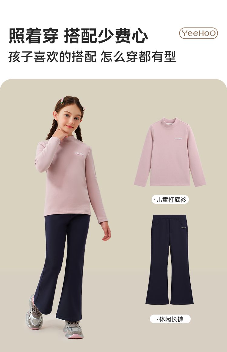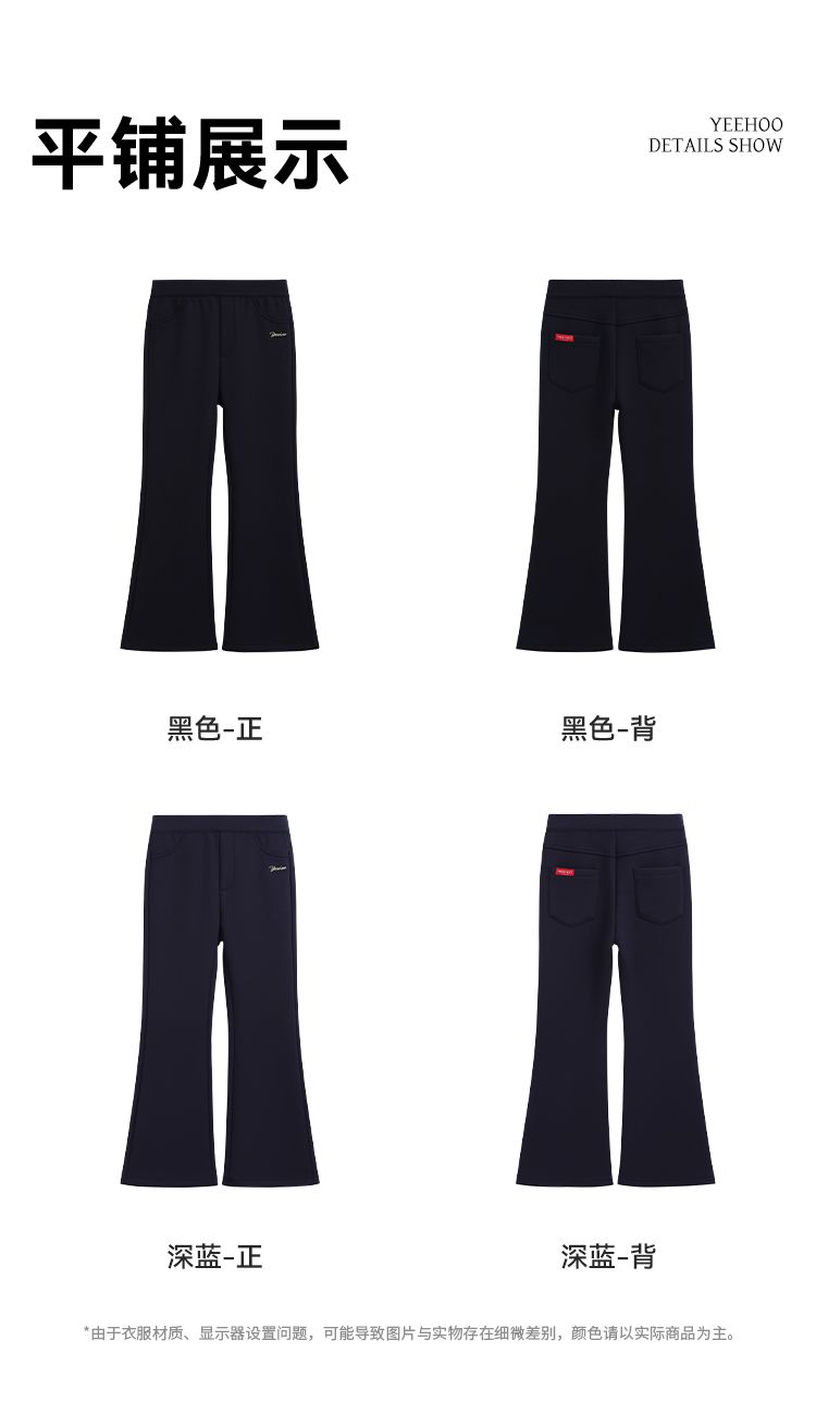 【英氏】【加绒】【120-170】女童加绒喇叭裤儿童加厚休闲裤