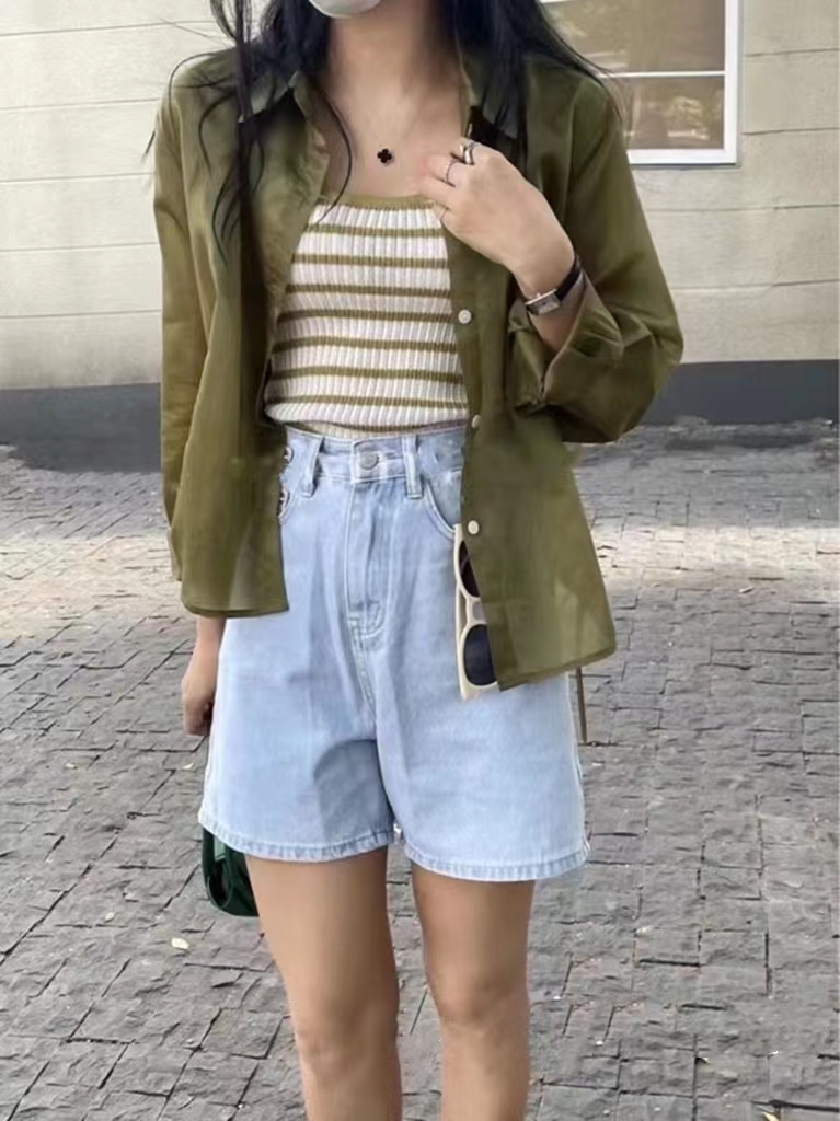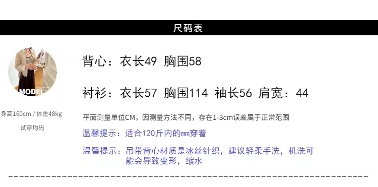 (清仓现货)【社群供T】7966条纹针织吊带背心+宽松长袖系带防晒寸衫两件套2