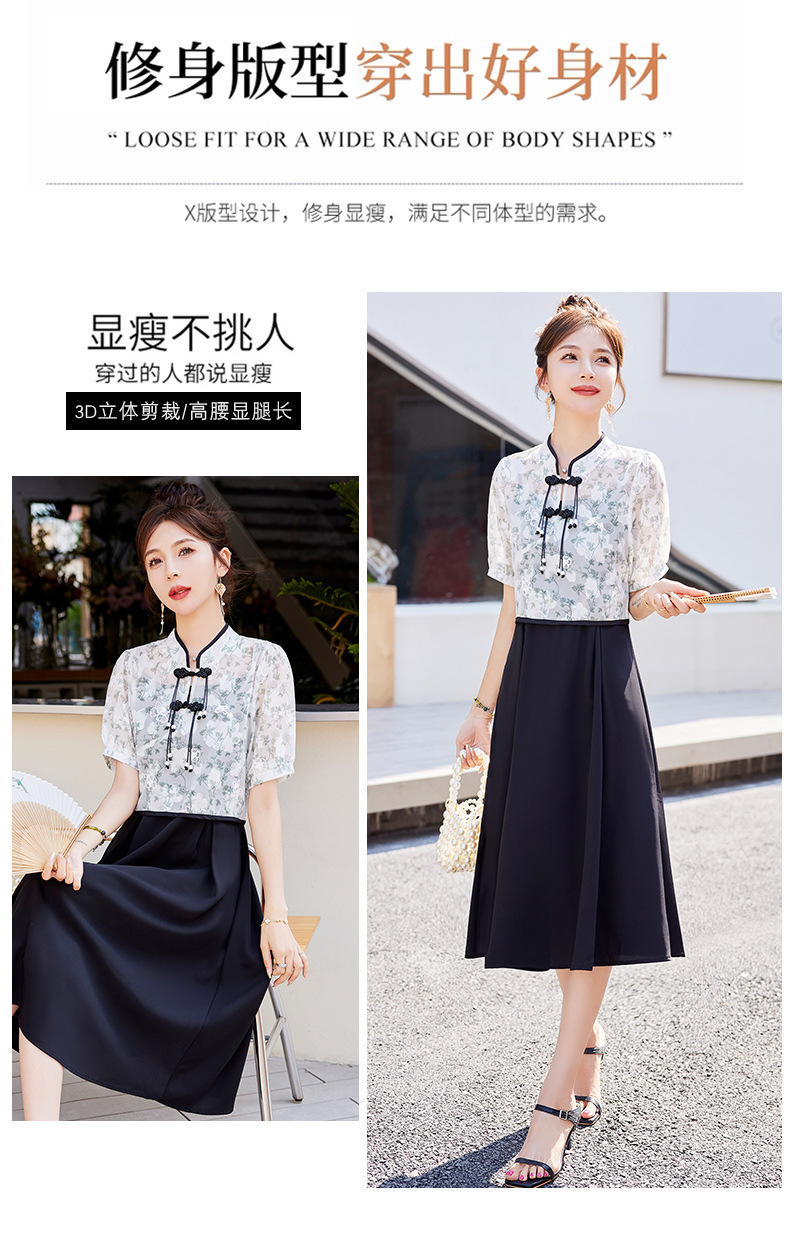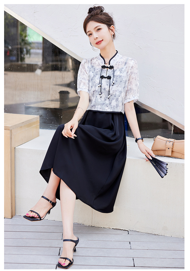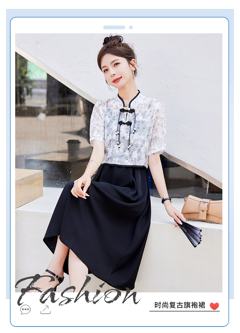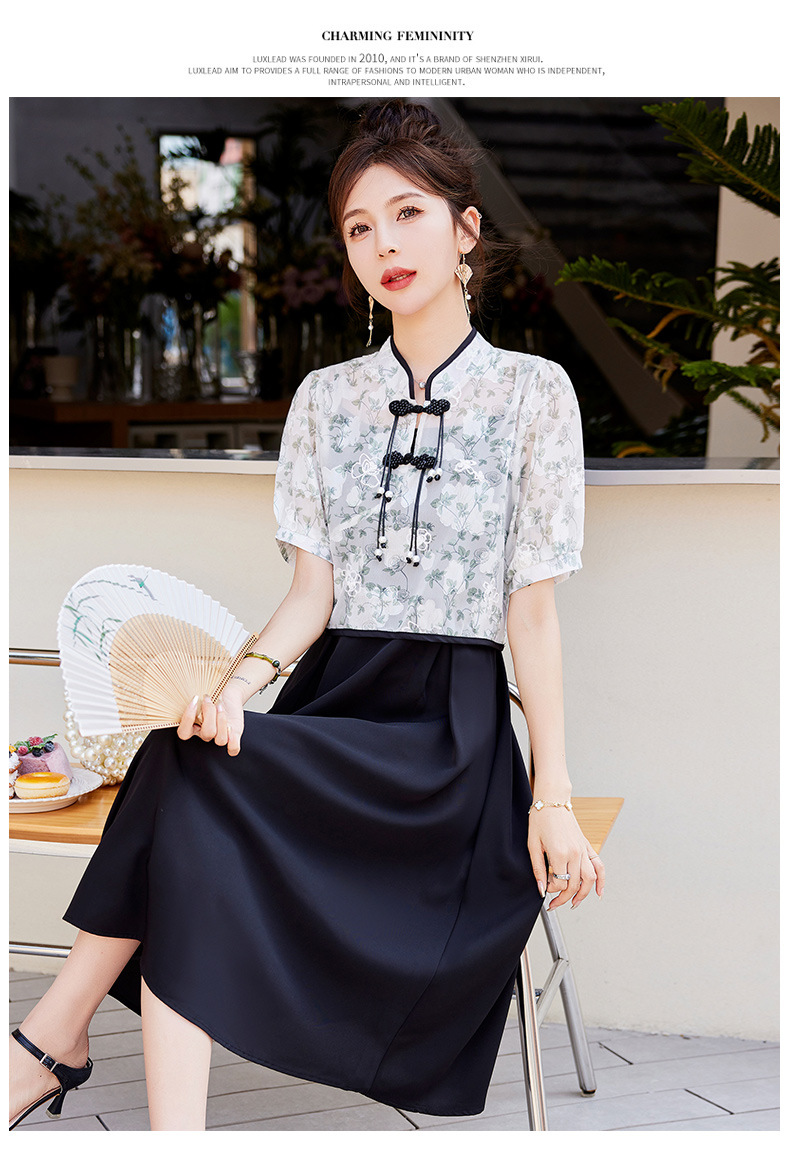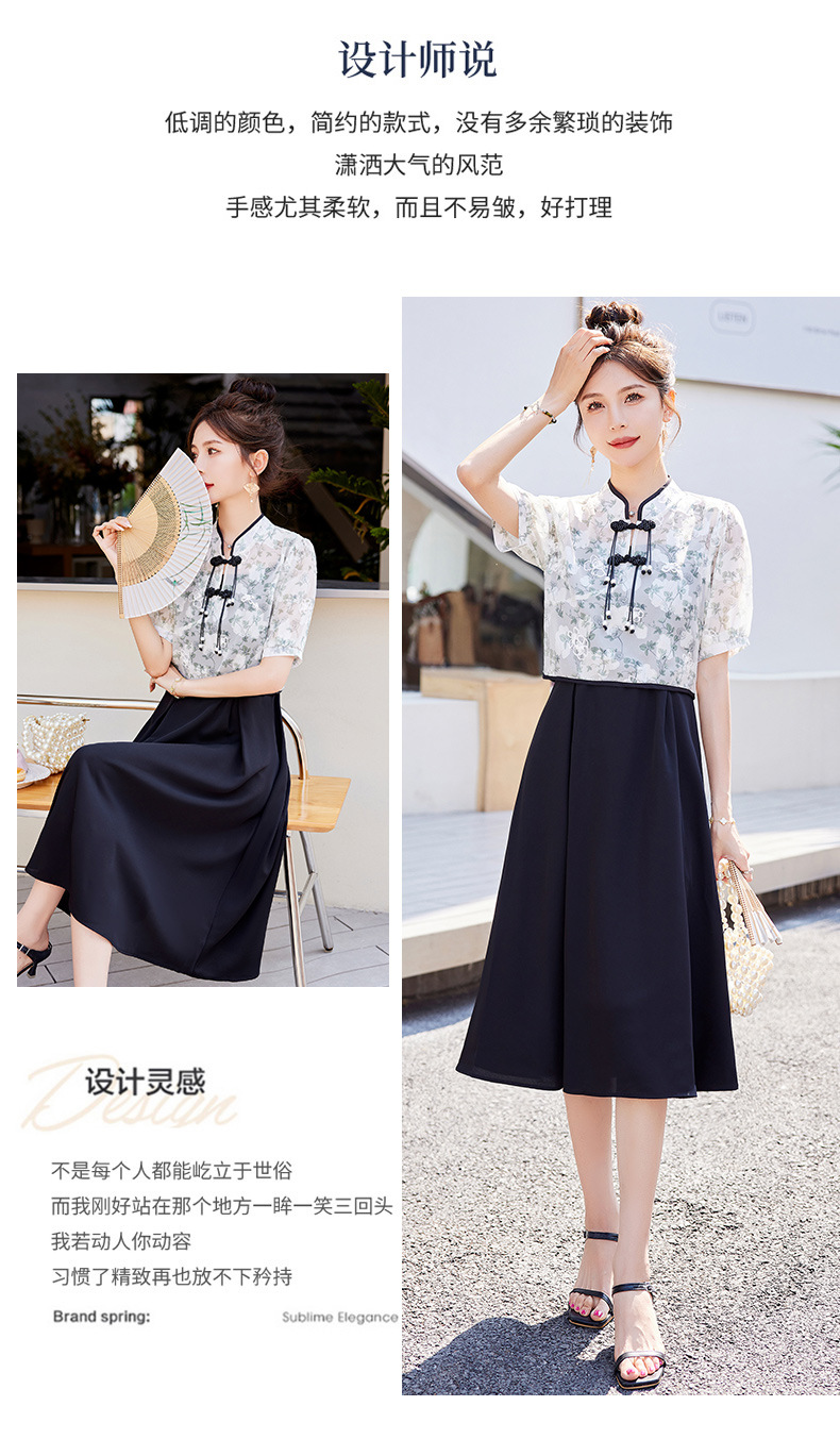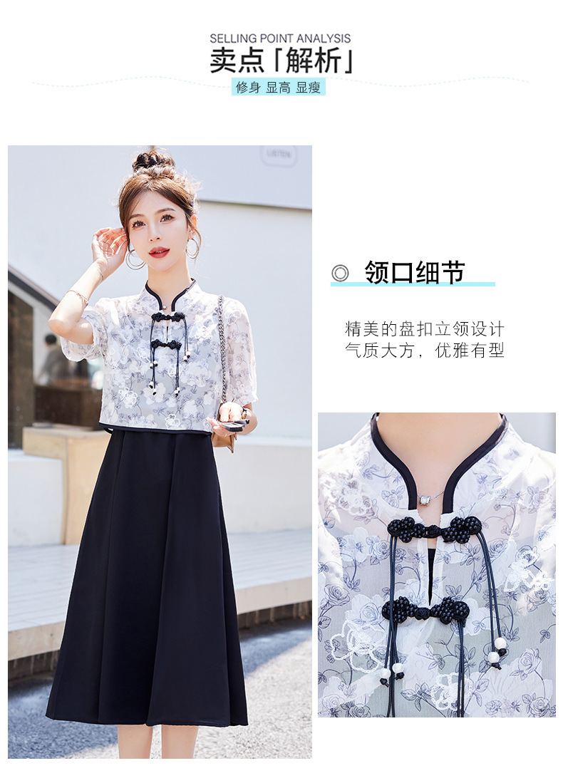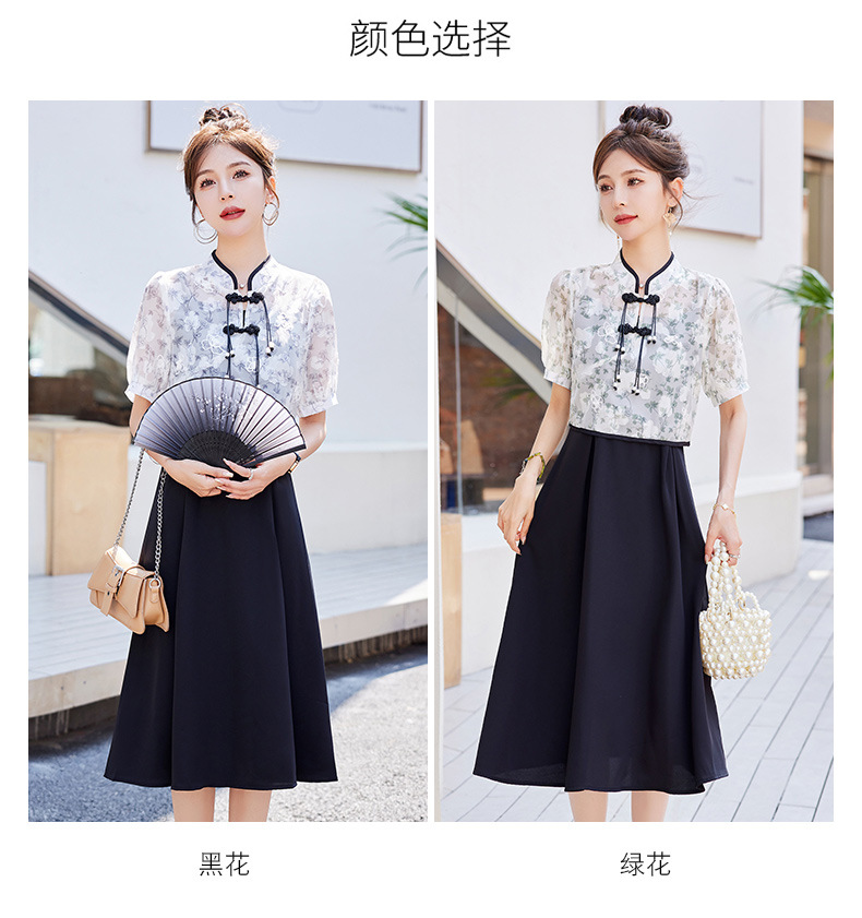 新中式复古民族风,小洋装旗袍改良连衣裙印花小衫夏上新两件套HR-WA232169