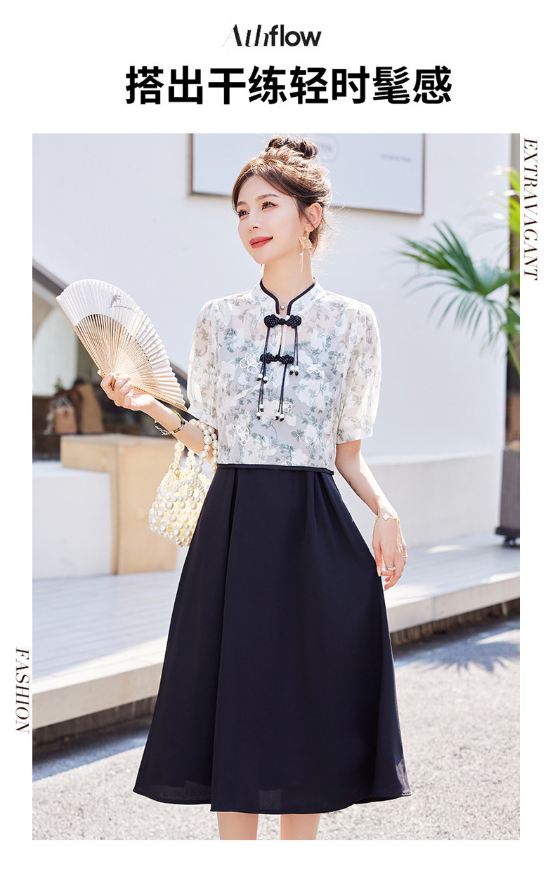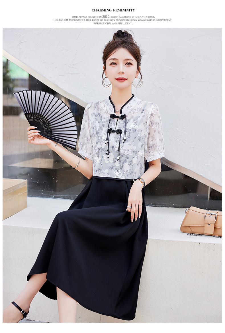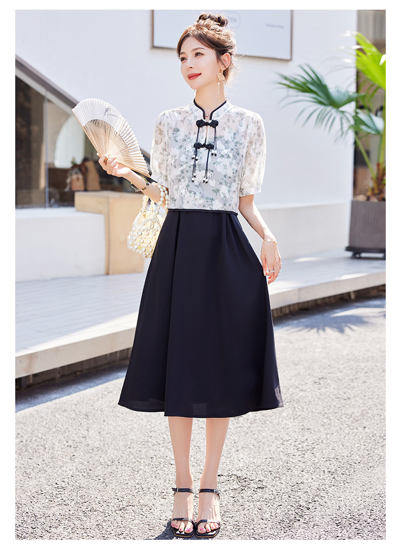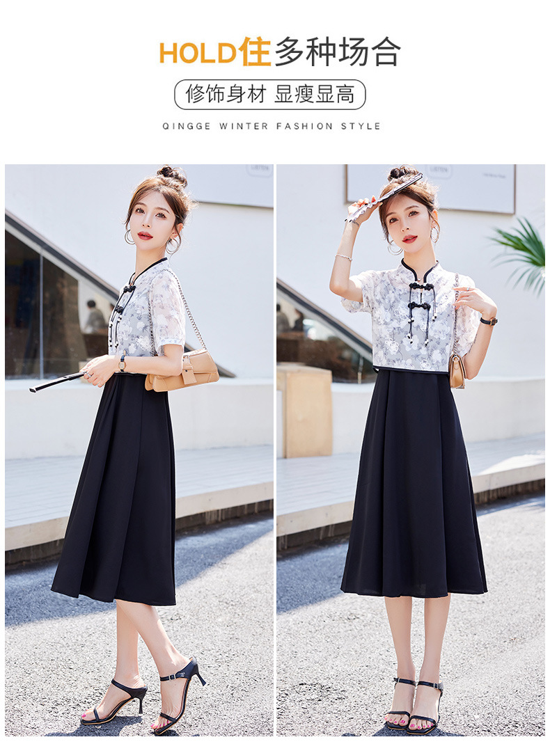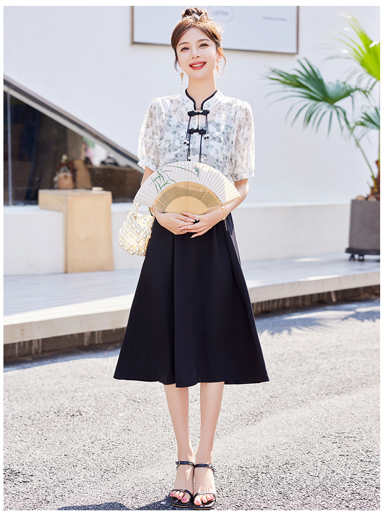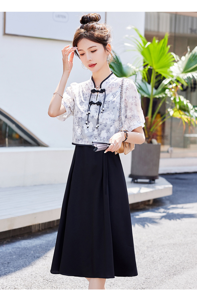新中式复古民族风,小洋装旗袍改良连衣裙印花小衫夏上新两件套HR-WA232169