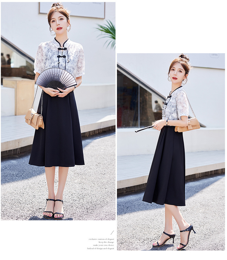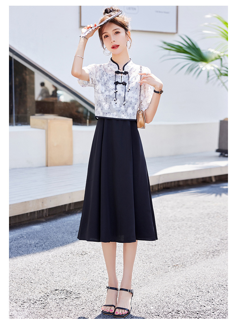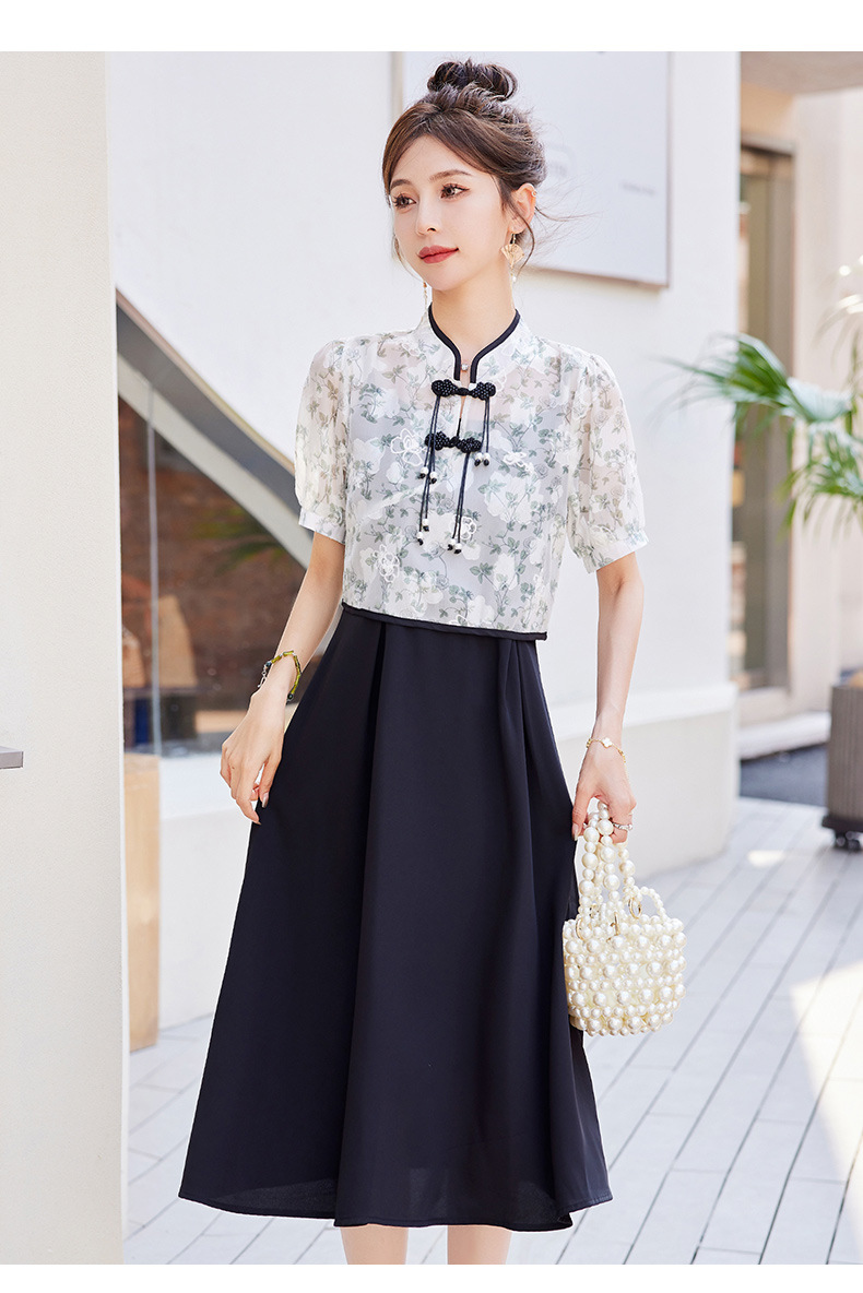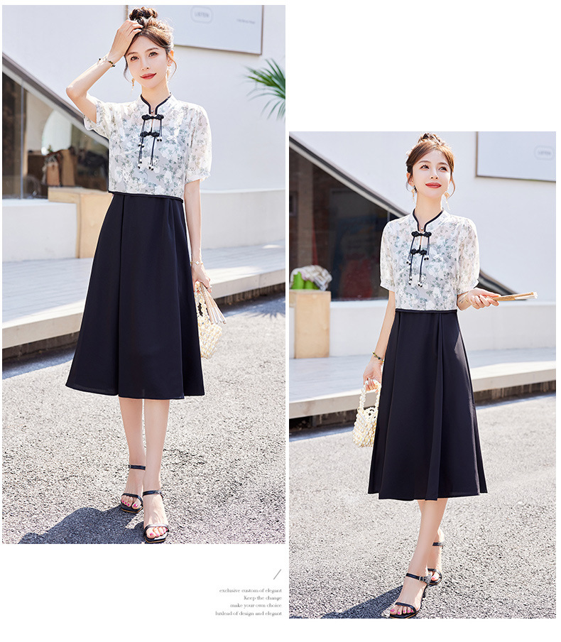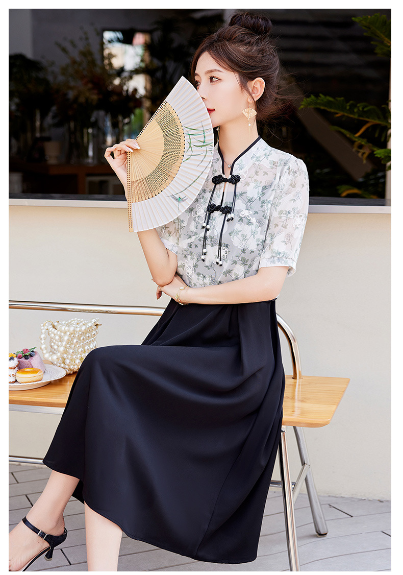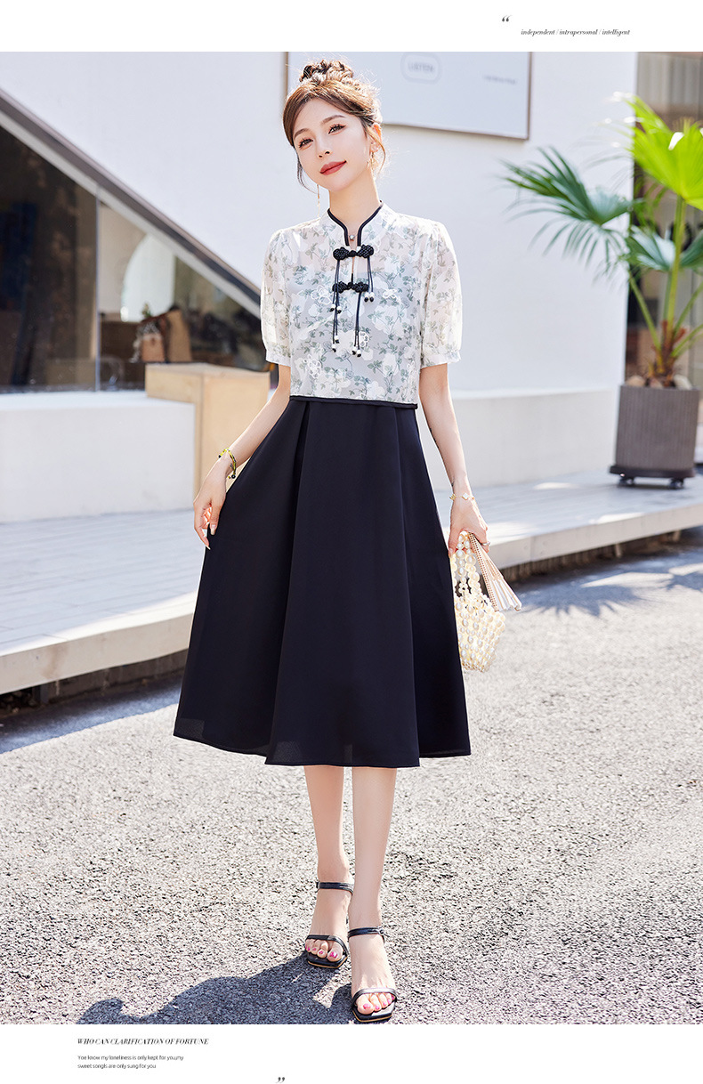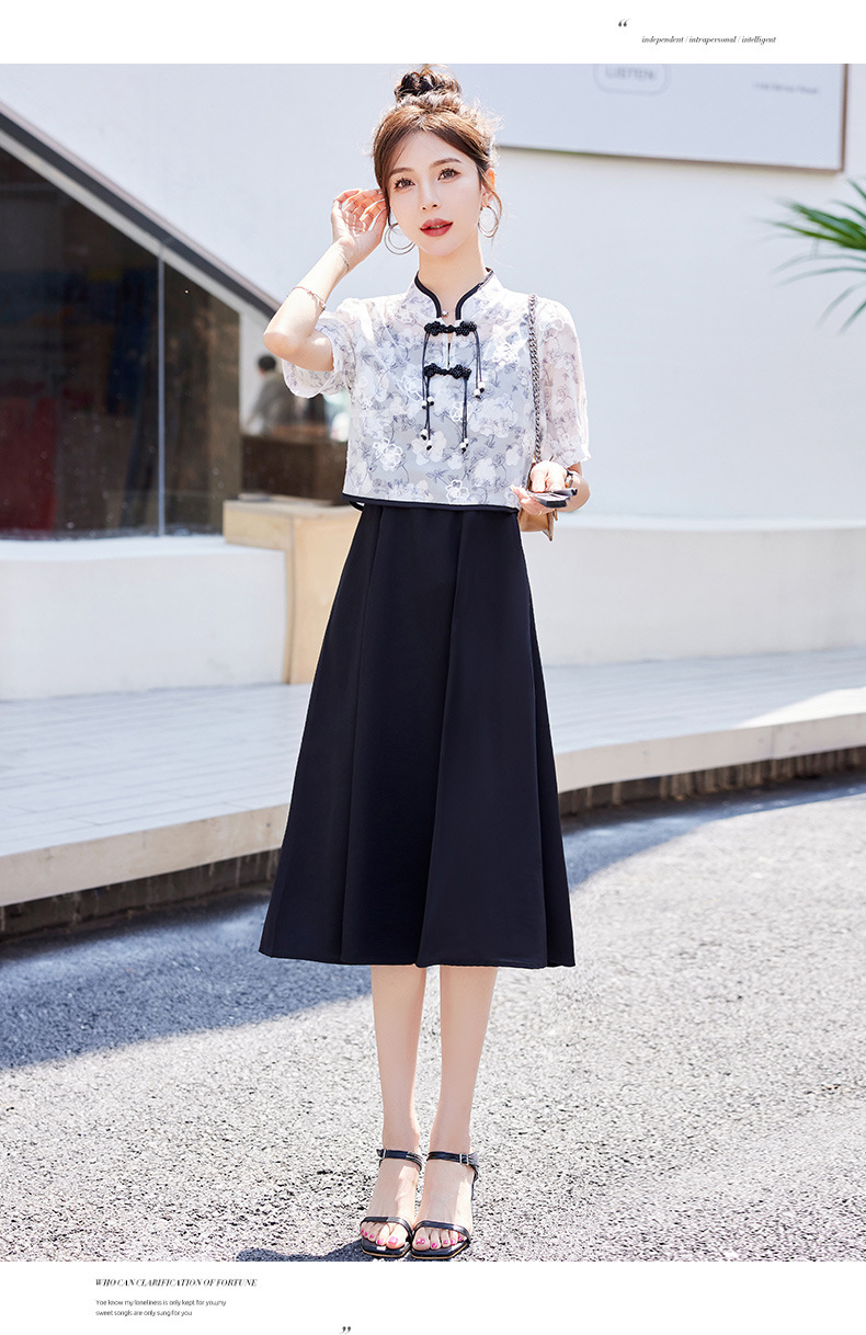 新中式复古民族风,小洋装旗袍改良连衣裙印花小衫夏上新两件套HR-WA232169