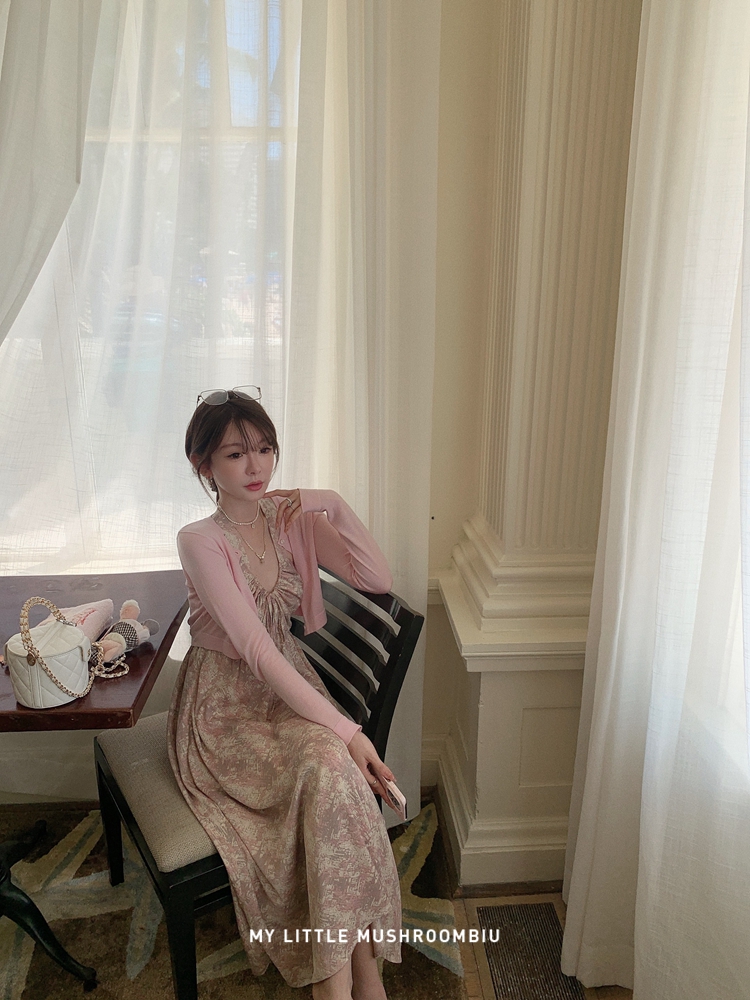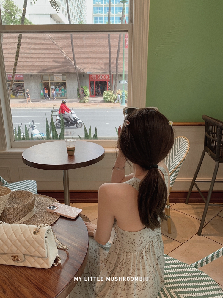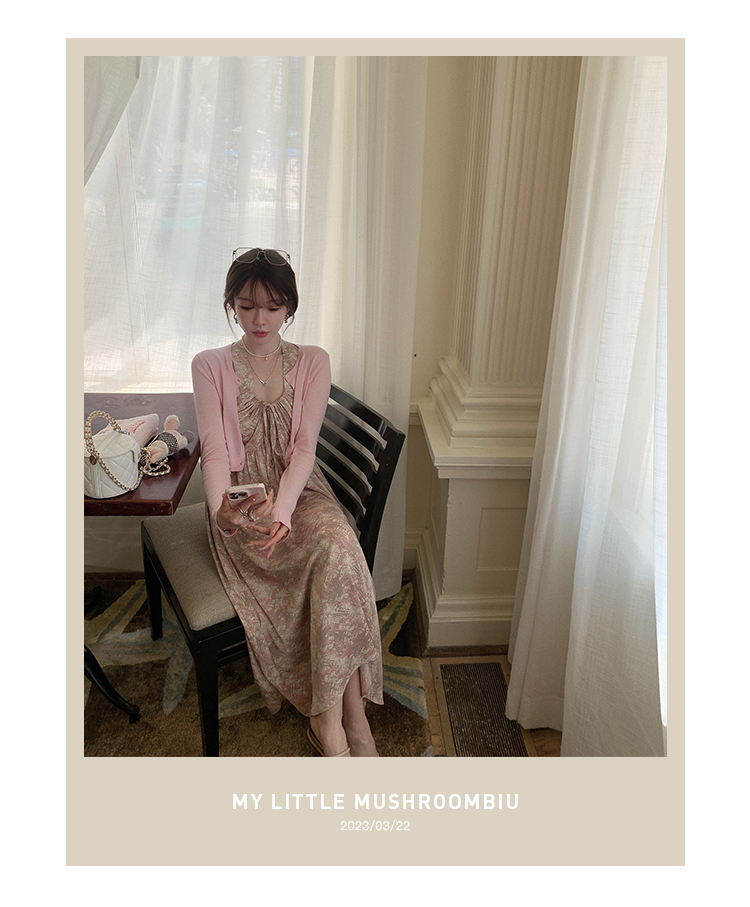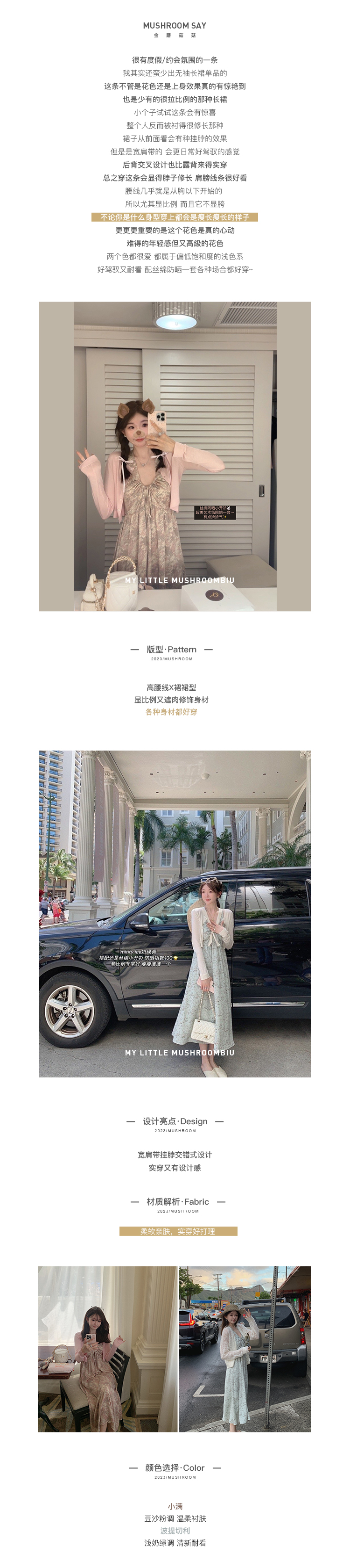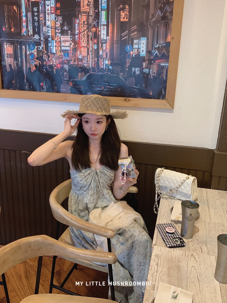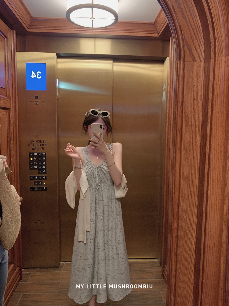 金蘑菇菇 夏花 艺术氛围碎花 / 无袖碎花裙纯欲风挂脖背带连衣裙