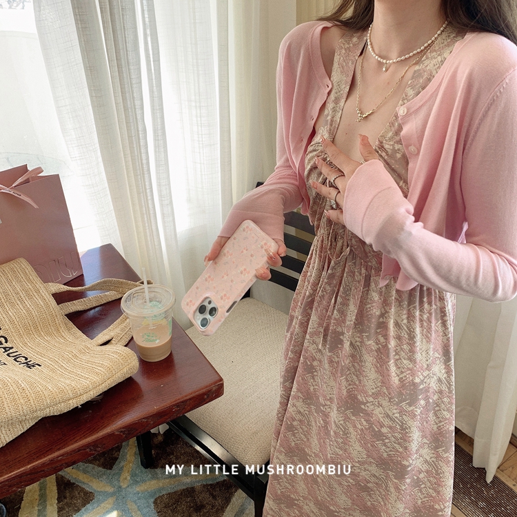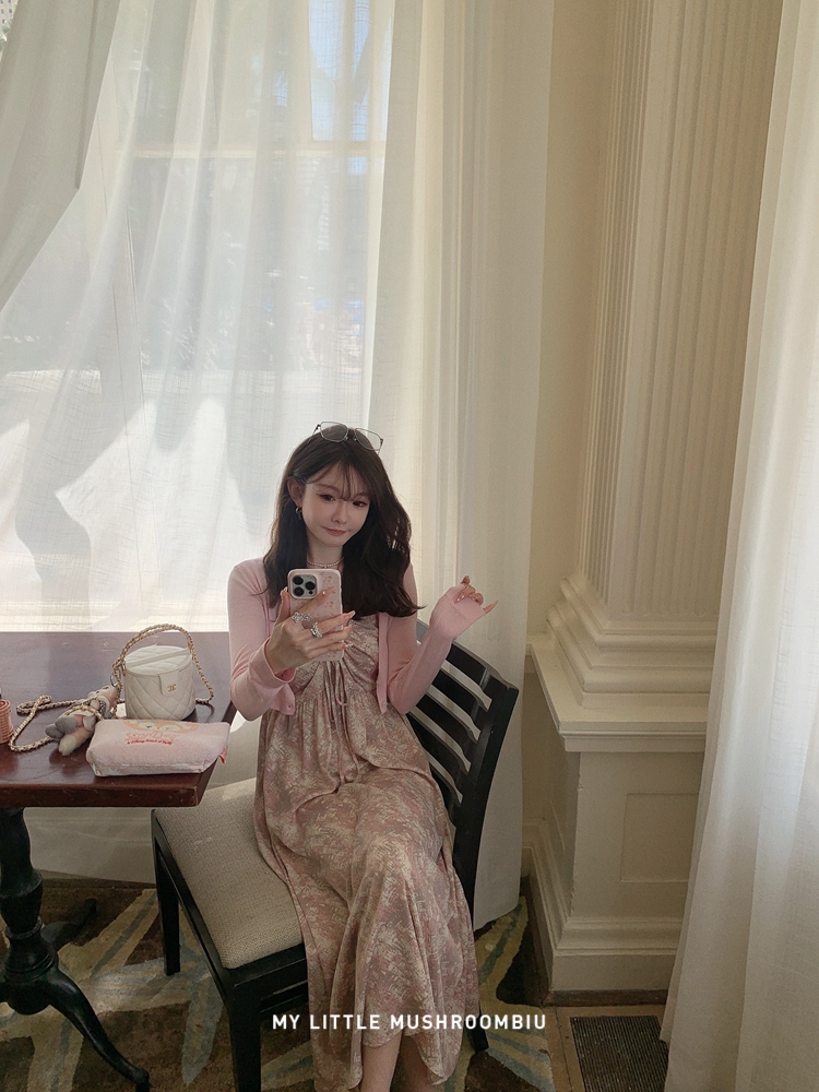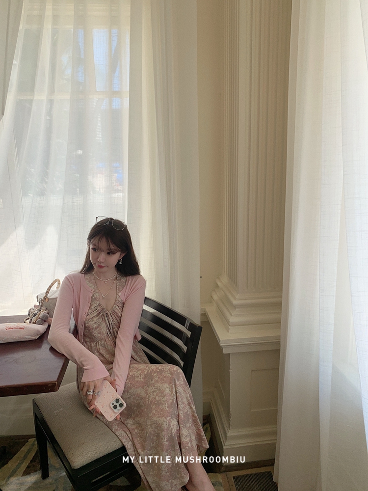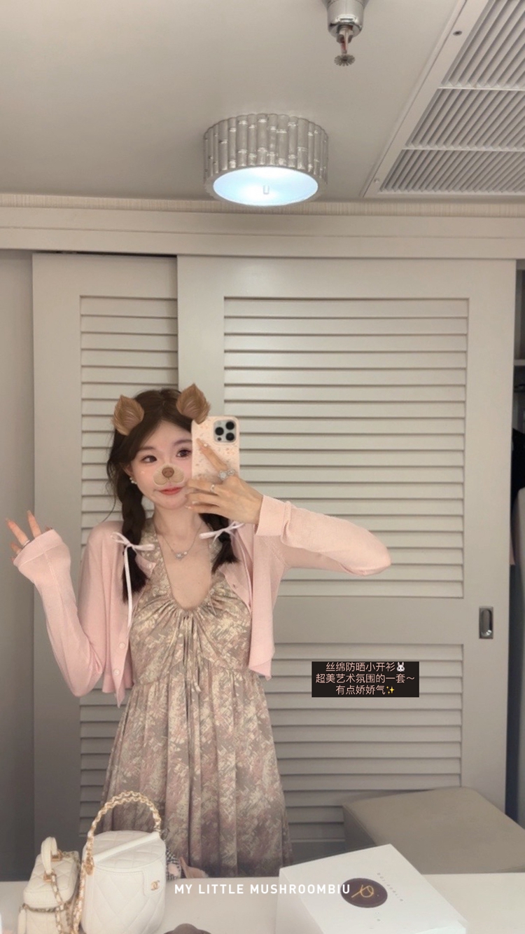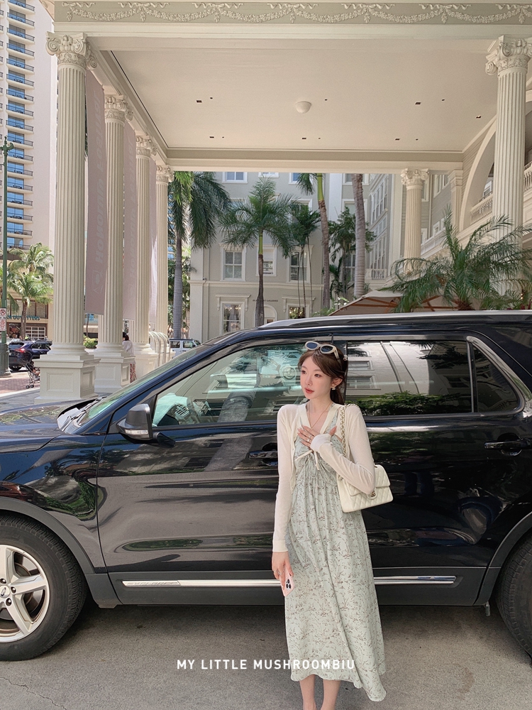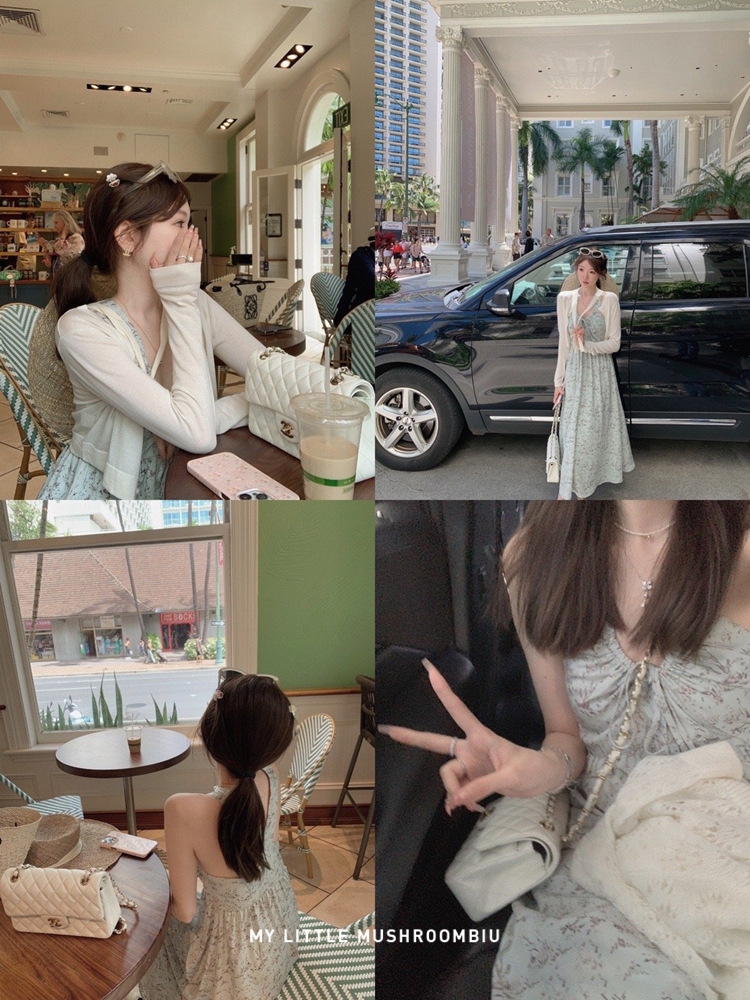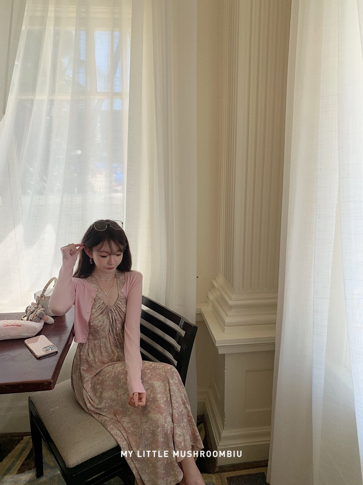 金蘑菇菇 夏花 艺术氛围碎花 / 无袖碎花裙纯欲风挂脖背带连衣裙