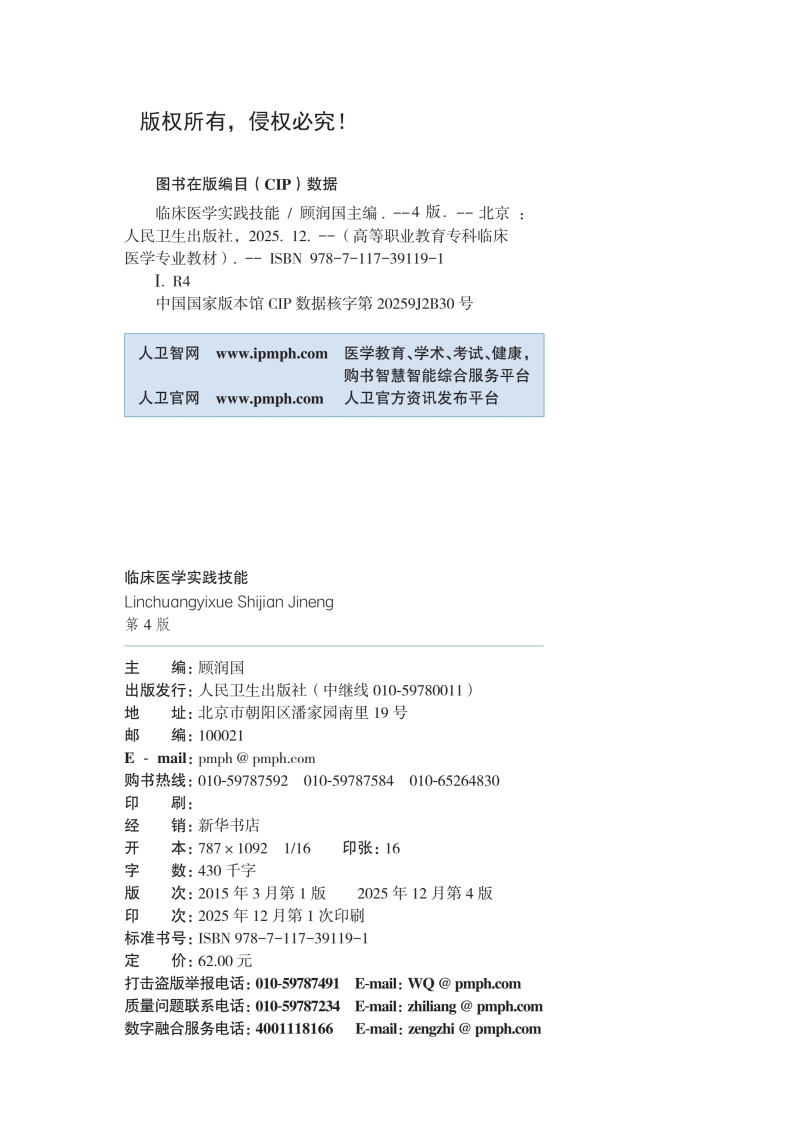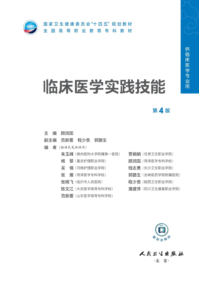 临床医学实践技能 第4四版 十四五规划教材全国高等职业教育专科教材 顾润国 主编 供临床医学专业用 9787117391191人民卫生出版社