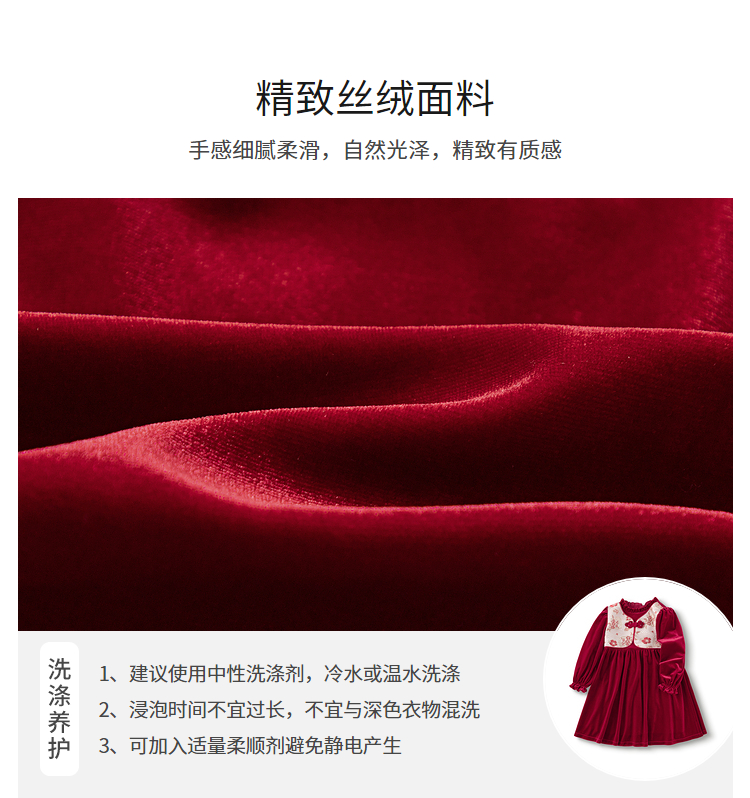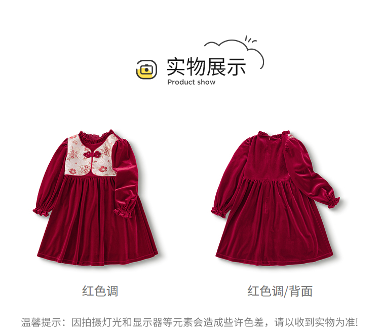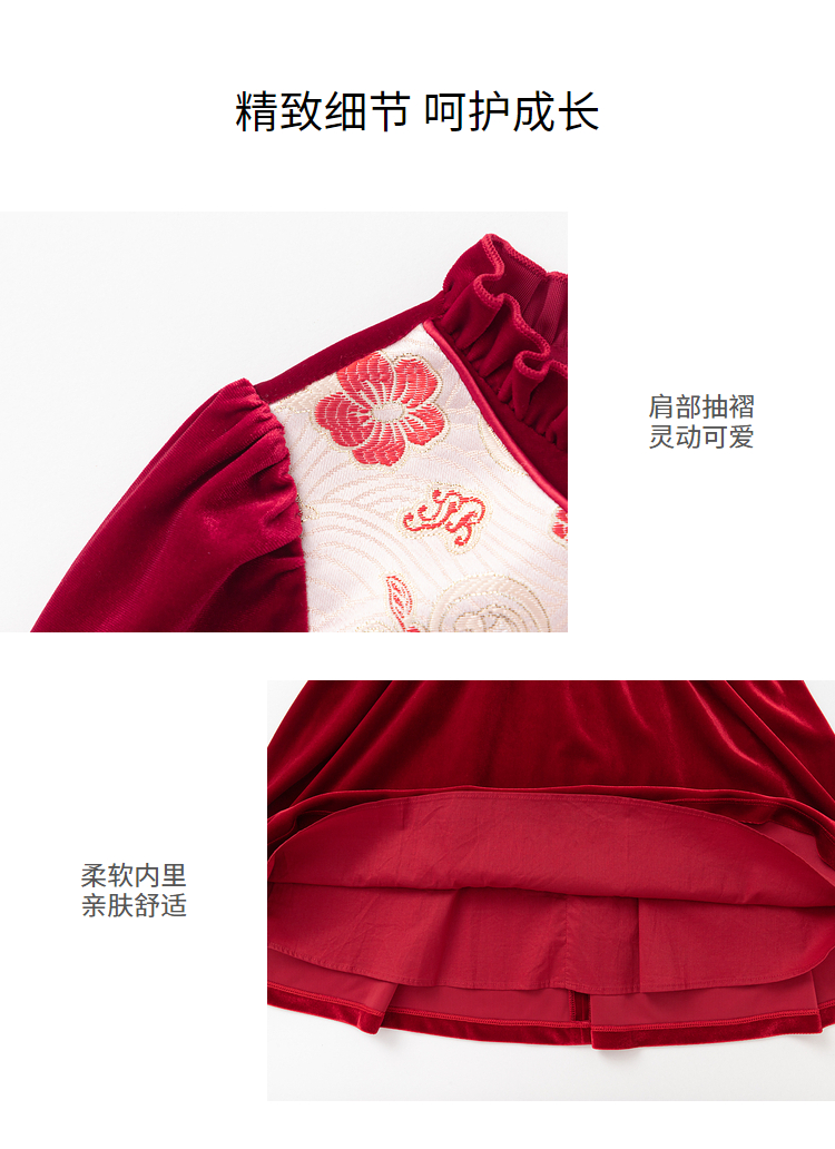 巴拉巴拉童装女童连衣裙丝绒裙子春秋国风裙洋气时尚盘扣精致潮
