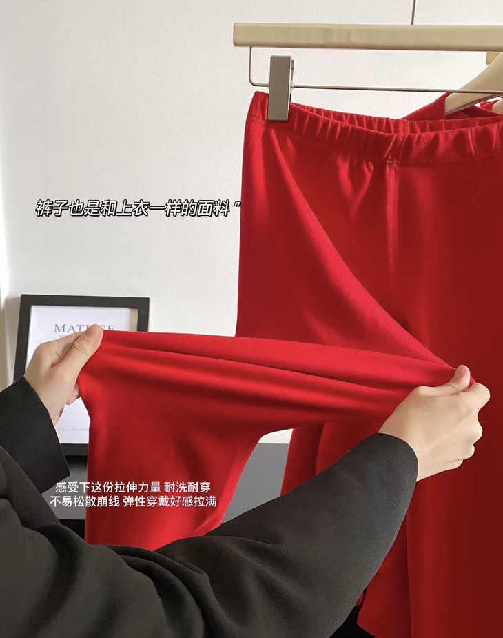 ✅面料实拍📸超级喜庆‼️🔥 【温馨提示】因光线和显示器因素可能会有色差,请以收到实物为准;尺码建议根据日常经验,未必适用所有人,请以实际上身效果为准。线头不属于质量问题,介意慎拍。