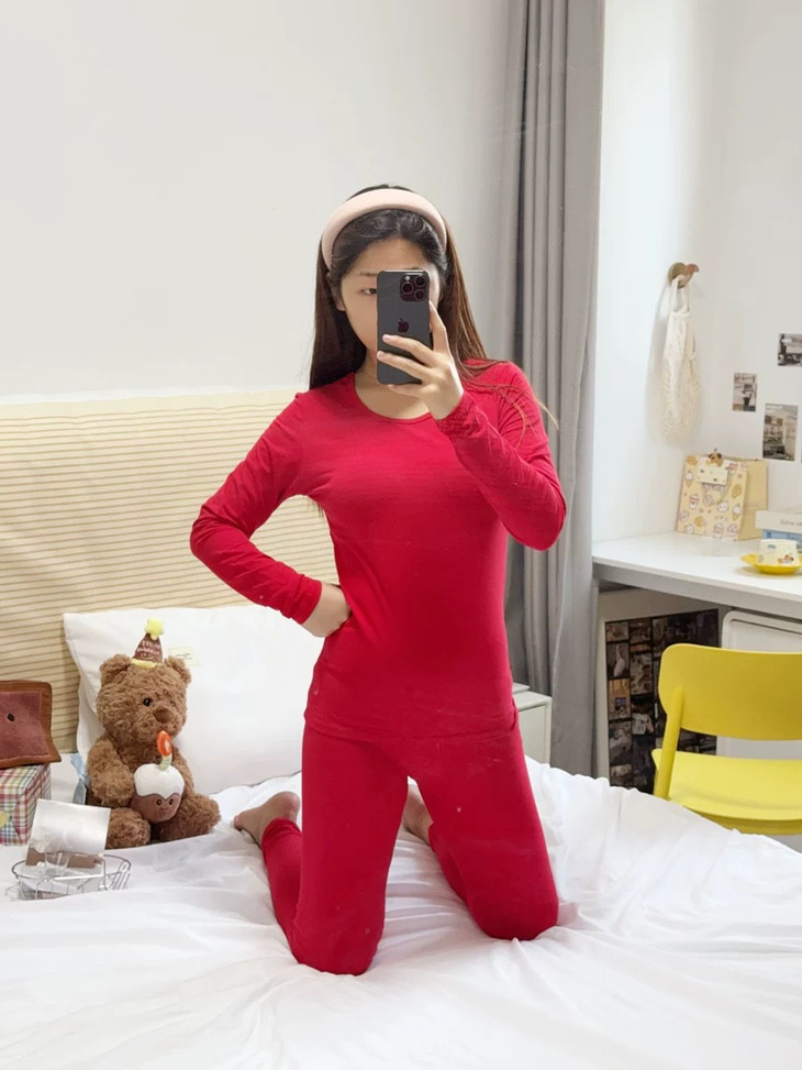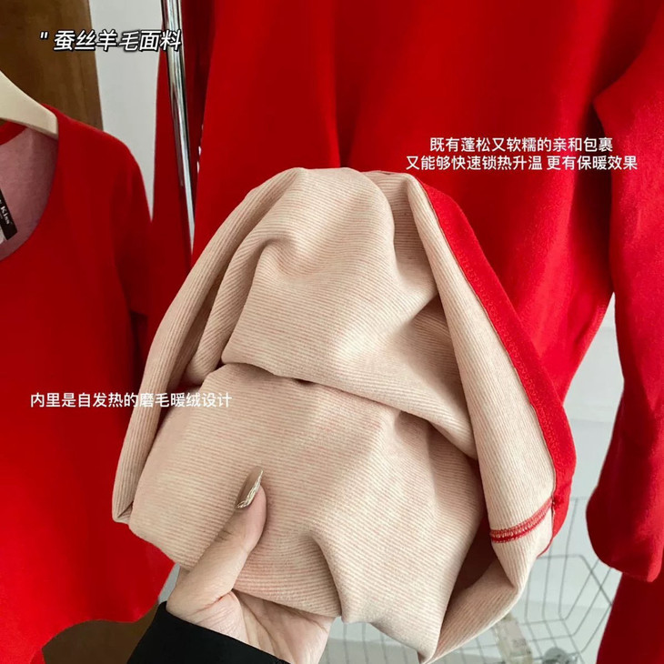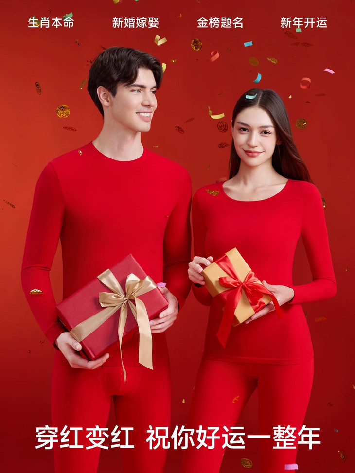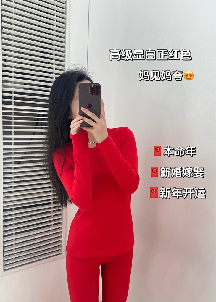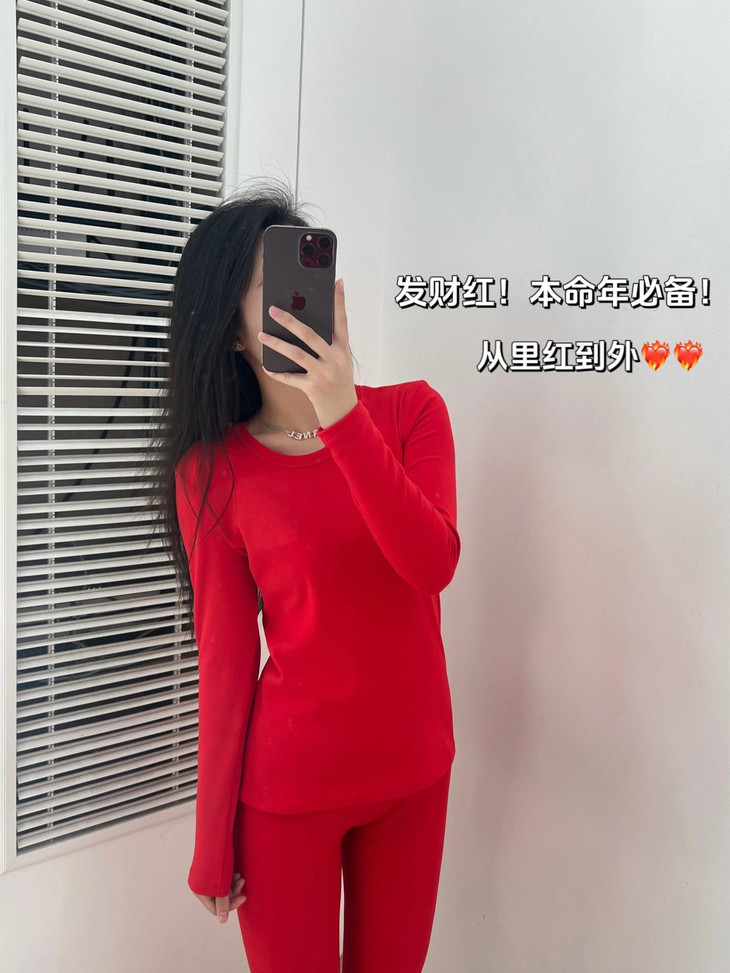 新的一年就要到啦 对于本命年的朋友们,一件红色可谓是应景又开运 但老一辈的人总说:“身要暖,福才来” 所以我们即便要红,更要暖~ ✅新年将至,给大家推荐一款 ✅穿上红红火火过新年的红保暖套装