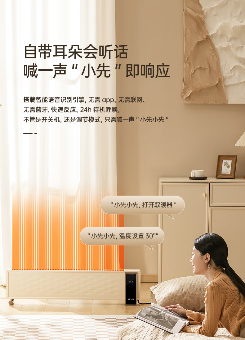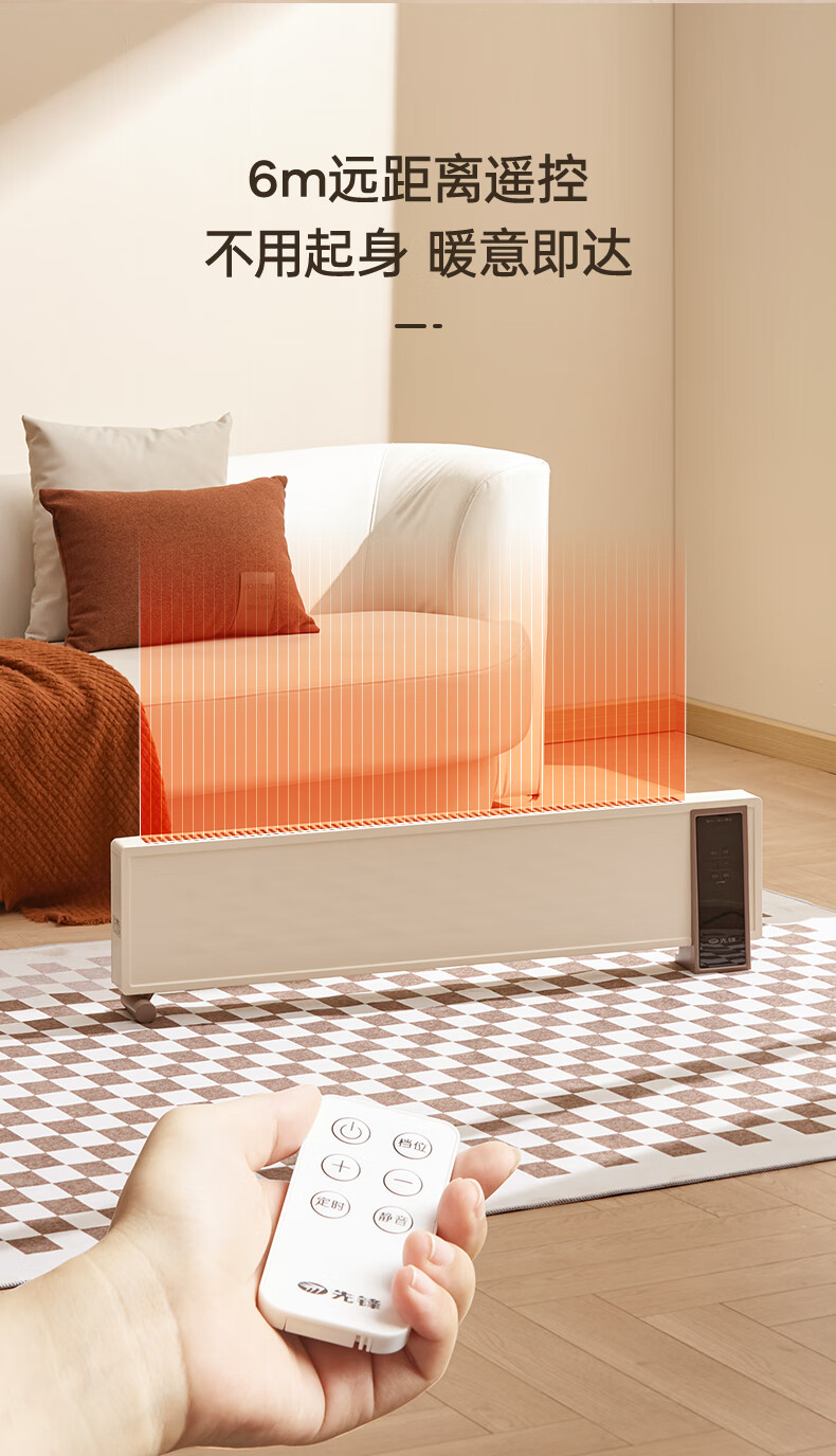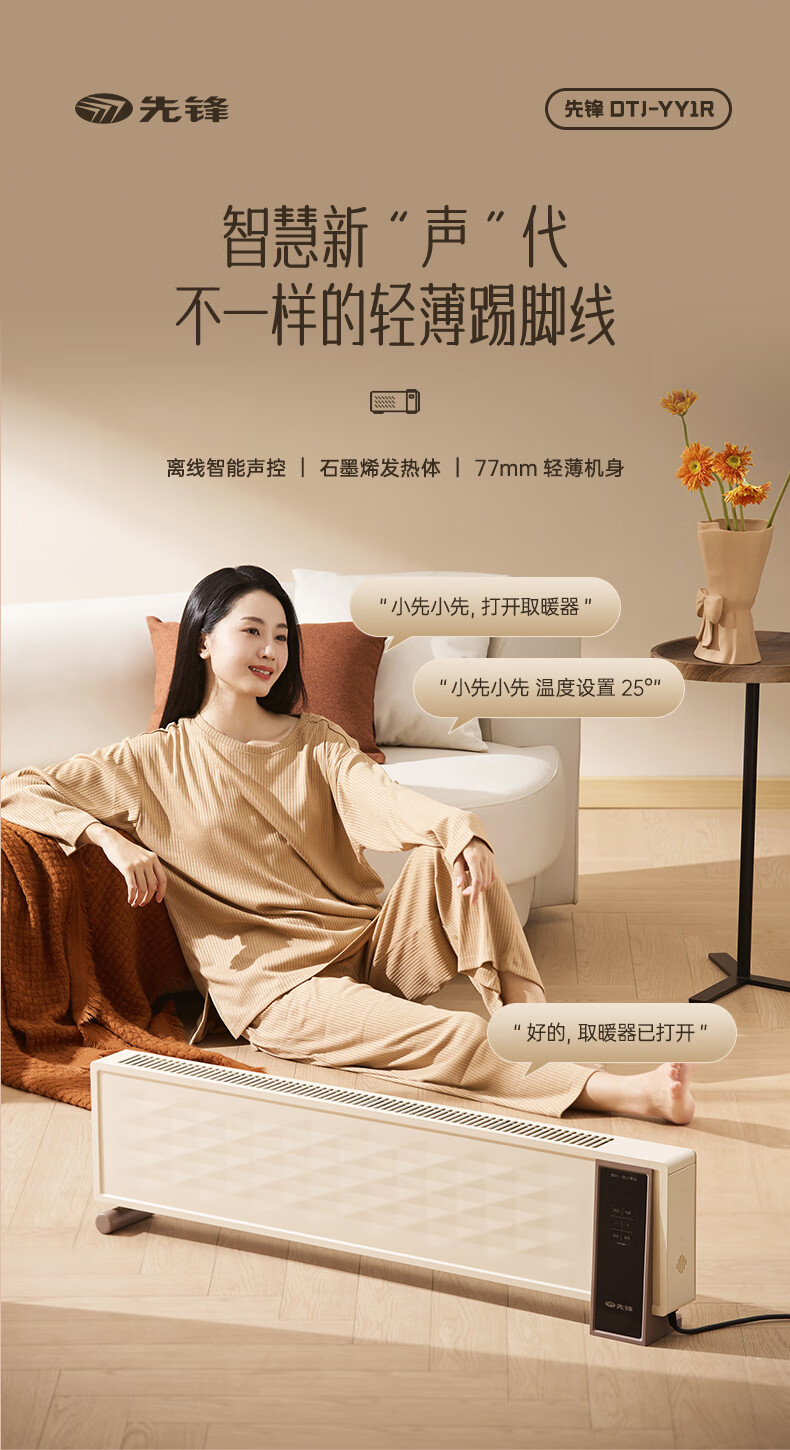 先锋(SINGFUN)石墨烯踢脚线取暖器家用电暖器电暖气片大面积电暖风办公室浴室防水恒温加热器室内移动地暖脚神器 【石墨烯语音款】DTJ-YY1R