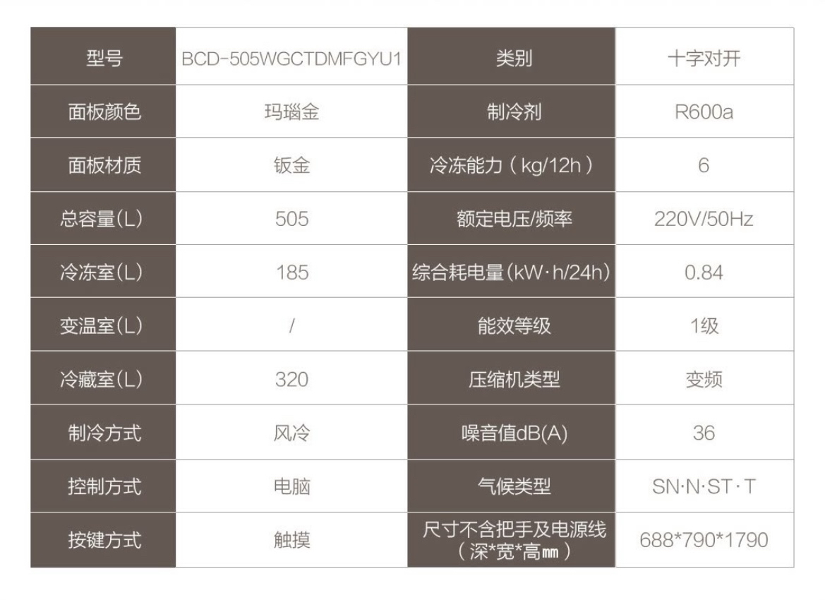 卡萨帝(Casarte)冰箱BCD-505WGCTDMFGYU1