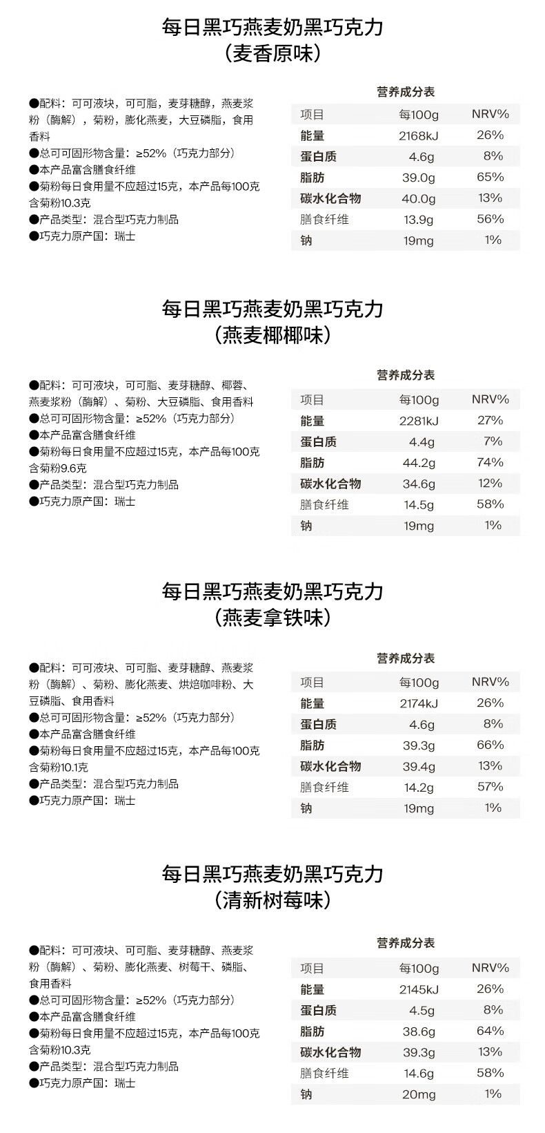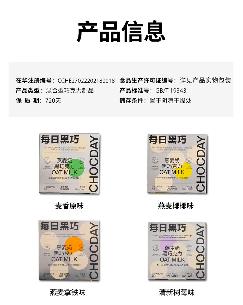 每日黑巧燕麦奶黑巧麦香原味30g