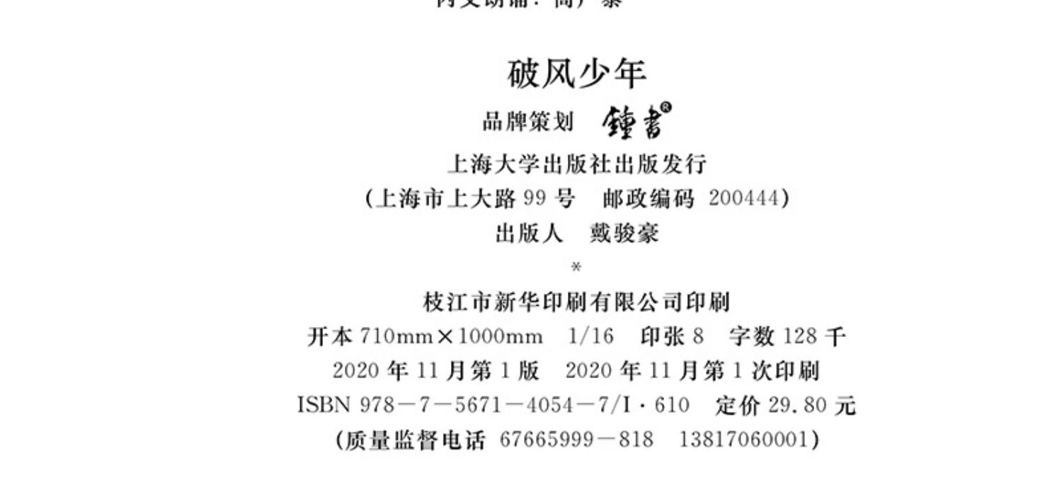 破风少年 许诺晨著 乘风吧,少年!fb上海大学出版社
