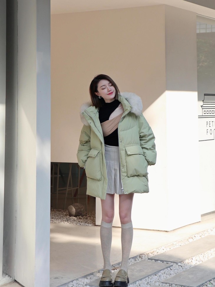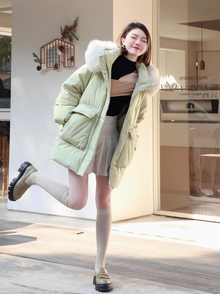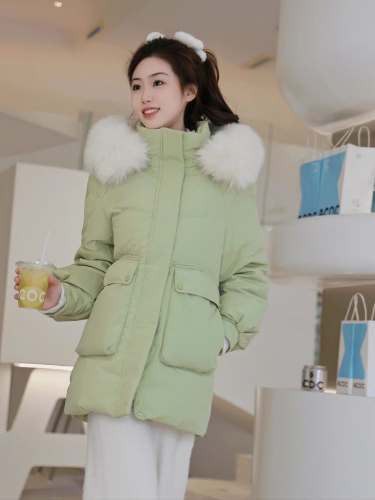 ✅绿色 很清新、很洋气 属于比较会穿搭的姐妹们入手的颜色 “高级、气质、洋气”非她莫属🤎 聪明的小仙女🧚早早地备好了羽绒服! 搭配卫裤直筒裤,绝美! 今年可以不穿黑色啦~ ⚠️模特图毛领仅供搭配参考,以实物为准
