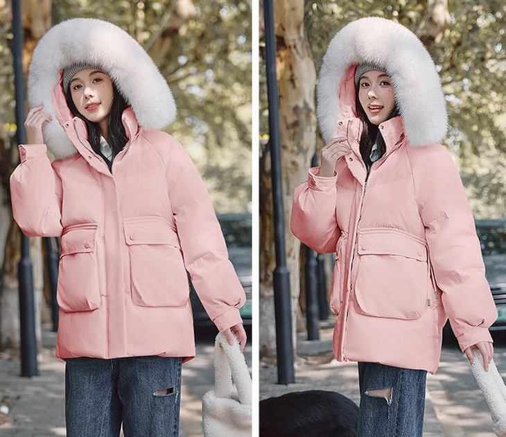 ✅粉色 随便简单一搭就会很好看~ 穿上身瞬间温暖舒适感包围 长度在大腿处 不压身高,小个子也适合 让你就像时刻披着一条羽绒被 给你360°的暖意呵护~ ⚠️模特图毛领仅供搭配参考,以实物为准