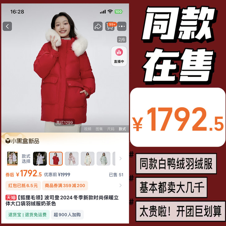宝子们,敲黑板啦❗️怕冷星人的必入款 2025年最重磅的新款羽绒服它来了 能给你一整个冬天安全感的大毛领羽绒服 主打一个高端!保暖!绝高性价比!! 别人舍不得花血本做的品质 我们来安排! 网店1799➕同渠跟单 见过好的绝不会做差的! ⚠️感超细腻面料+顶尖白鸭绒‼️ 从一开始的定制到现在耗时一个多月 从面料 版型 羽绒 都做到了行业顶尖水平‼️ ⚠️模特图毛领仅供搭配参考,以实物为准