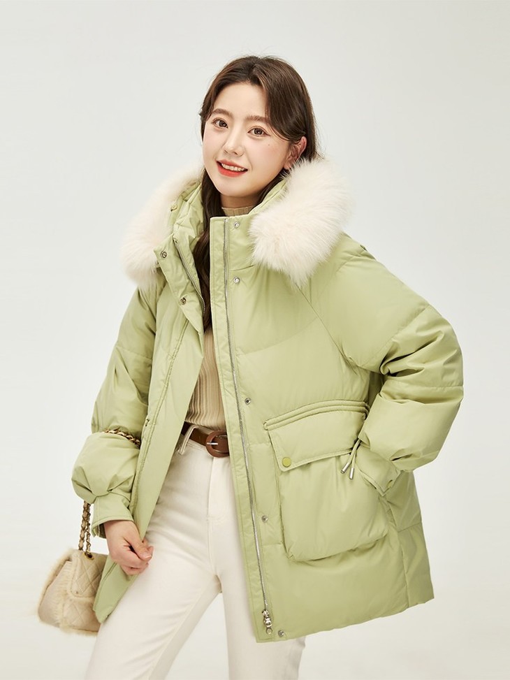 AUChris韩系简约环保大毛领连帽羽绒服ACXC9015