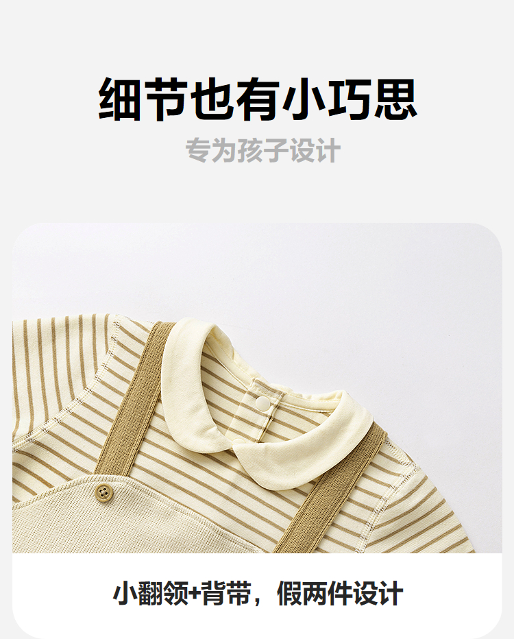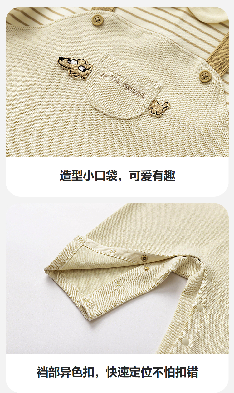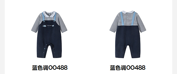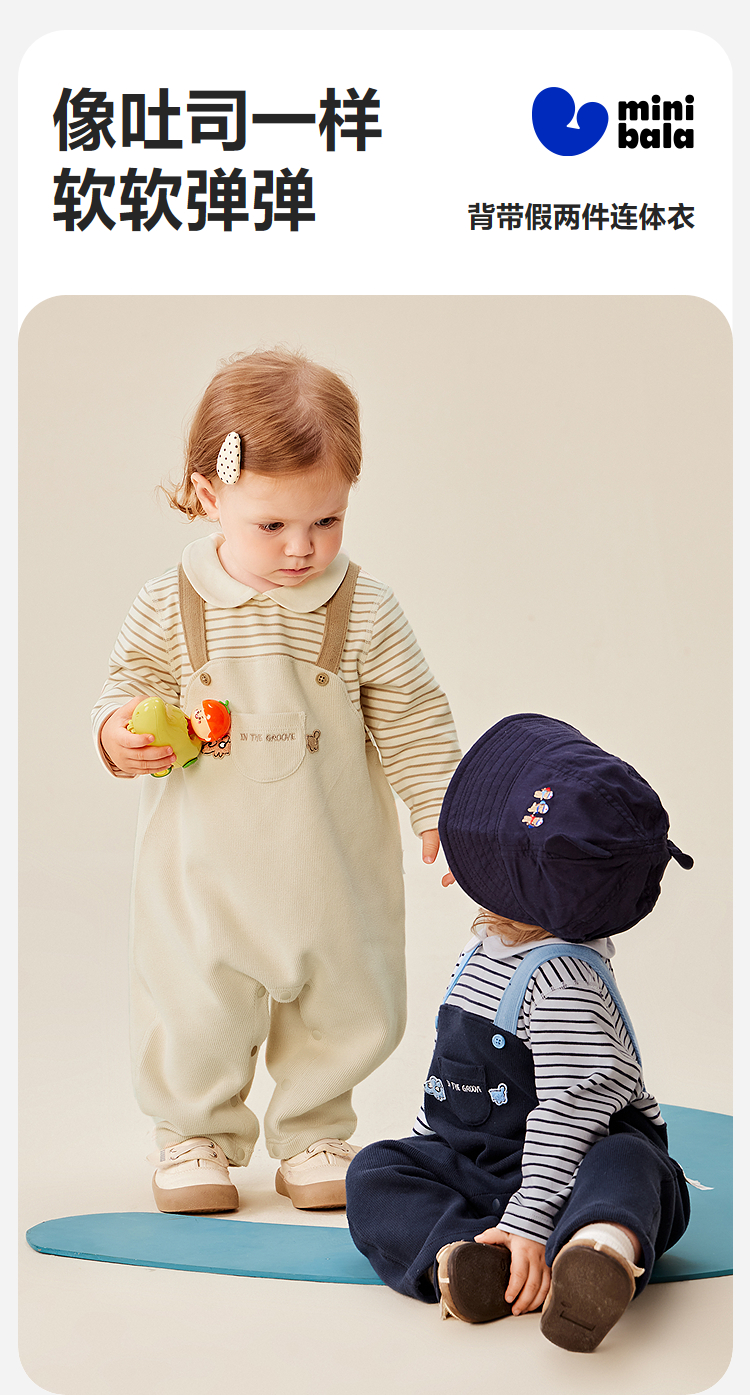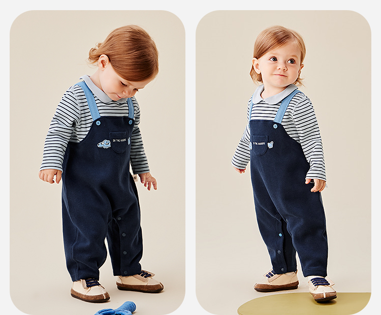 迷你巴拉婴幼儿连体衣条纹背带假两件可外穿宝宝衣服秋季新款