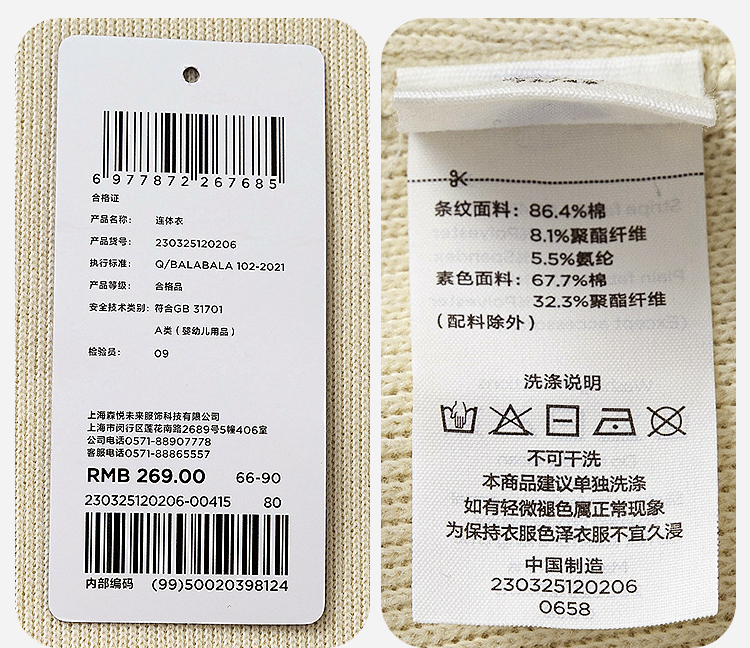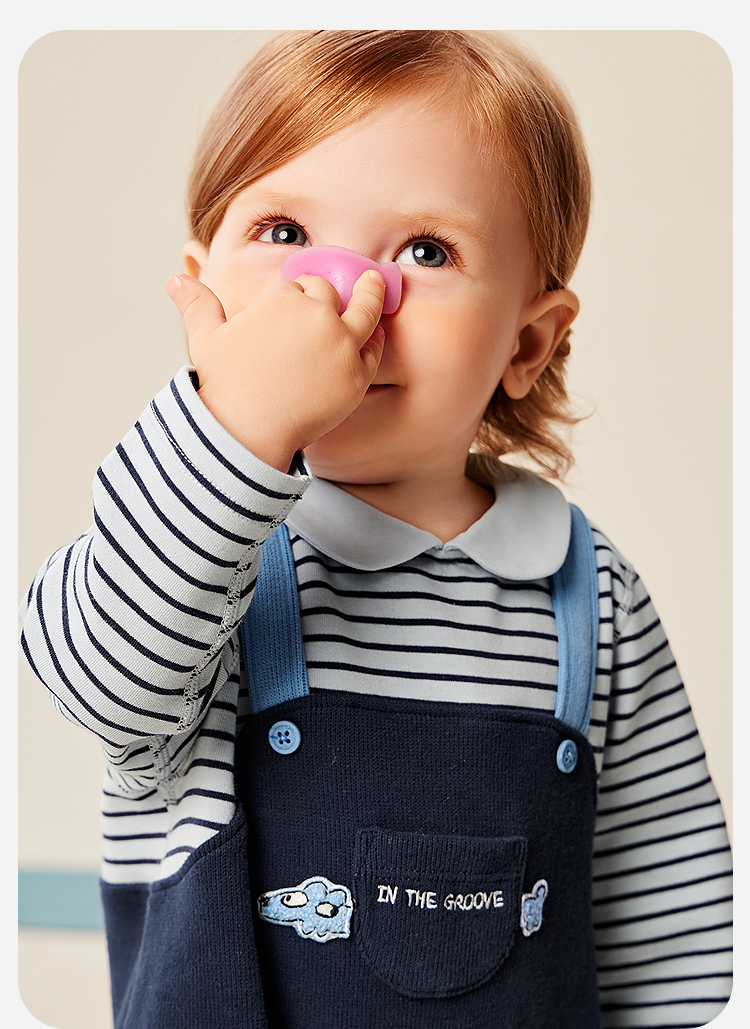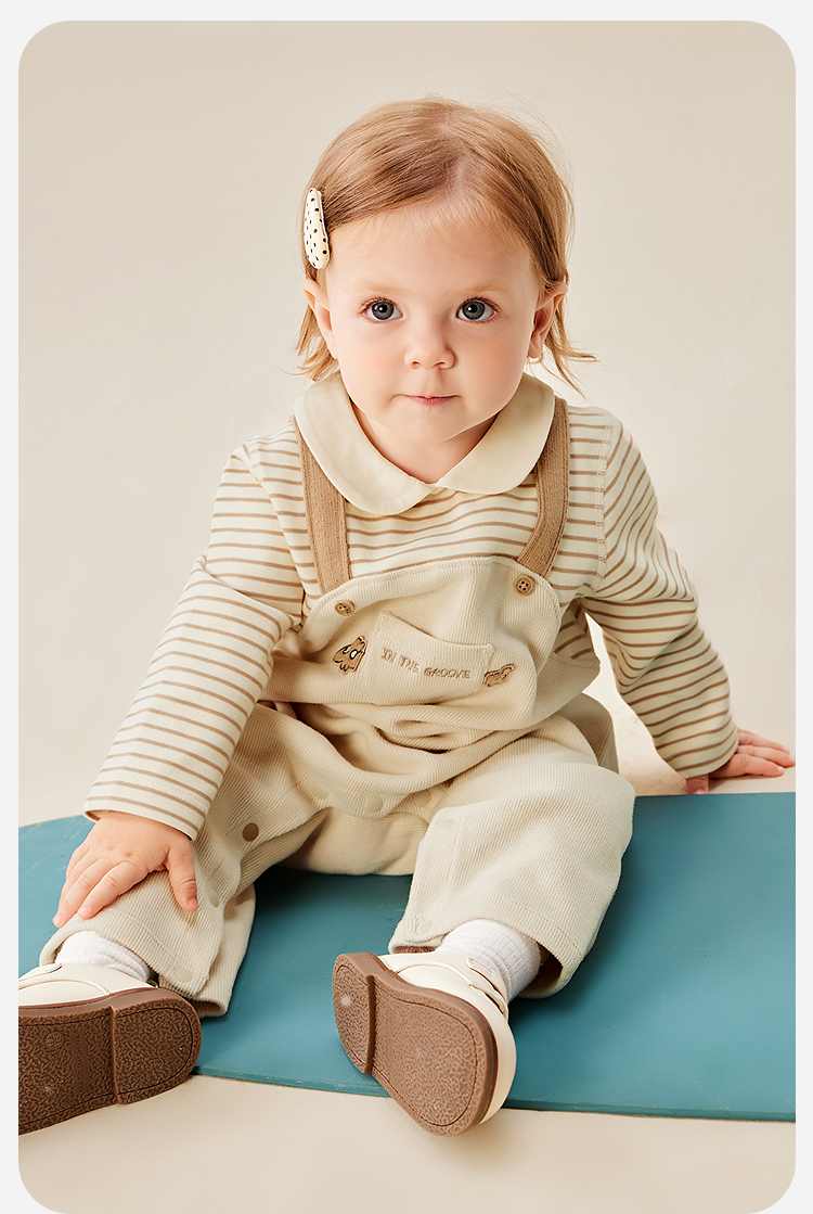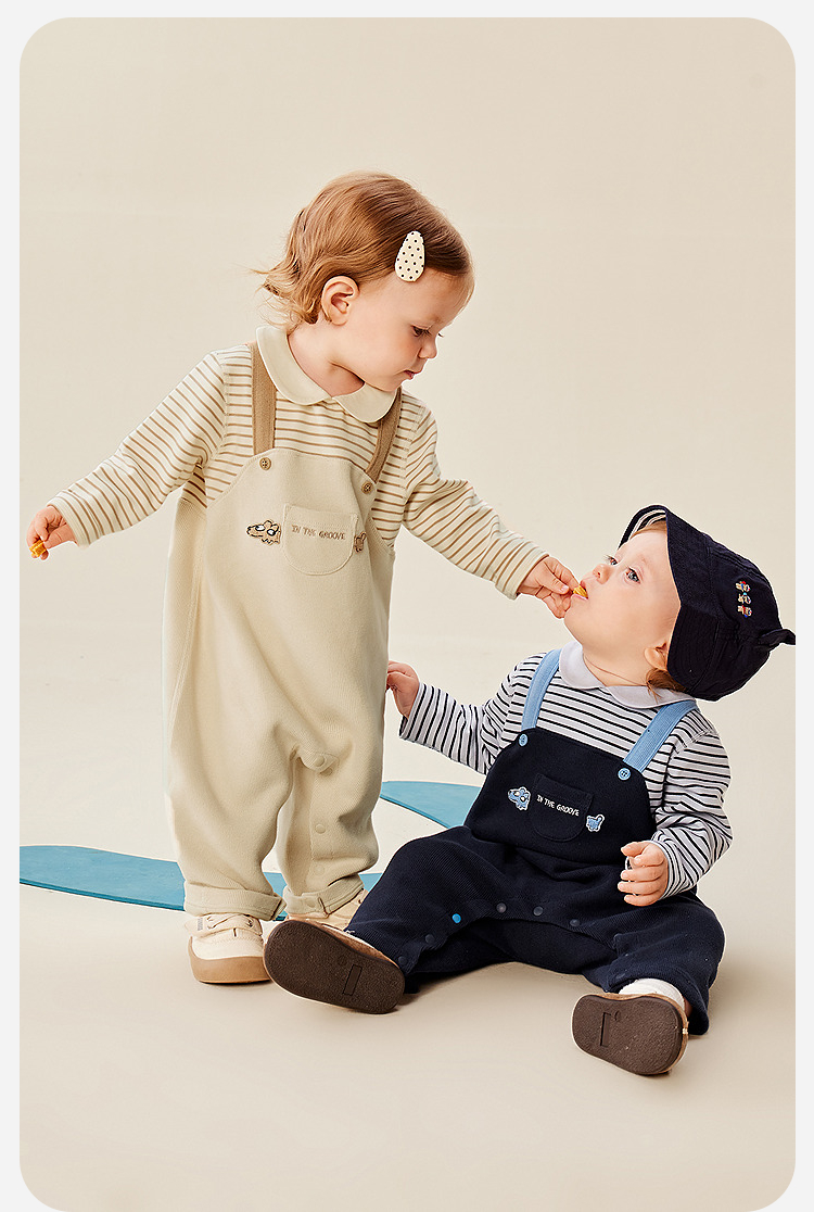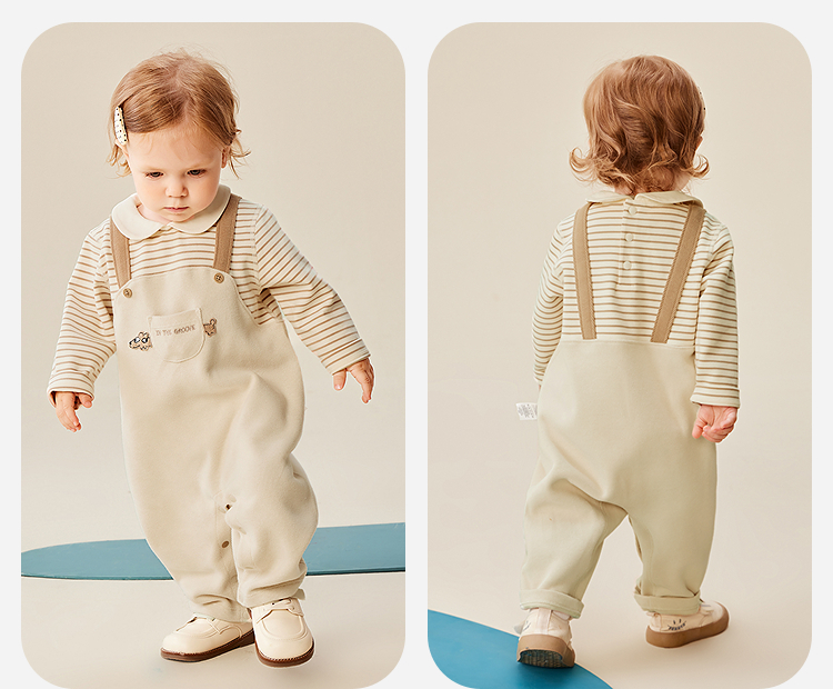迷你巴拉婴幼儿连体衣条纹背带假两件可外穿宝宝衣服秋季新款