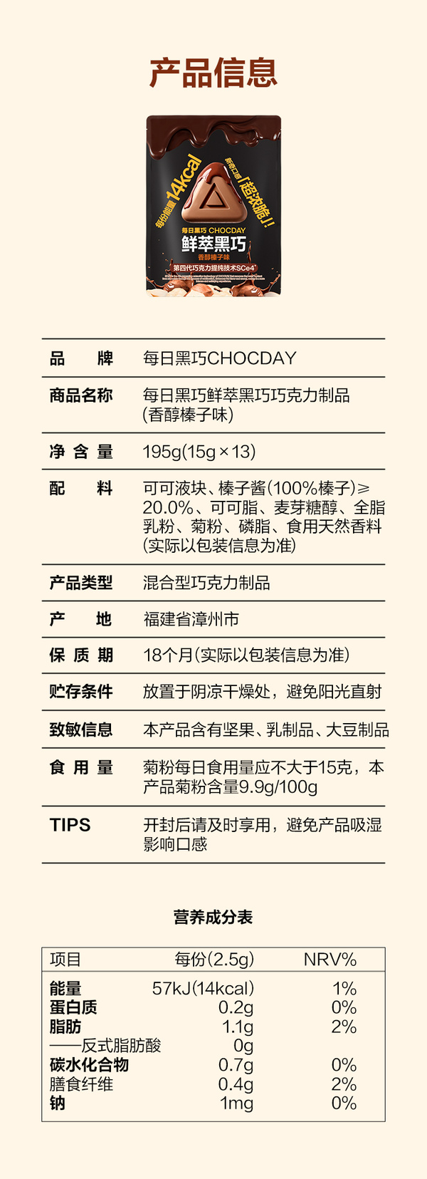 【自提】M每日黑巧鲜萃黑巧克力制品(香醇榛子味)195g(15g*13)