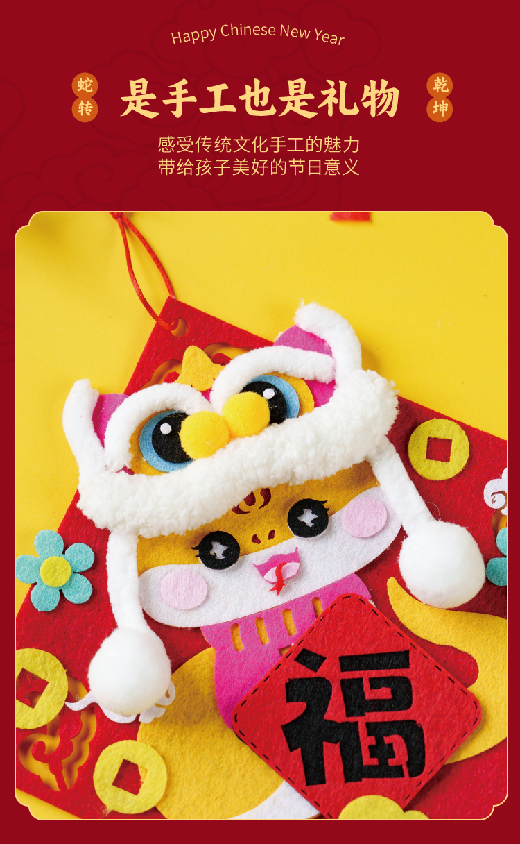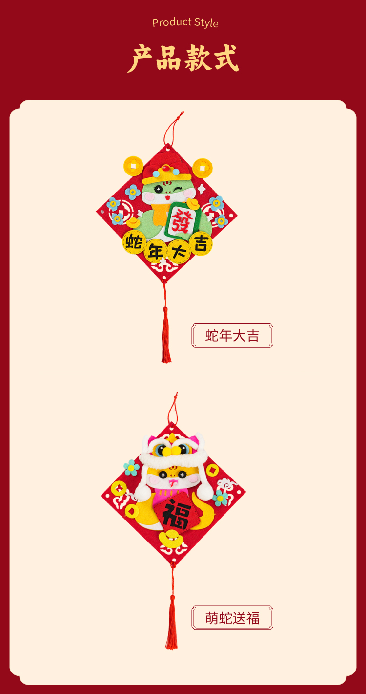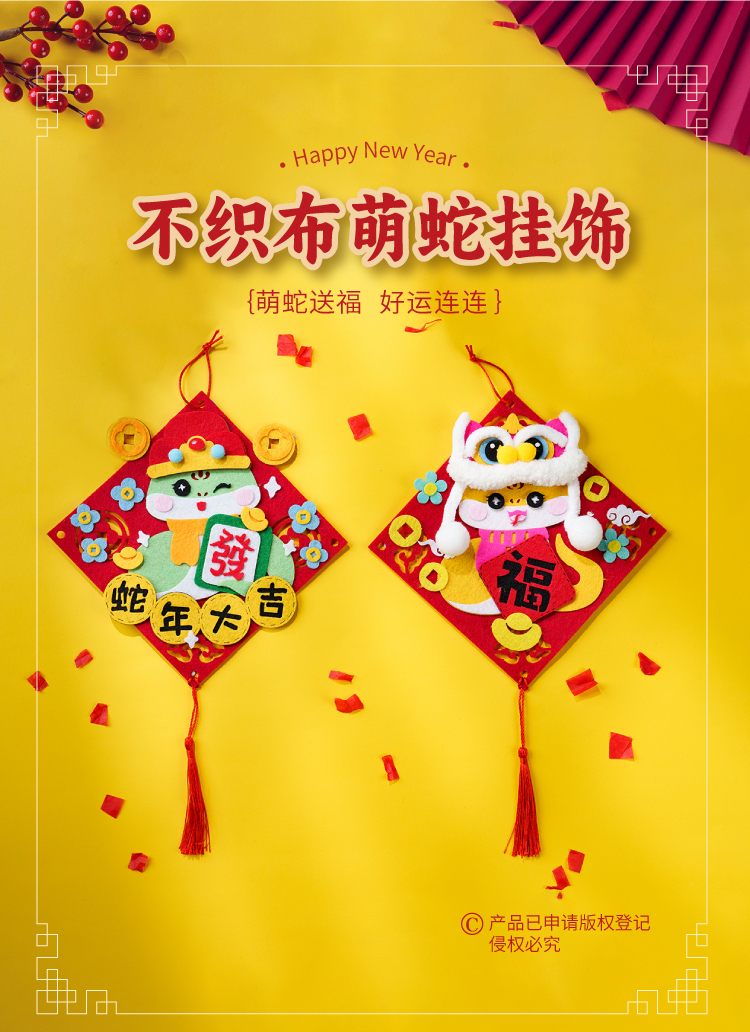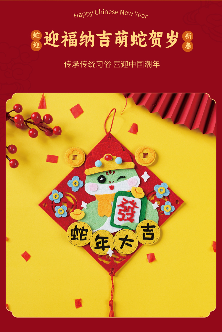 元旦春节蛇年新年不织布萌蛇挂饰儿童手工diy装饰幼儿园制作材料