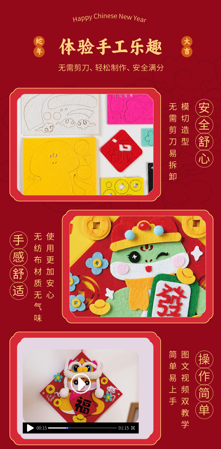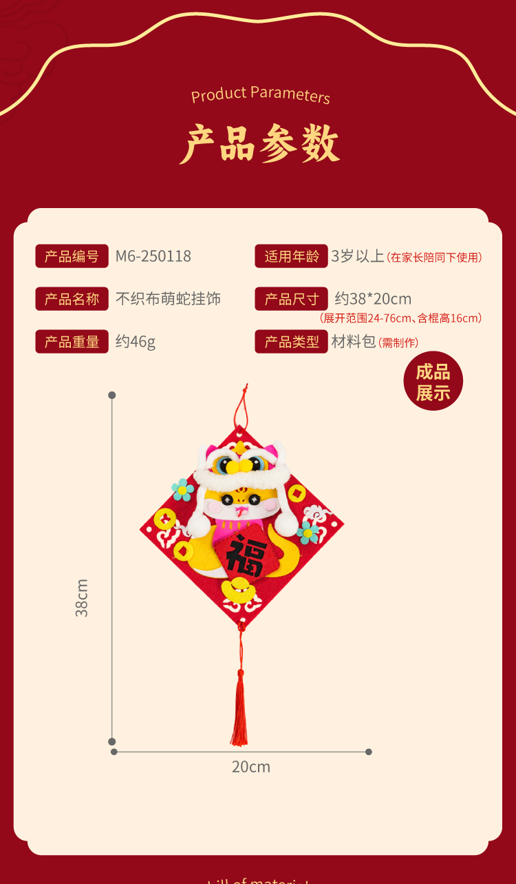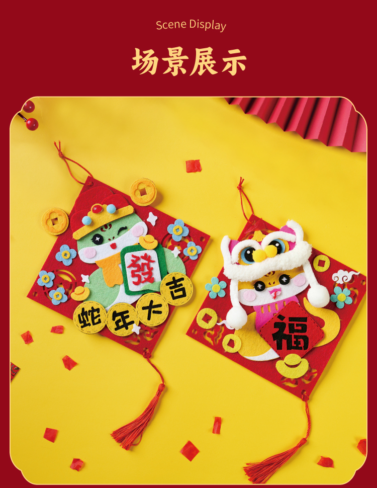 元旦春节蛇年新年不织布萌蛇挂饰儿童手工diy装饰幼儿园制作材料