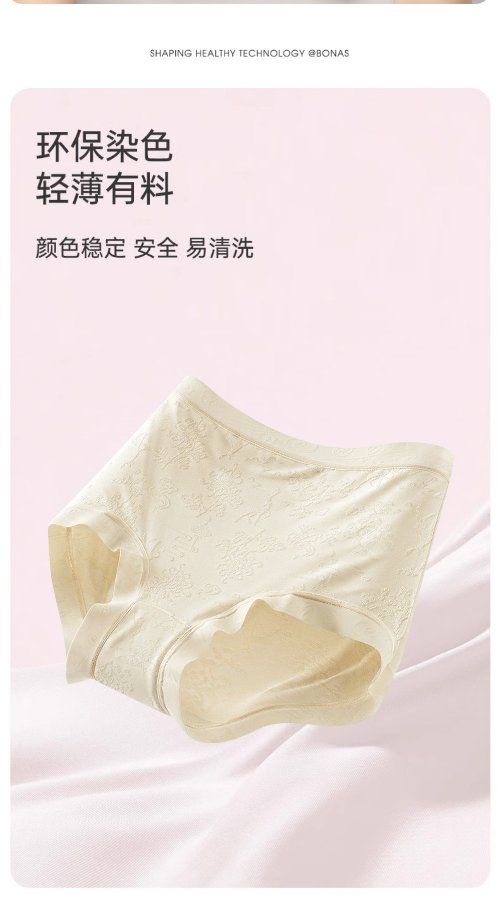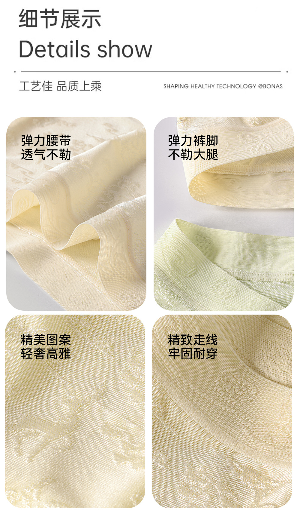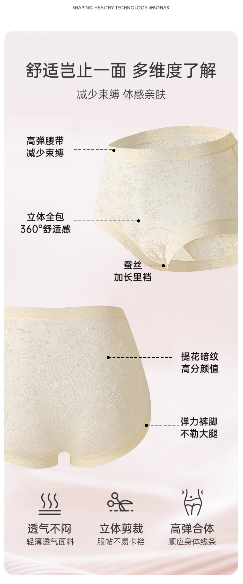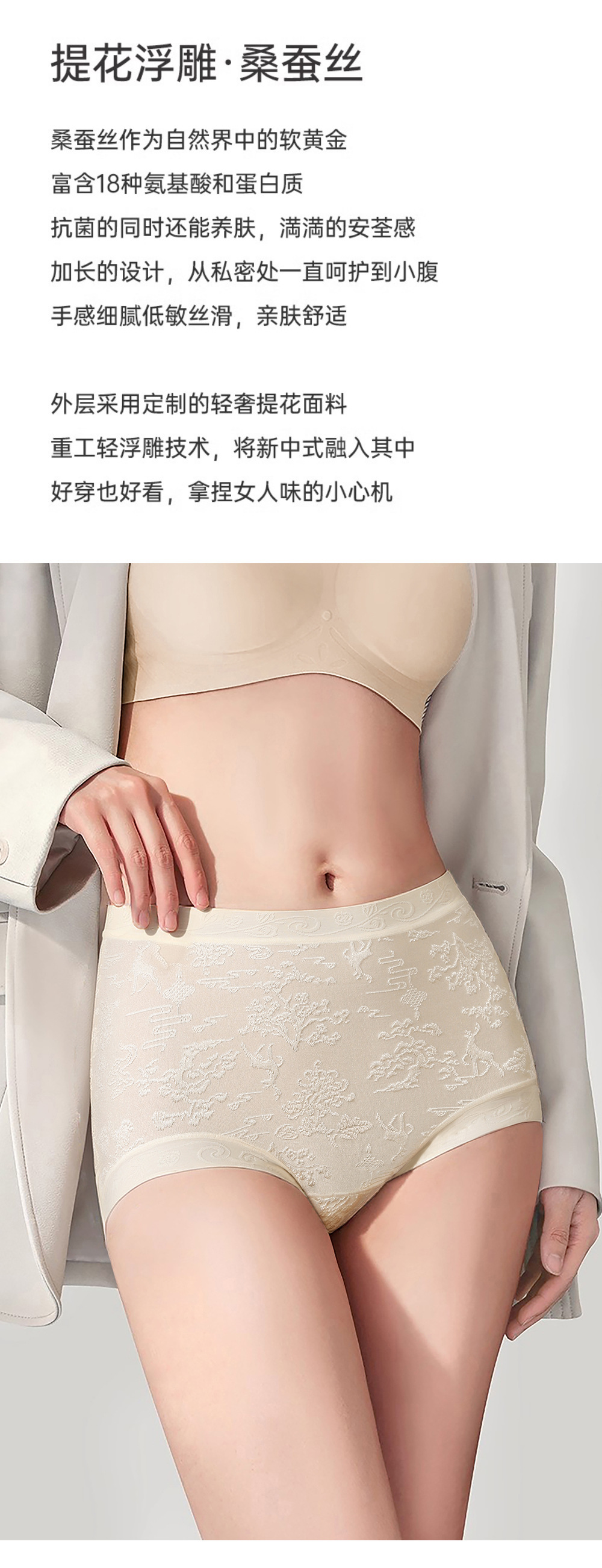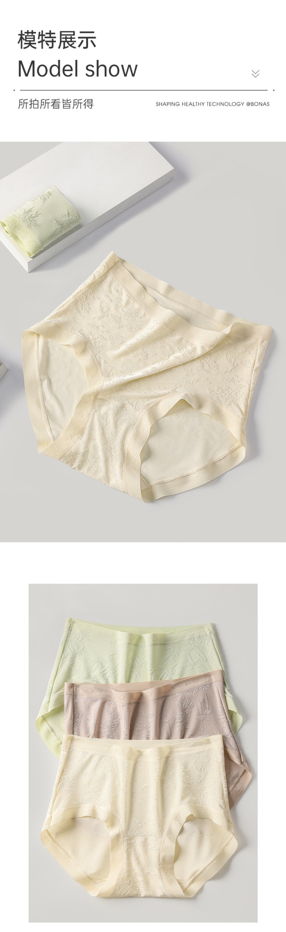 【49元3条】宝娜斯轻奢浮雕提花桑蚕丝抑菌裆内裤 轻薄透气中腰冰丝凉感内裤