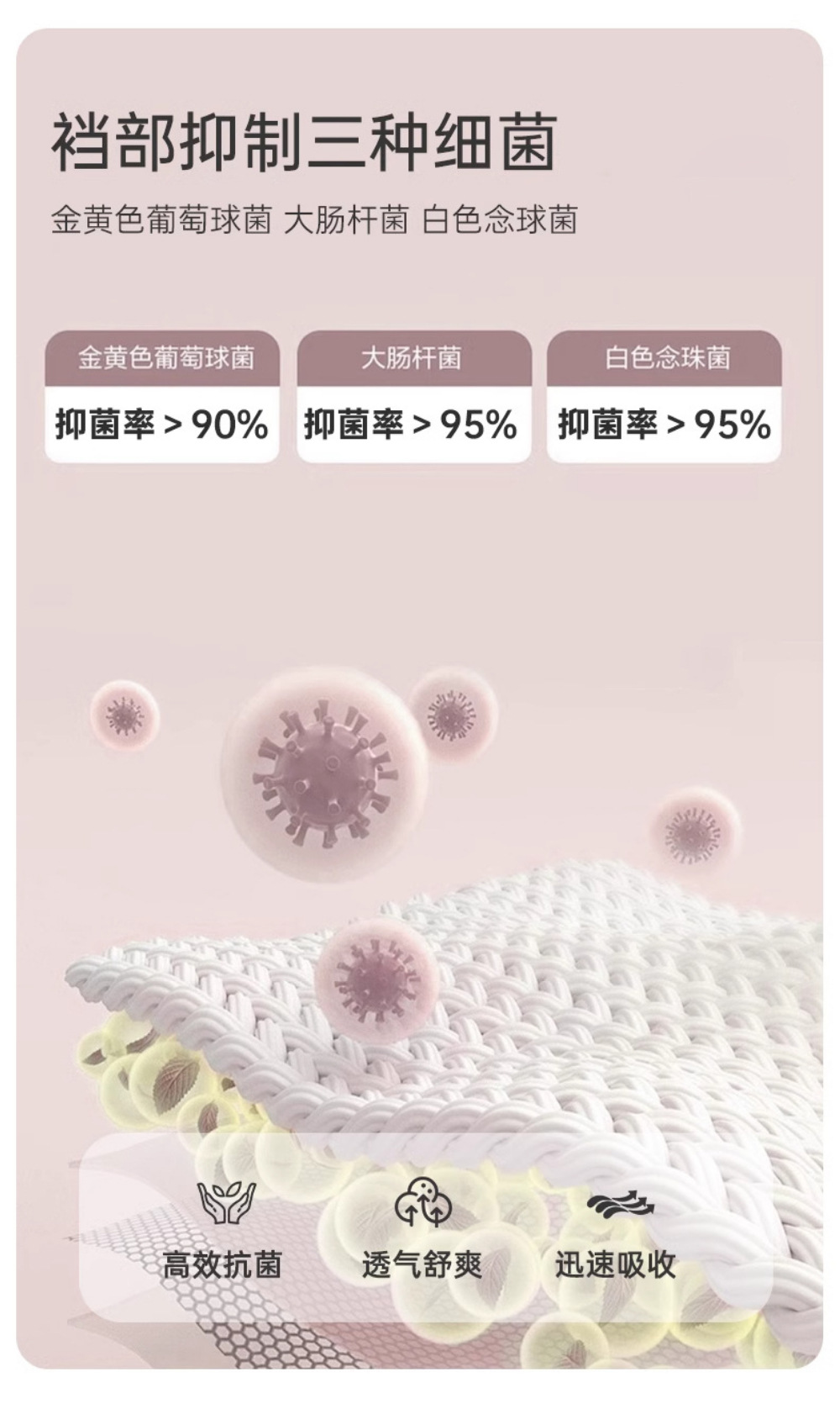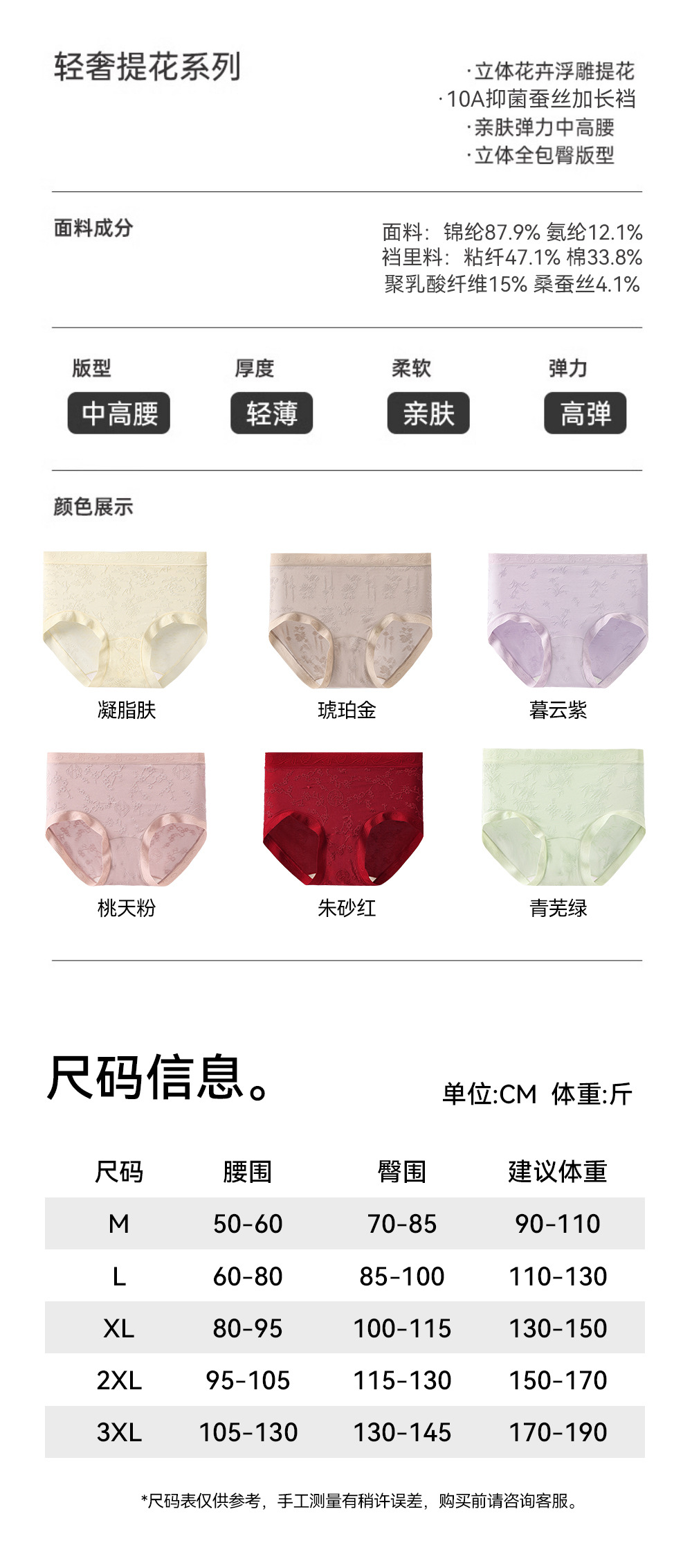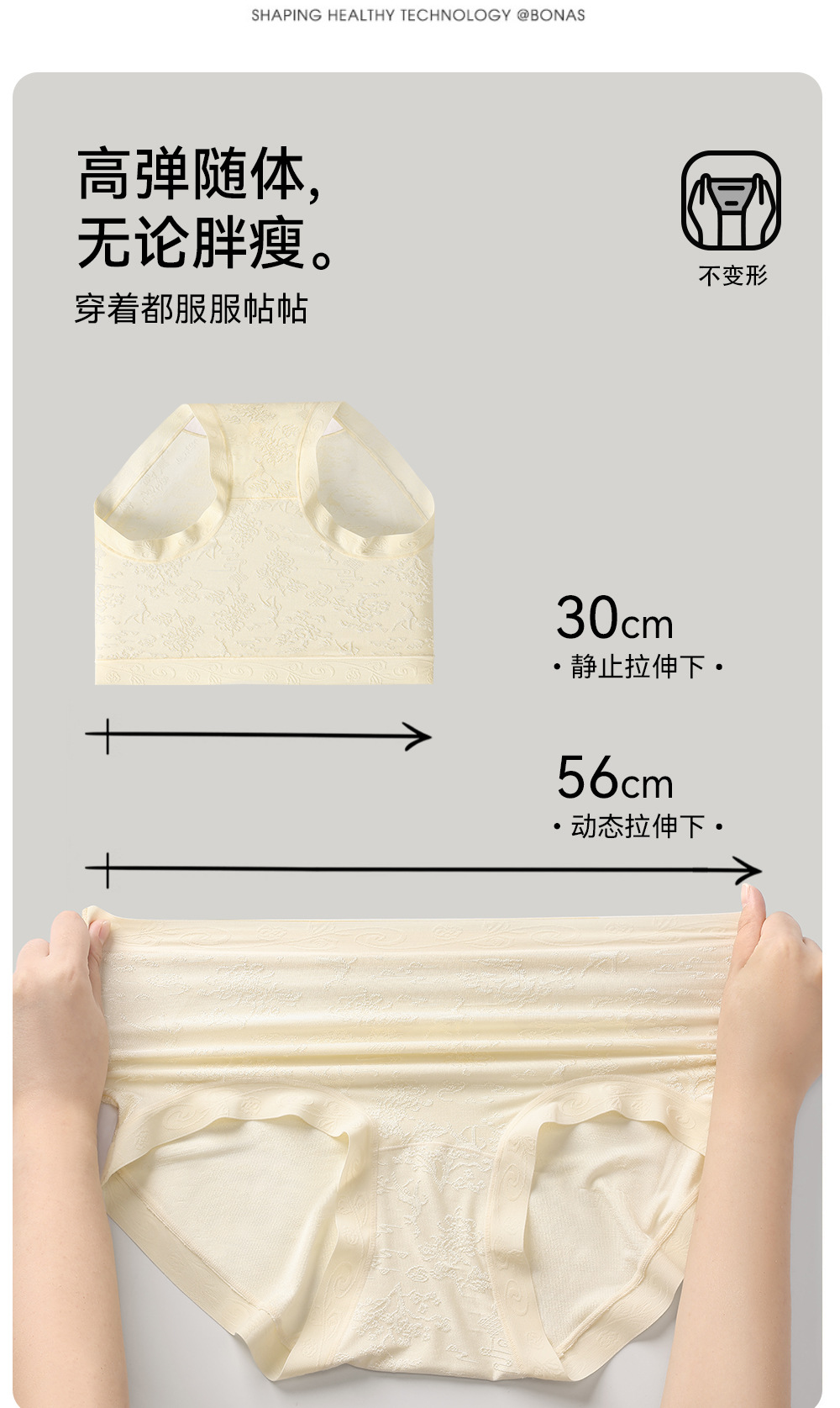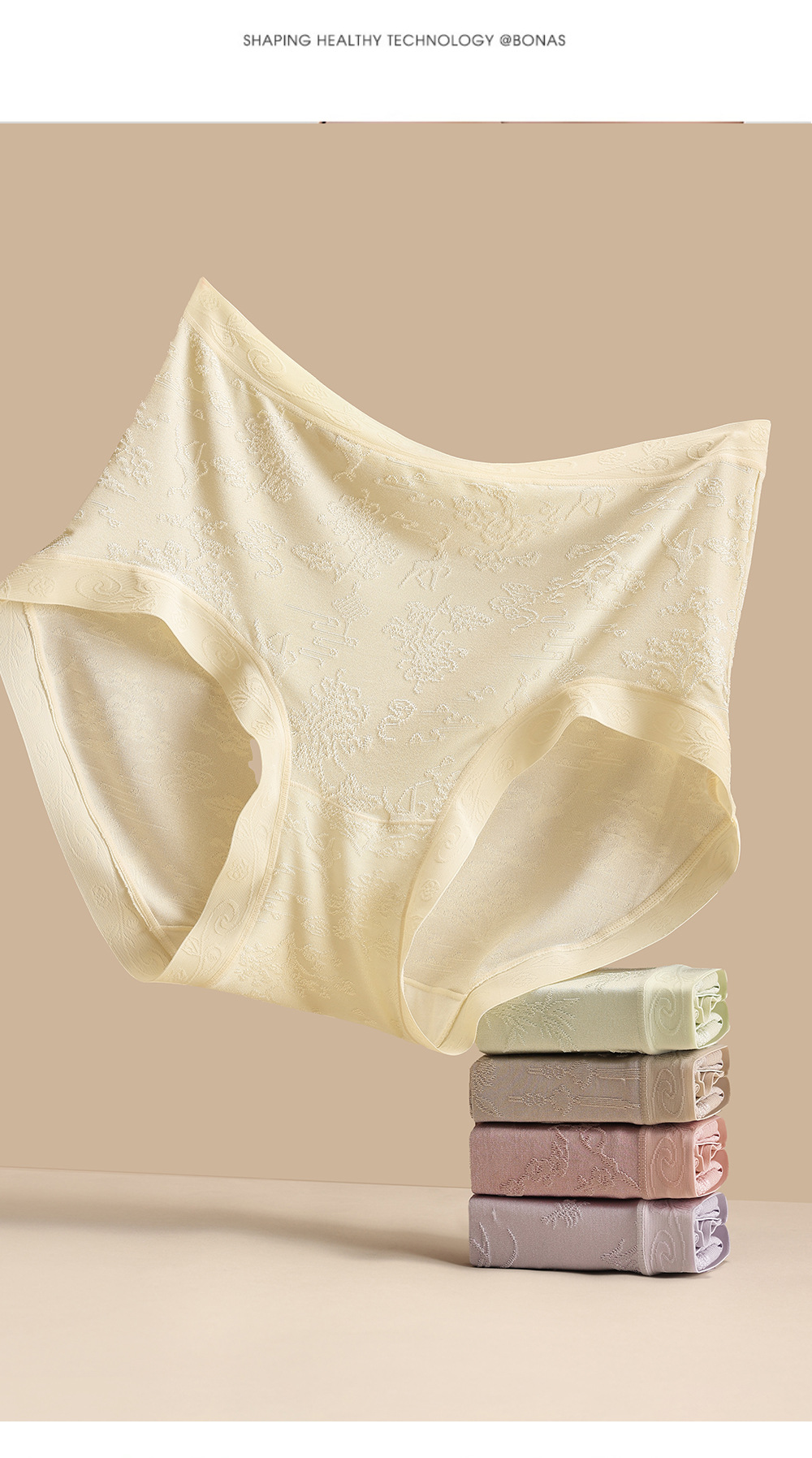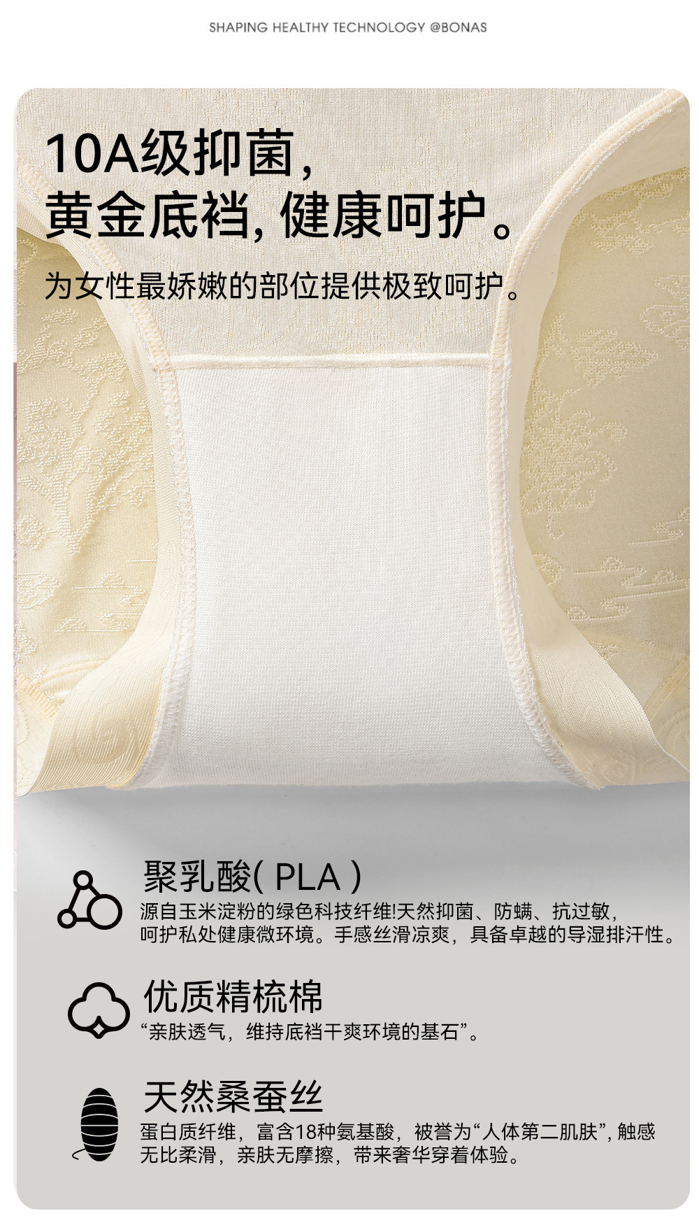 【49元3条】宝娜斯轻奢浮雕提花桑蚕丝抑菌裆内裤 轻薄透气中腰冰丝凉感内裤