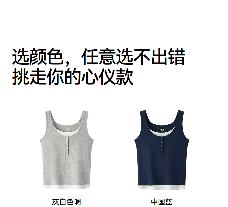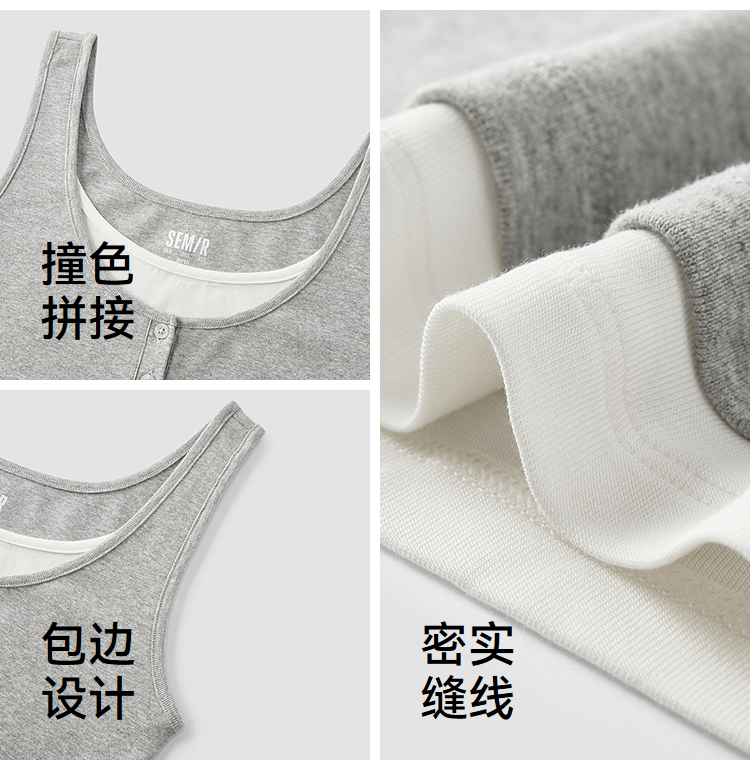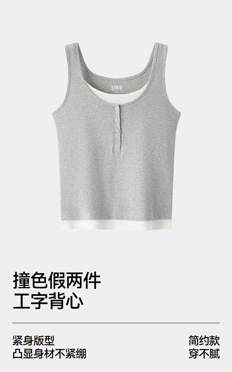 【99元任选2件】森马背心女夏撞色假两件紧身工字简约百搭休闲潮流小个子叠穿衣服